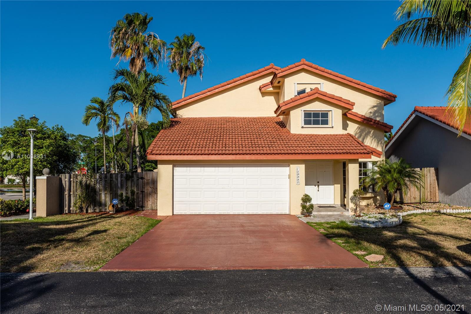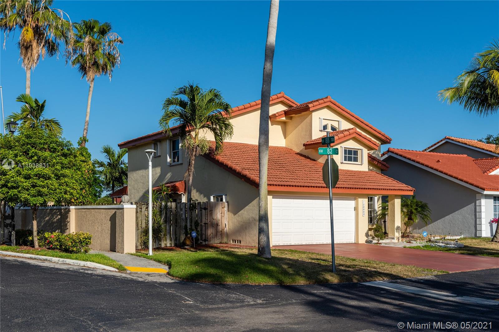 Spacious two story, 4 bedroom and 3 bath home conveniently located 2 blocks from Miami Gardens Dr. I-75 exit. Master Bedroom includes private balcony. Brand new AC and In-Laws Suite with private entrance and renovated bathroom on the first floor. Covered patio terrace and two car garage. Storm shutters for all windows. Close to a community park and community pool. It is a spacious home with high vaulted ceilings, formal living and dining room, casual living room, dining room, and breakfast nook. HOA is only $80 per month.
