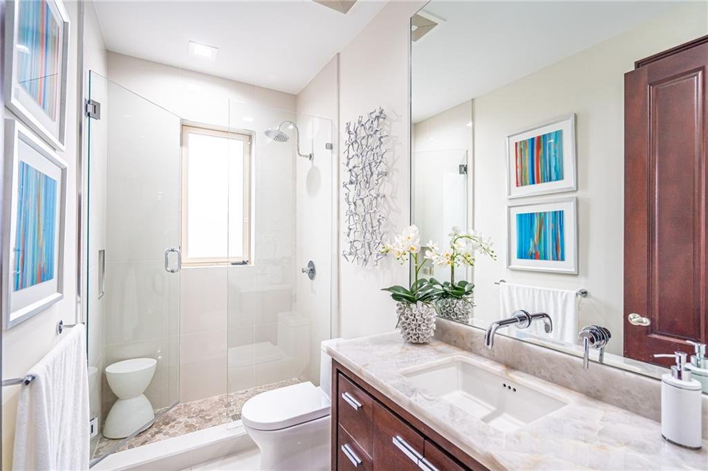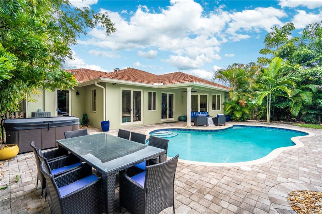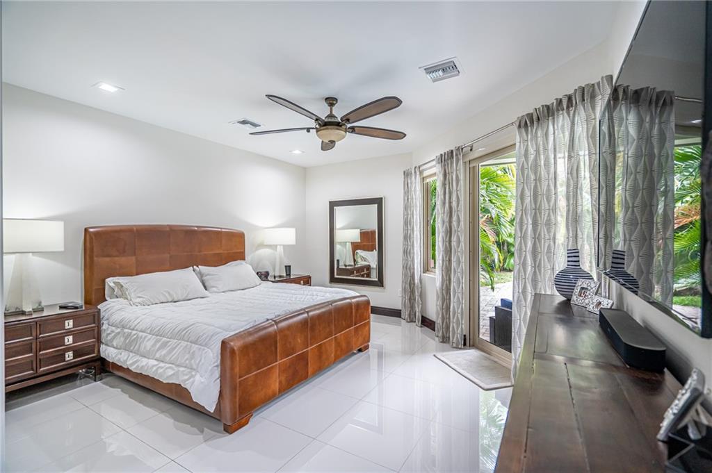 Rebuilt in 2004, this designer home has it all: volume ceilings, triple split plan, & lots of open space. White porcelain floors greet you as you enter this contemporary home. The high ceilings are accented by LED lighting. The open kitchen has gas cooking & wrap around countertop seating. Massive impact french doors allow for tons of natural light. The master bedroom has direct pool access & walk-in closet. The master bath has dual vanity, soaking tub & shower. The designer hall bath has Cristallo countertops. The North wing has 2nd master bedroom (currently a gym) w/ it’s own designer cabana bathroom. The freeform pool is sure to please. Located in desirable Poinsettia Heights. Close to everything & is approx 2.5 miles to the beach! (All info believed accurate but not warranted.)