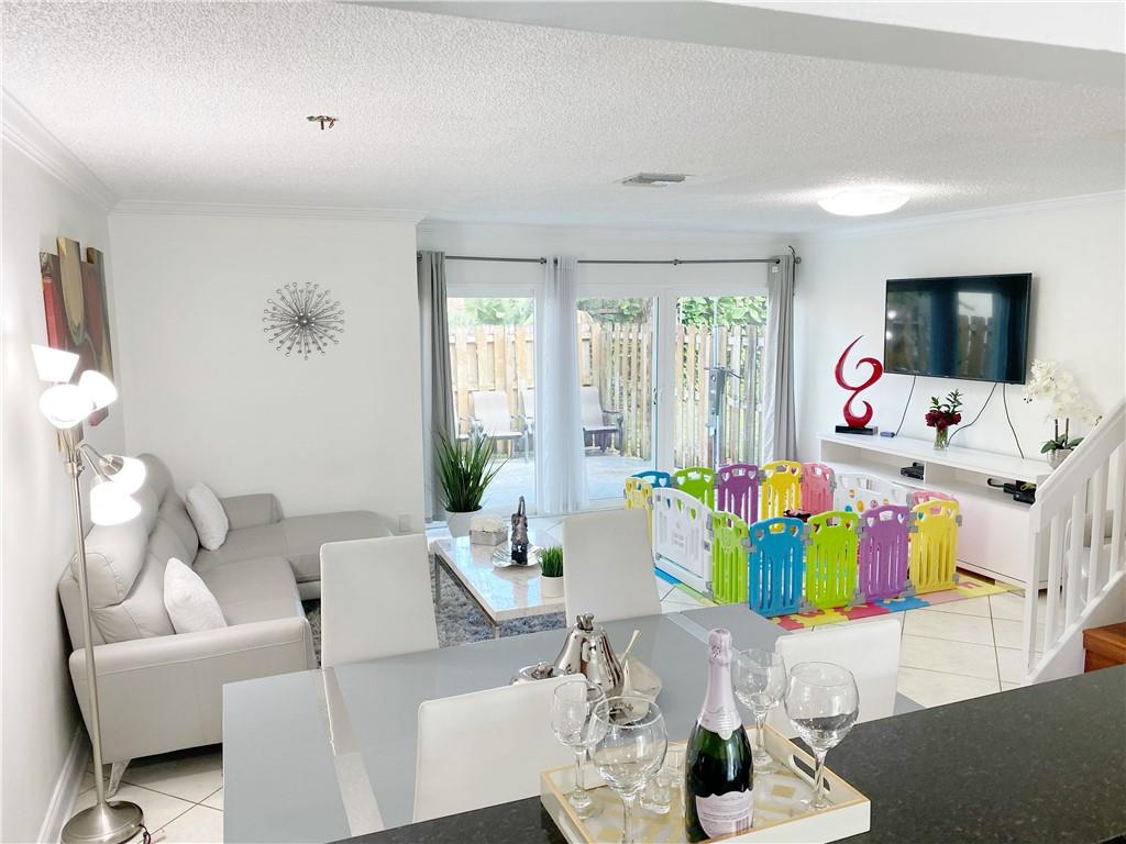 Make it a great investment property or live it!! Beautiful corner unit with brand new impact windows, nicely renovated, granite countertops and stainless steel appliances, tile and laminate floors, bedrooms upstairs with private bathrooms each, and half bathrooms downstairs, nice fenced large patio to entertain. DONT MISS THE 3D TOUR!