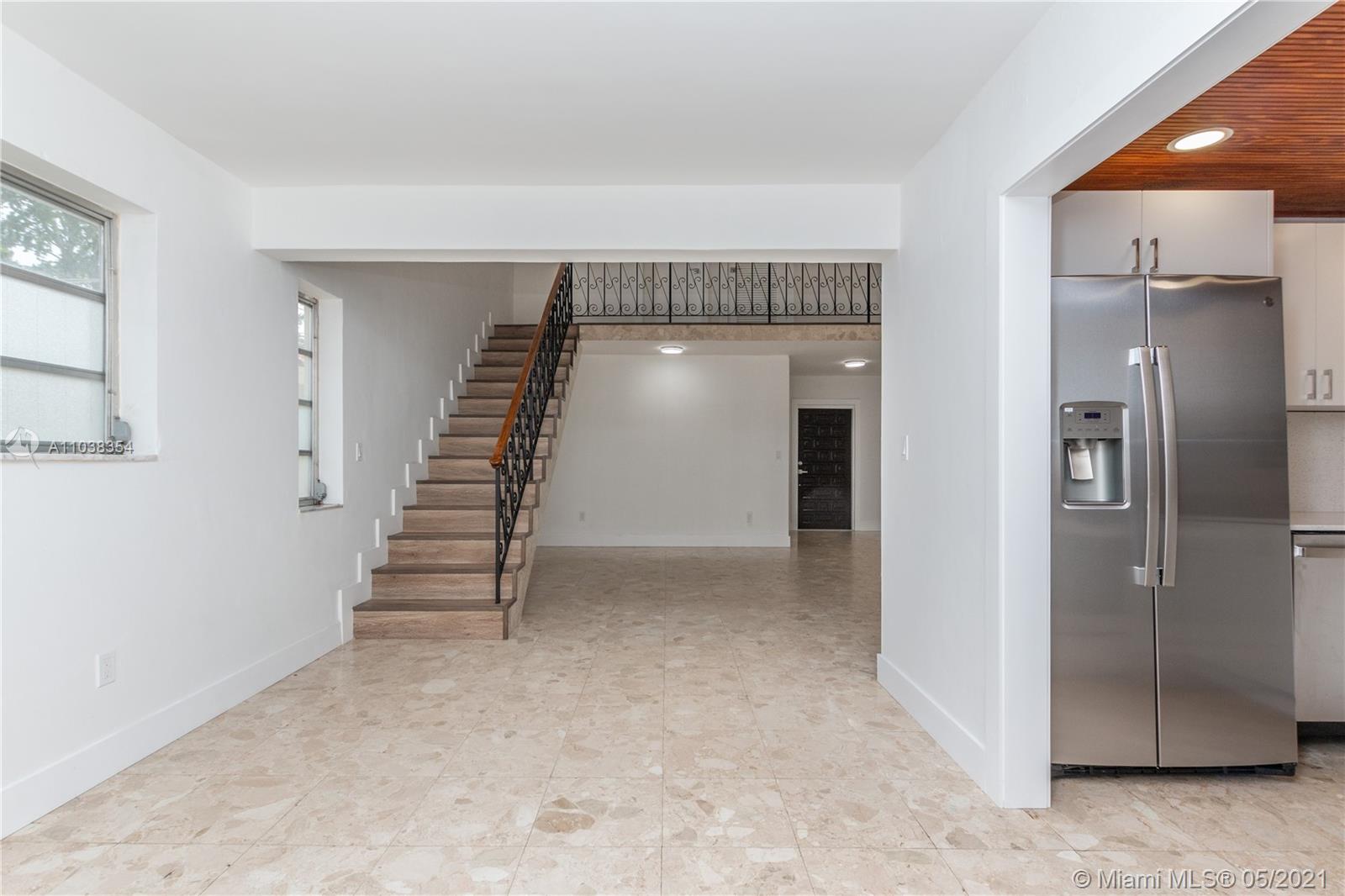 Beautifully renovated 2-story home on a tree lined street minutes away from Granada Golf Course and downtown Coral Gables! This 3 bedroom, 2 bathroom home features walk in closets, a laundry room, and a split floor plan. Full sized one car garage as well! Grand family room with nearly 20 foot ceilings and mezzanine. Bedroom layout is split, with the master bedroom & bathroom secluded from the rest of the home, offering privacy. Corner lot; walking distance to Granada Golf Course. 2 air conditioners, one for upstairs & one for downstairs.