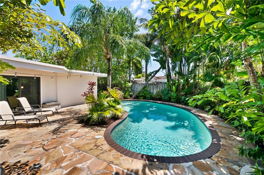 Welcome to 1724 Middle River Drive, located in one of East Fort Lauderdale's most sought-after neighborhoods, Coral Ridge. Here you will find a home that is loved, cared for, and tastefully updated. At 1724 you will experience South Florida paradise with lush green landscaping, mature privacy hedges, lots of landscape lighting, fruit trees, and a very private pool area. Inside, features an open and bright floor plan with over 2,000SF of living space. New Italian porcelain floors throughout and a new kitchen ready to prepare the best meals with an eat-in dining nook. Additional features: all impact windows and doors, a small garage perfect for a golf cart, recently updated master AC and water heater. The tile roof is 2006, the flat roof is 2016. Bayview Elementary School District.