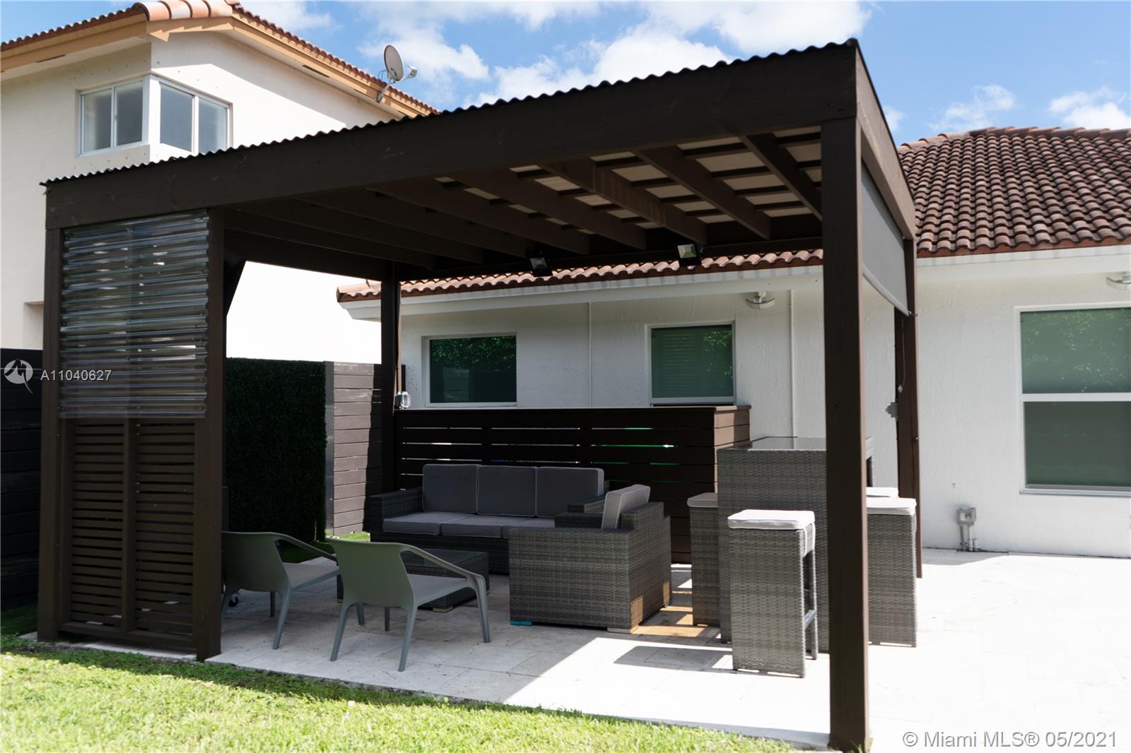 Beautiful, remodeled one story, single house in Doral Isles. Spacious Living area, that integrates the outside area to the house. Large backyard, great for entertaining with heated pool, sun deck, pergola and BBQ area. Master bedroom with pool access, large master bathroom and walk-in closet. Nice size auxiliary bedrooms. Modern custom kitchen with top of the line stainless steel appliances including wine cooler. Over-sized kitchen island with waterfall counter top, seats 8, perfect for hosting events. Washer/Dryer and 2 car garage