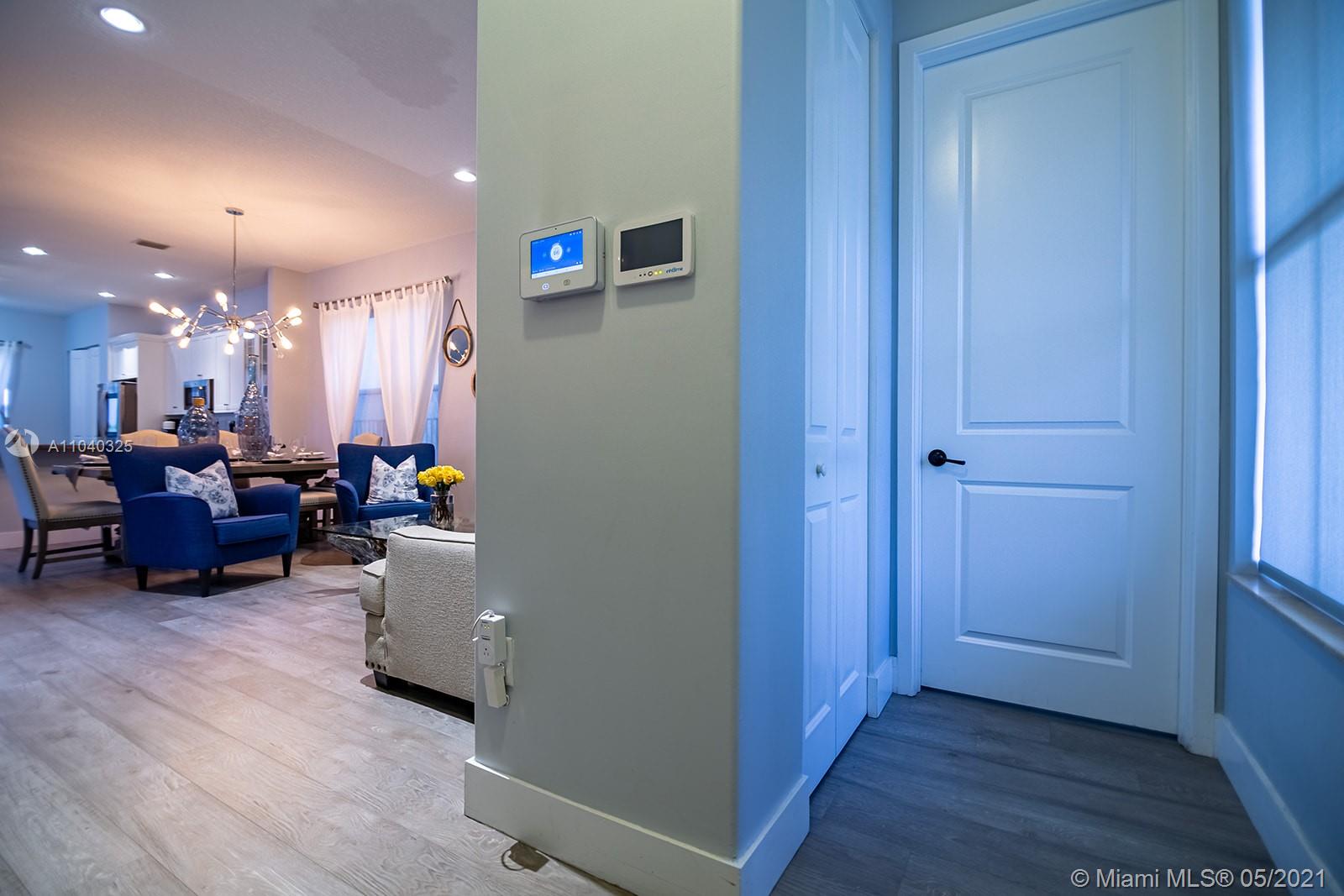 Pristine Home located in the gated Community of Bonterra with 3 bedrooms and 2 1/2 Baths. Enjoy the spacious areas and open kitchen with breakfast area, stainless steel appliances, island granite countertop and more. This home features plenty of natural light, sliding glass doors, electric blinds & open floor plan w/ high ceilings for maximum illumination. Laminate flooring throughout. Upstairs, the Master Bedroom includes a double vanity, with a Glass-Enclosed shower, bathing tub and two large Walk-In closets. Additionally, a Den that can be converted into a 4 bedroom, fully paved backyard, perfect for entertaining with playground for children. Also, Landscape, Fence, Gutters, Shutters, Epoxy flooring garage. The Community includes Clubhouse, Pool, GYM and much more. A MUST SEE!!!
