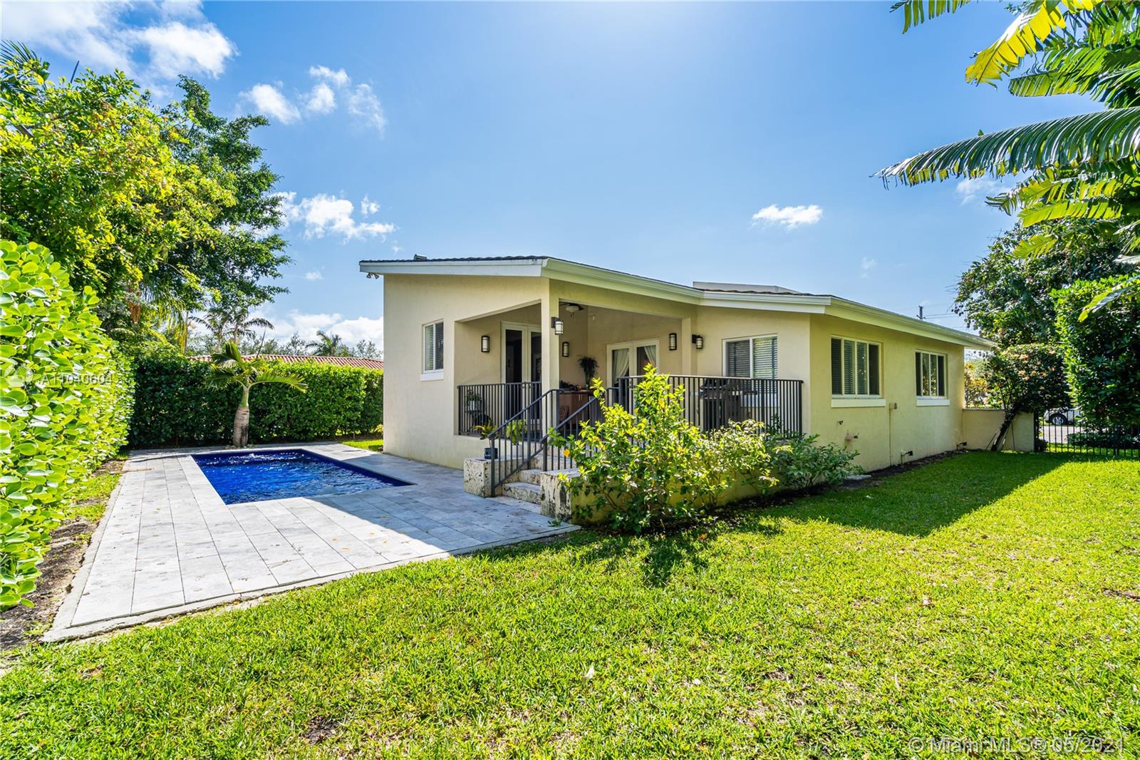 Lovely home on a quiet, tree-lined street close to UM & world-class Coral Gables shopping & dining. Light-filled living spaces with vaulted ceilings & stone & wood flooring. Totally renovated including impact glass throughout. Custom kitchen features island w/ seating, wood cabinetry, granite countertops & stainless appliances, including gas range. Expansive formal living, dining & family room w/ built in serving bar w/ wine storage. Deep covered terrace for year-round outdoor living, overlooks private garden & just completed tropical pool. Minutes to downtown, MIA & to the Grove village center’s galleries, boutiques, cafes & bayfront parks & marinas. Show assist or call Guillermo 305 767 6800(Not open house only by appointment)