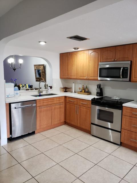 Beautiful lakefront townhome with screened in patio overlooking the water. Soaring ceilings, spacious open kitchen with modern quartz counter tops and stainless steel appliances. New AC. Washer/dryer in the home. Great location with easy access to 595 and the turnpike! Plenty of available guest parking next to the unit. Pool is within a short walk from the home. Move in ready.