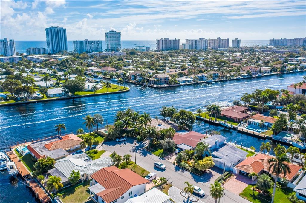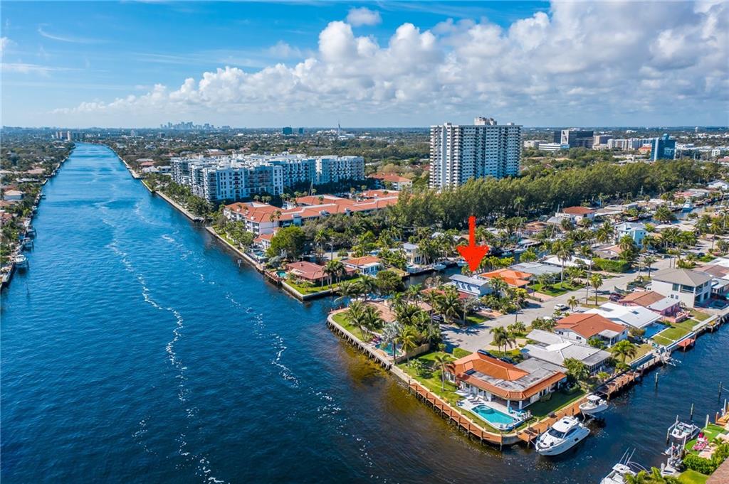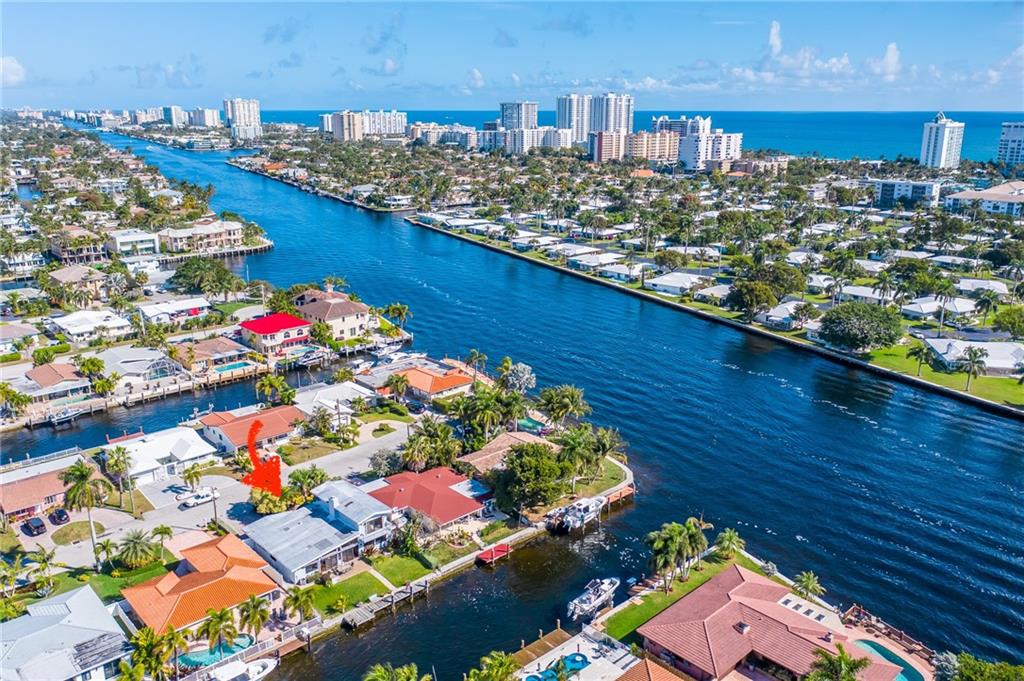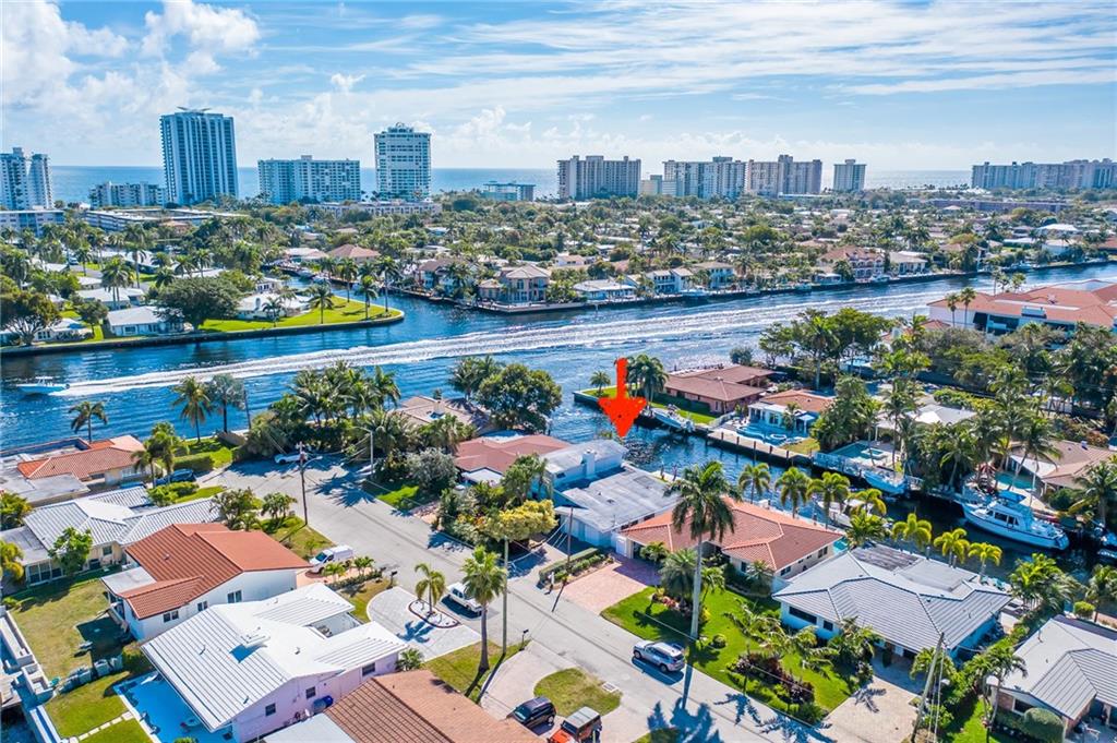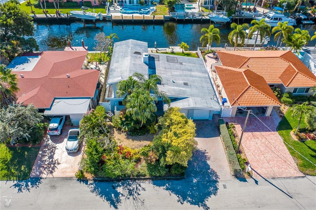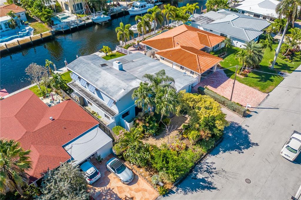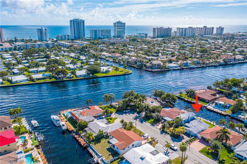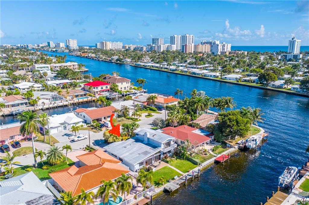 Second home from the point with fabulous intracoastal views! Spacious and stylish waterfront home in Pompano Isles neighborhood boasts exposed wood beam ceiling, 2 car garage, all impact windows, new kitchen with custom wood cabinets/granite counters and backsplash/stainless appliances with dining area attached. Entire second floor loft master suite with balcony, sitting area and spectacular intracoastal views from bed! Water views from the kitchen, living room and den/family room. Lot is 60X100 with a 40' dock (complete with water and electric on the dock so easy to install a lift). Room for a pool. Outdoor patio with retractable awnings are the perfect place to enjoy your waterfront view! Great entertaining home!