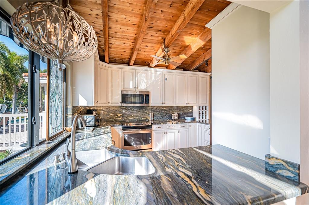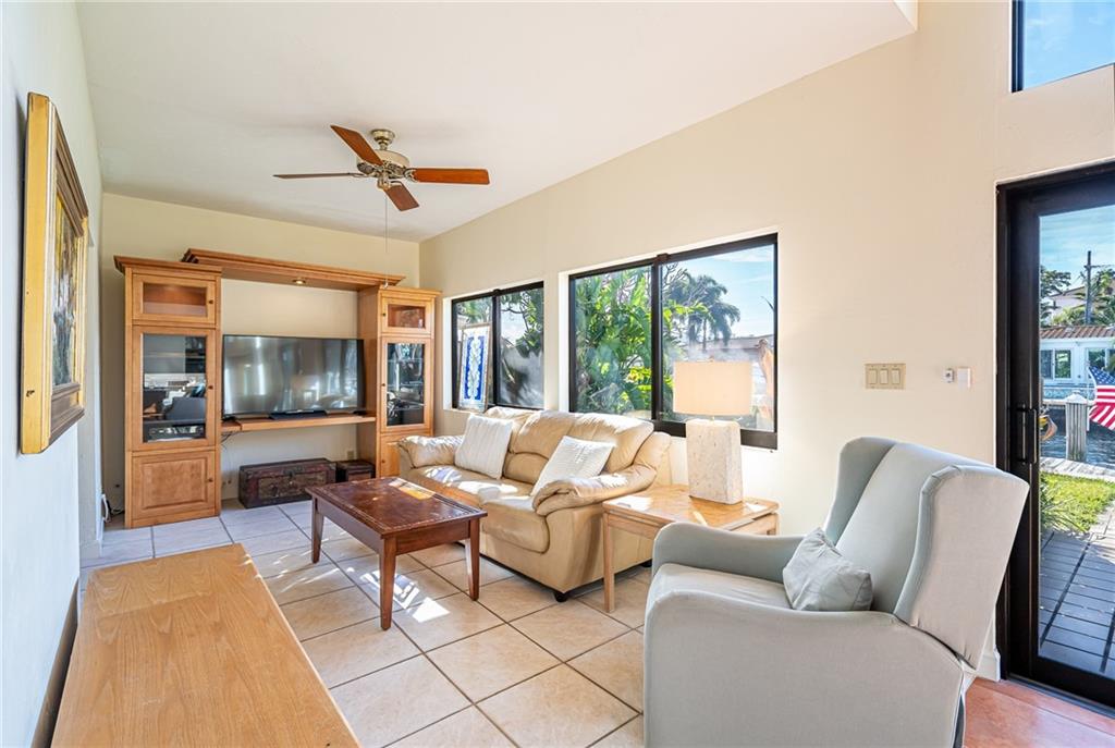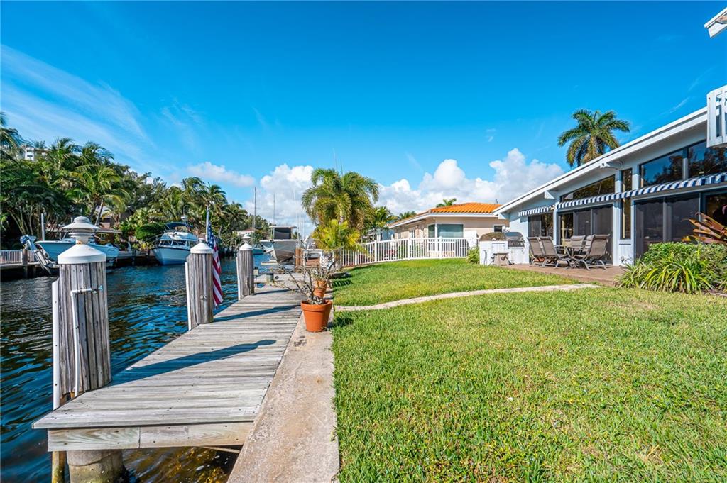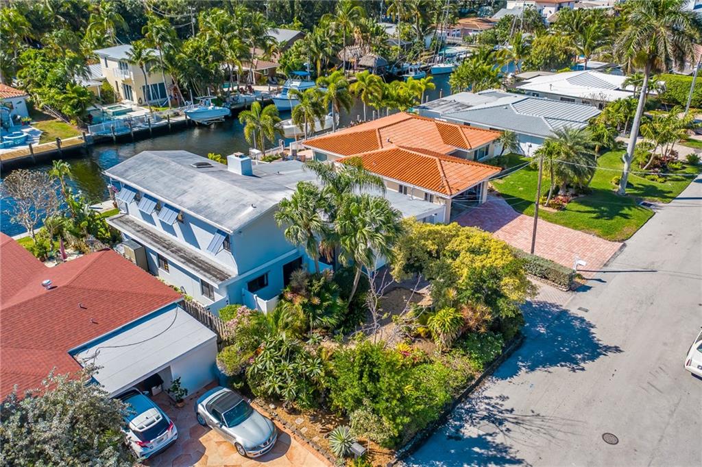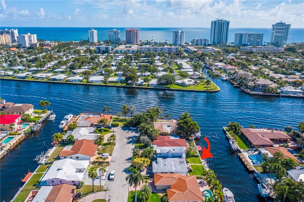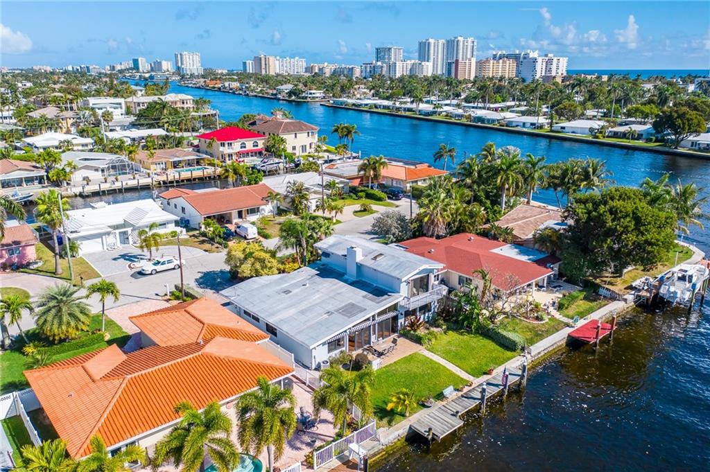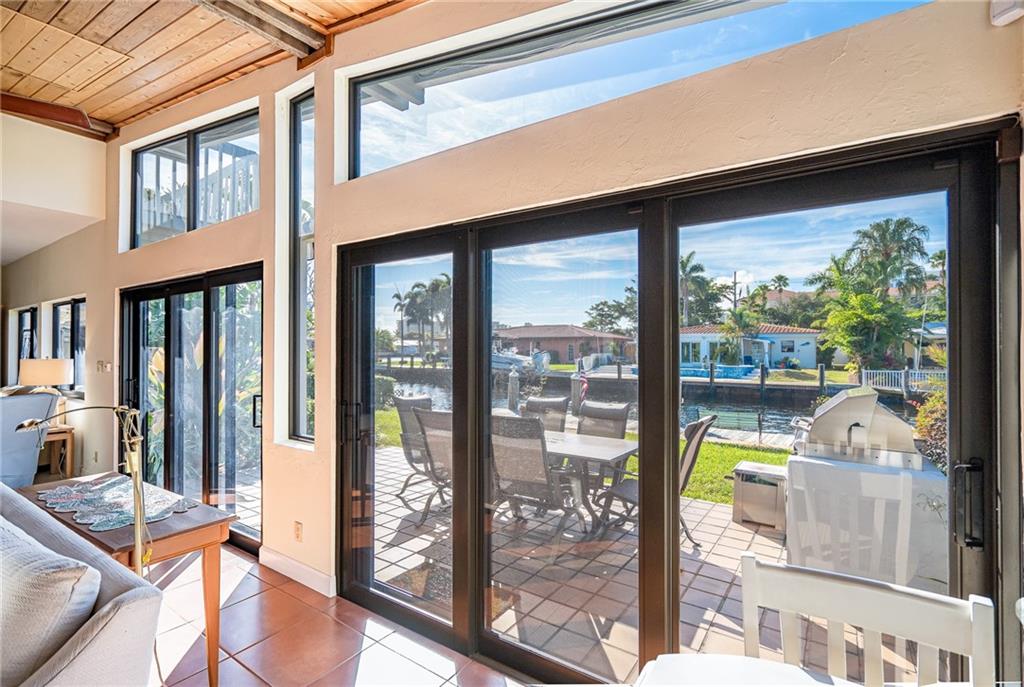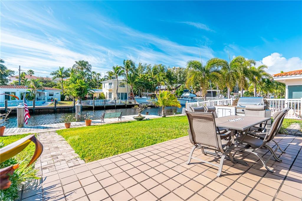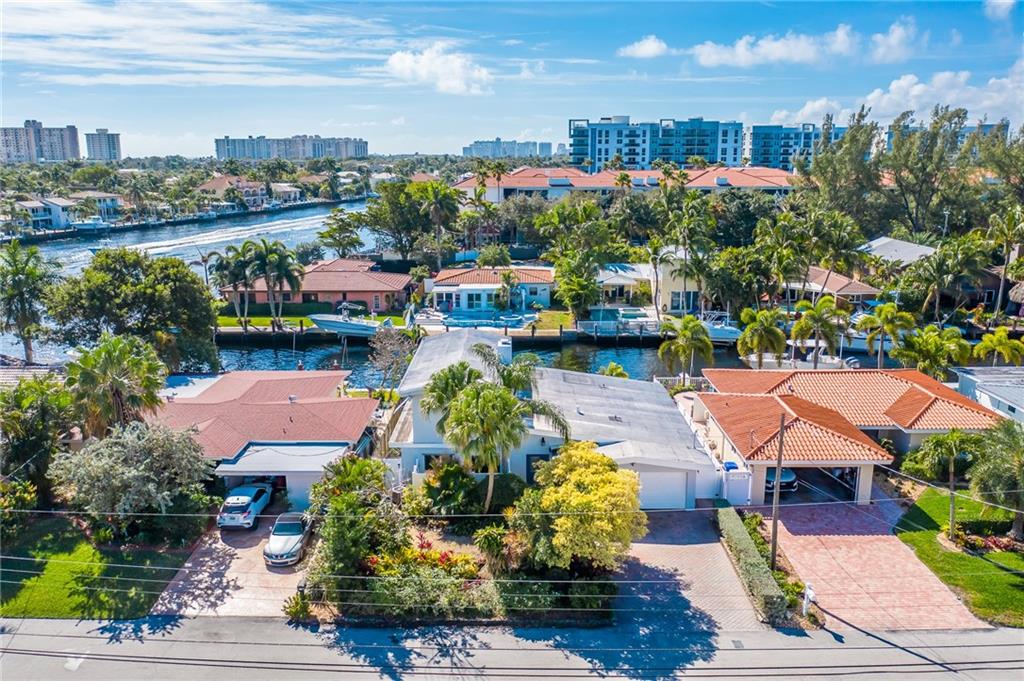 Second home from the point with fabulous intracoastal views! Spacious and stylish waterfront home in Pompano Isles neighborhood boasts exposed wood beam ceiling, 2 car garage, all impact windows, new kitchen with custom wood cabinets/granite counters and backsplash/stainless appliances with dining area attached. Entire second floor loft master suite with balcony, sitting area and spectacular intracoastal views from bed! Water views from the kitchen, living room and den/family room. Lot is 60X100 with a 40' dock (complete with water and electric on the dock so easy to install a lift). Room for a pool. Outdoor patio with retractable awnings are the perfect place to enjoy your waterfront view! Great entertaining home!