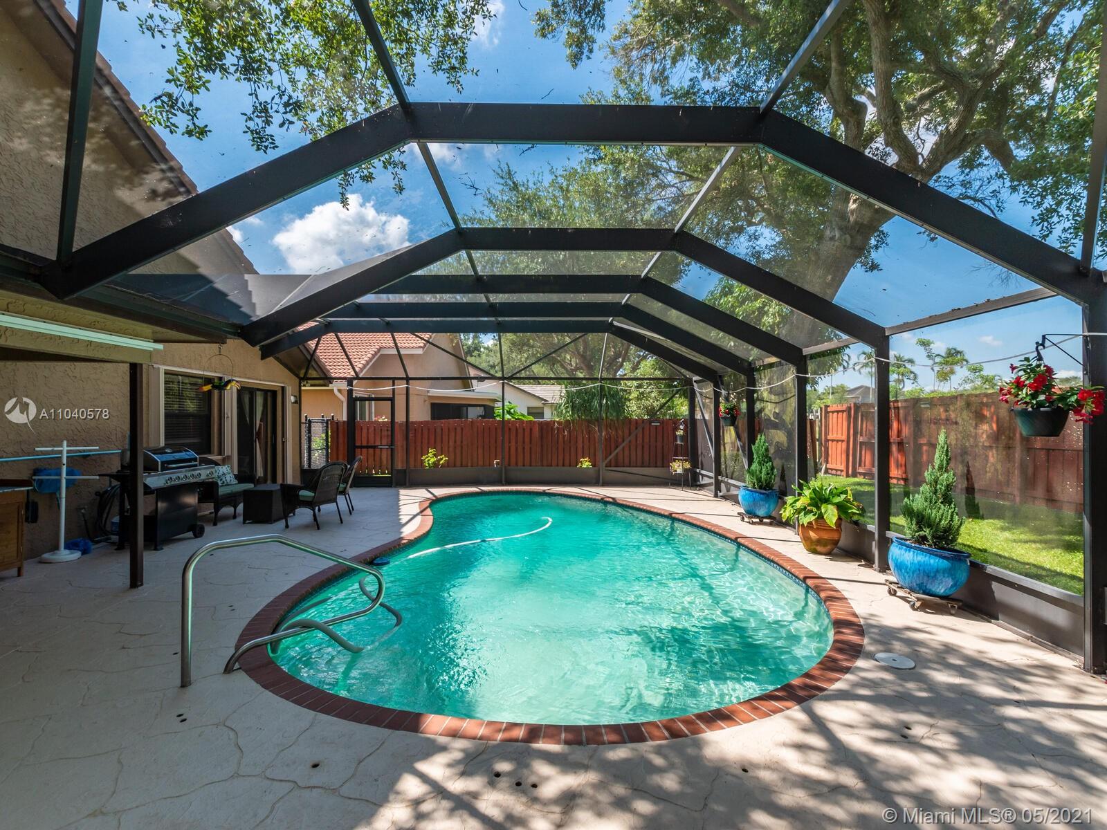 *Davie*Well appointed*4BED/2BA/*2-Car Garage w/Sparkling Screened in Pool~1-Story ranch w/Split floor-plan* Situated on a quiet cul~de~sac street that backs up to a beautiful park.Interior upgrades include:Bamboo wood & tile floors w/carpet in bedrooms. Granite kitchen w/SS appliances,vaulted ceilings,upgraded baths,double vanities in master bath w/tub & shower.This house is immaculate! **Inside Utility rm w/full size W&D!Oversized pool and patio area,fenced yard & accordion shutters on all windows!This charming boutique community“Oak Knoll”includes Pine Island Ridge CC amenities in your HOA dues.Close to all major highways,airport,hospitals & nightlife. Quick commute to Sawgrass Mall,beaches & downtown Ft Lauderdale. Great schools, walking trails and county parks are a big plus for Davie!