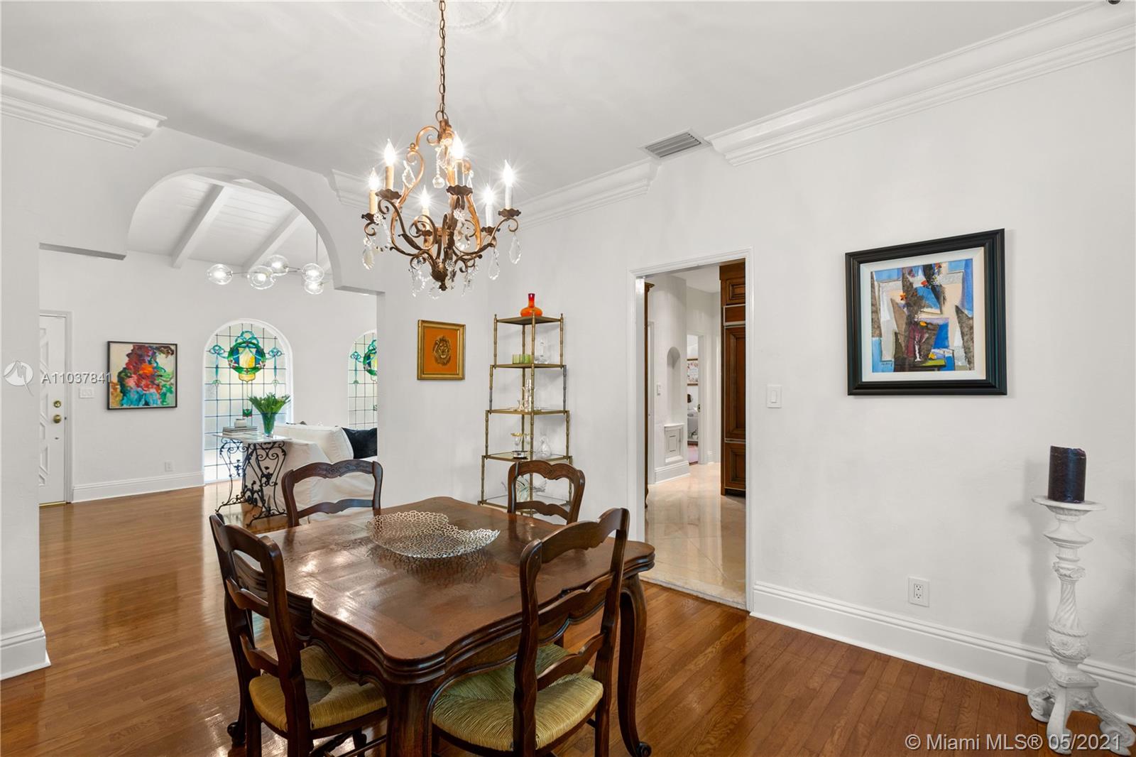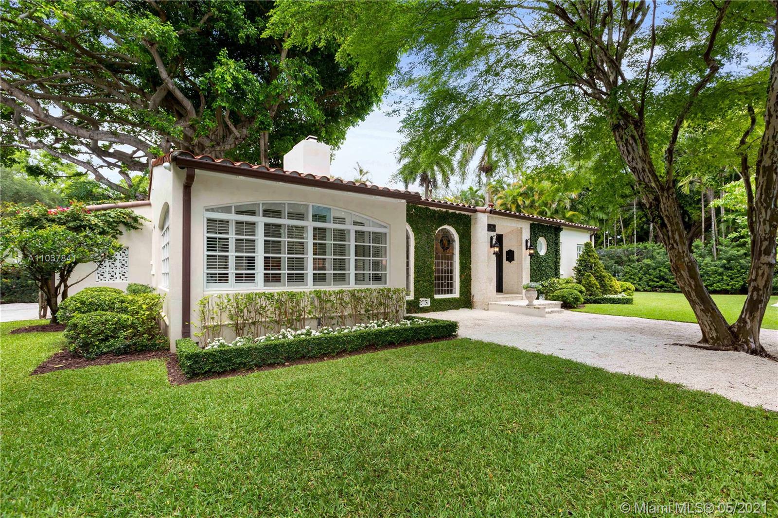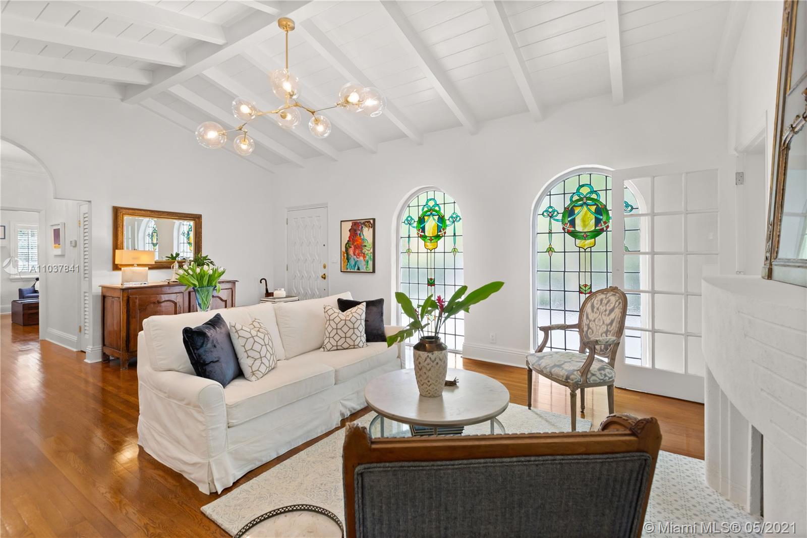 Fall in love with this Coral Gables home in the prestigious Golden Triangle neighborhood. 1,847sf (liv) per appraisal. Beautiful, charming and impeccably maintained Old Spanish. This Updated 3BR/3BA features authentic architectural elements, archways, hardwood/marble floors, crown moldings, stained glass. Gracious living RM with wood-burning fireplace & vaulted ceiling. Formal dining room, eat-in kitchen with high end finishes & appliances. Cozy sunroom that could function as a den/office/playroom. Situated on a beautifully landscaped large corner lot with wonderful outdoor patio spaces, ample room for a pool or add on. Quiet, low traffic, serene street. Absolute prime Gables location very close to Biltmore Hotel, parks, best schools, shopping, dining & more!