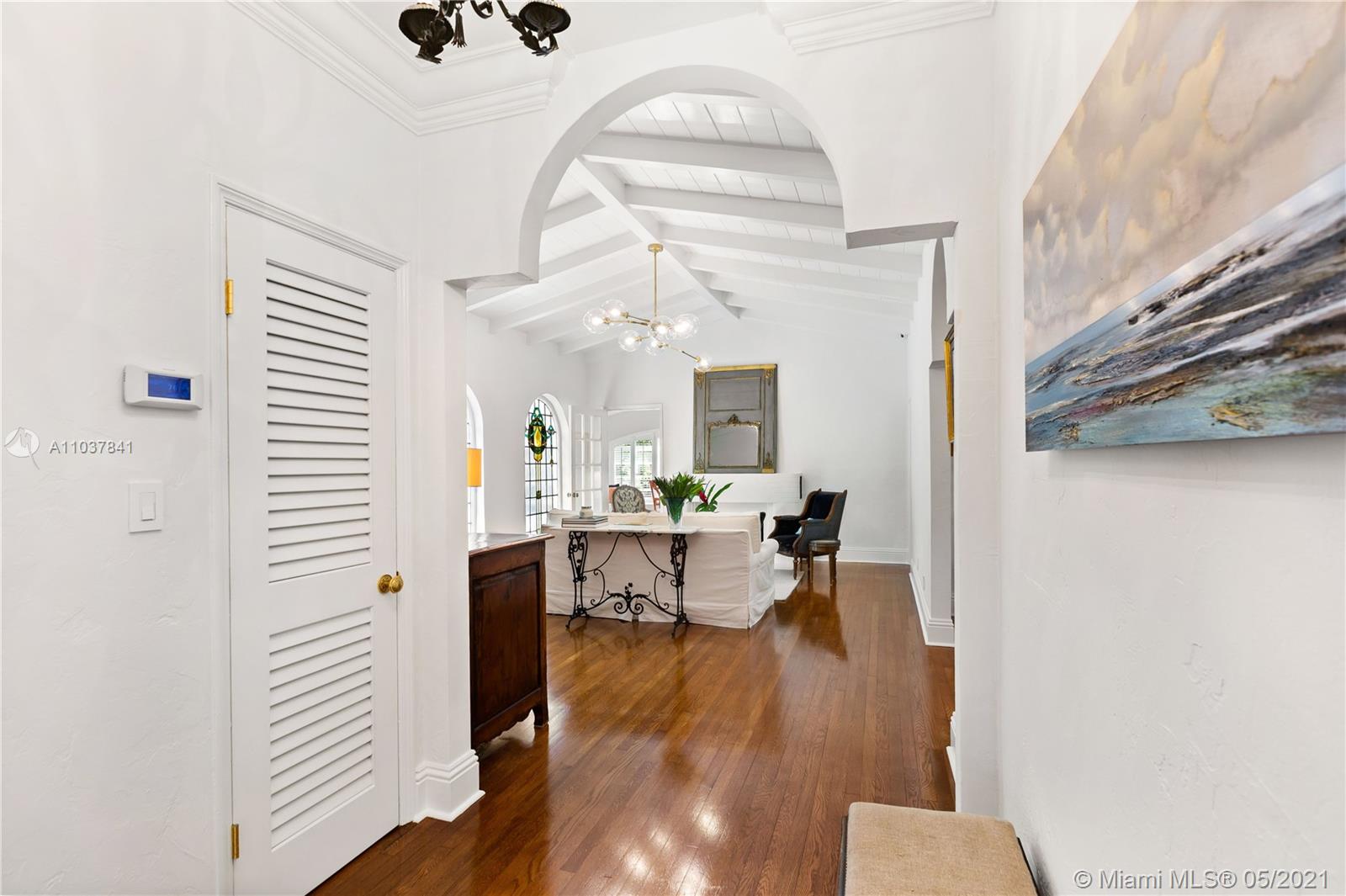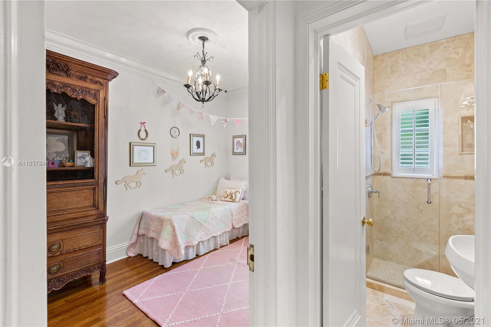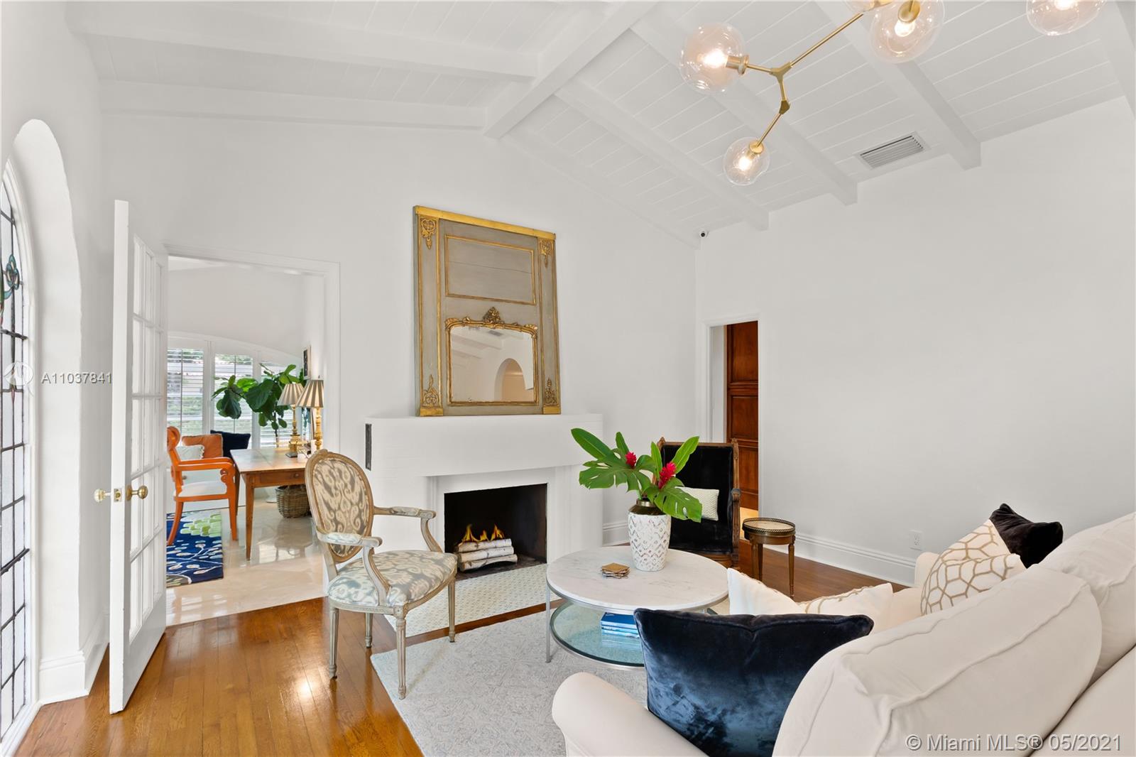 Fall in love with this Coral Gables home in the prestigious Golden Triangle neighborhood. 1,847sf (liv) per appraisal. Beautiful, charming and impeccably maintained Old Spanish. This Updated 3BR/3BA features authentic architectural elements, archways, hardwood/marble floors, crown moldings, stained glass. Gracious living RM with wood-burning fireplace & vaulted ceiling. Formal dining room, eat-in kitchen with high end finishes & appliances. Cozy sunroom that could function as a den/office/playroom. Situated on a beautifully landscaped large corner lot with wonderful outdoor patio spaces, ample room for a pool or add on. Quiet, low traffic, serene street. Absolute prime Gables location very close to Biltmore Hotel, parks, best schools, shopping, dining & more!