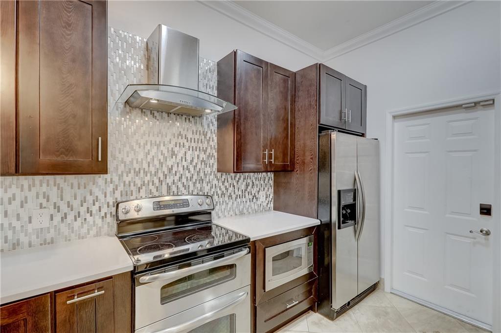 This Victoria Park tri-level townhome boasts bright airy interiors, deluxe details and ample outdoor space including a rooftop terrace with amazing city views. Step into the upgraded kitchen, complete with stainless steel appliances, quartz countertops, and custom backlighting. Off of the living room, find a spacious patio perfect for dining al fresco and entertaining friends and family. Bedrooms feature sizable walk-in closets and plenty of storage. Additional features include central vac hook-up, a Nest Thermostat and Ring Doorbell. There is no shortage of parking with an extra-long driveway for guests and a 2-car garage with storage system. Located next to daily conveniences such as supermarkets, this home is also close to dining, Flagler entertainment district and Holiday Park.