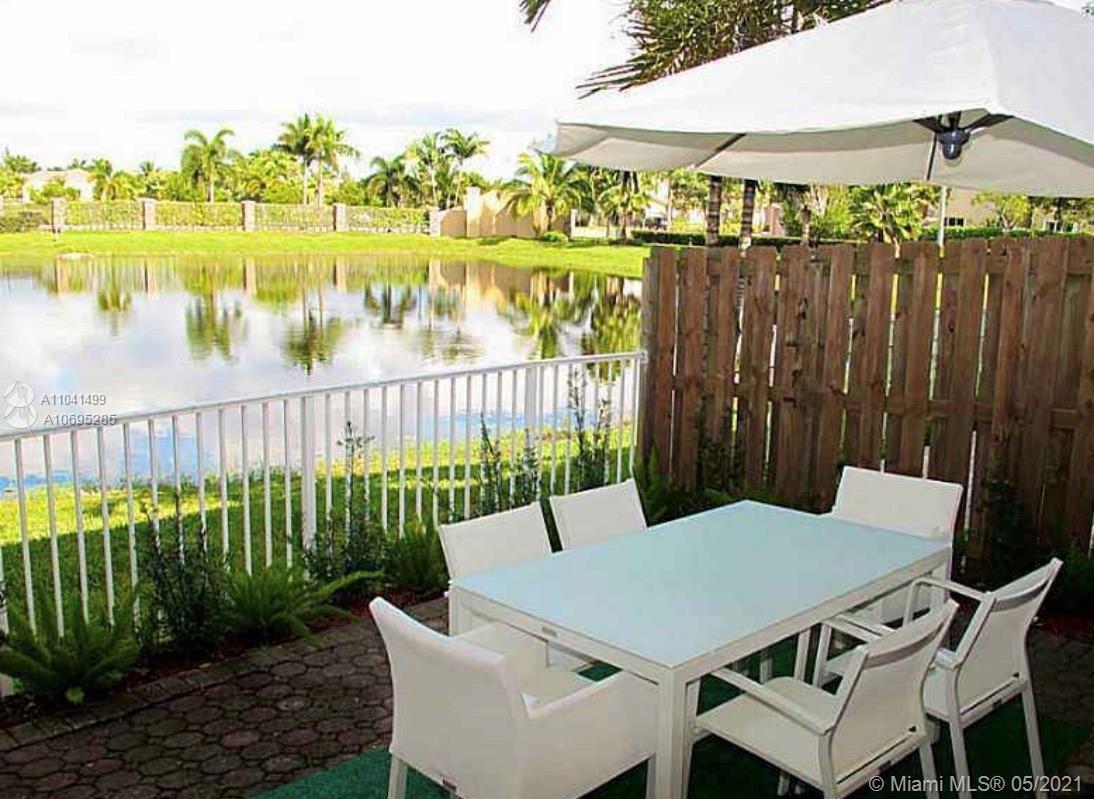 Gorgeous waterfront upgraded townhome in a gated community in Doral. This townhouse has 4 bedrooms, 2 1/2 baths, 1 garage and 2 parking in driveway. Beautiful white kitchen with stainless steel appliances, ample bedrooms with upgraded California closets in all rooms. Enjoy the serene view from your living area and patio. Enjoy living in this quiet and well maintained private community featuring a pool, conveniently located steps away from the shopping centers, next to Florida Turnpike, supermarkets and public transportation in Doral. PRICED TO SELL!! Come see this Doral gem today. It won't last long!