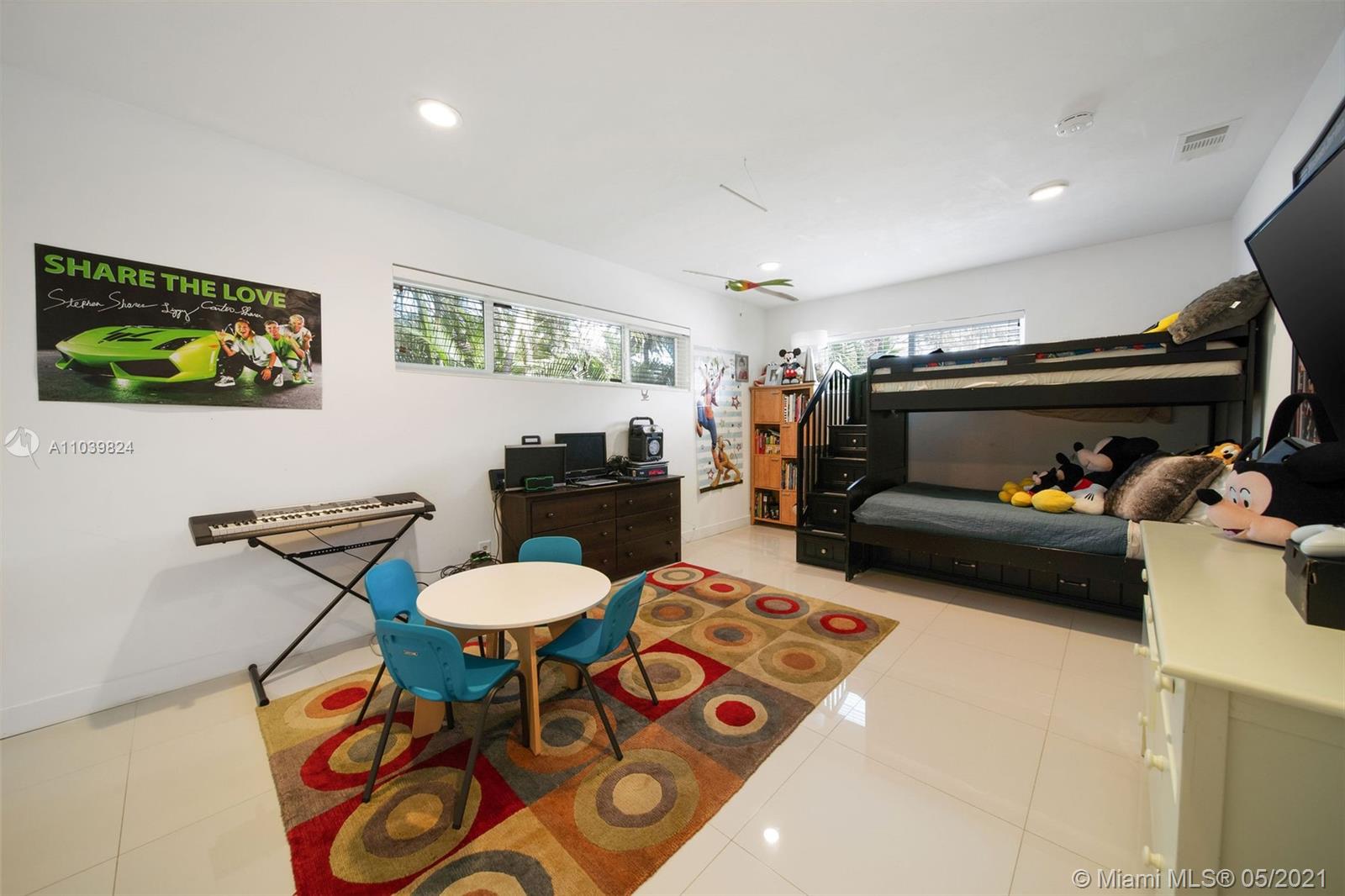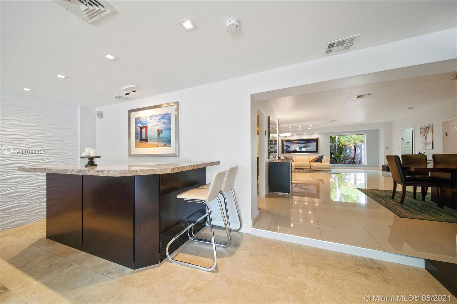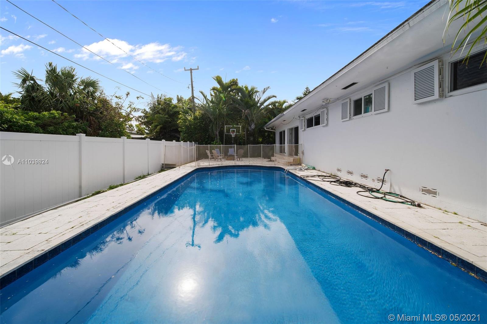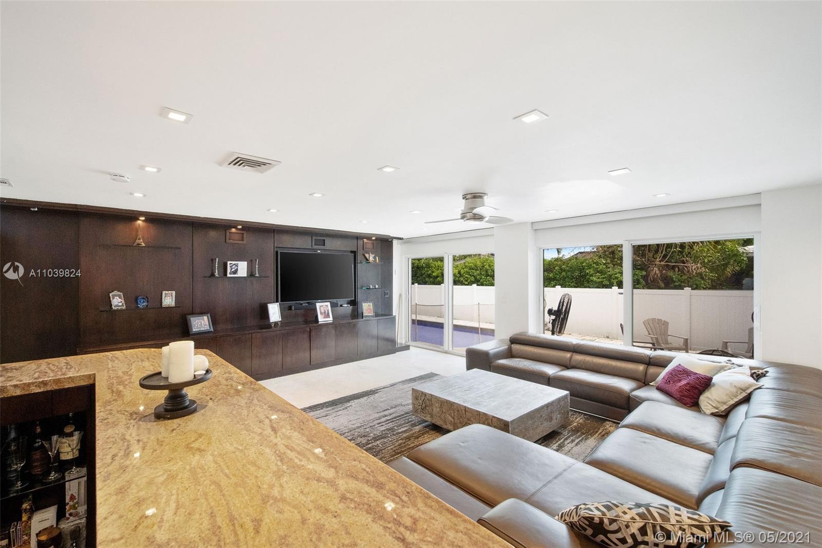 Fabulous Single Family Home w/ pool in 24hr guard gated San Souci Estates! Located just across the way from Bay Harbor Islands where you will find the famous Bal Harbour shops and the beach. This home features, an open floor plan, huge family room with a built in bar, perfect for entertaining. The space includes a Formal dining room and living room accented with a beautiful blue glass wall and faux fireplace. It has 3 spacious bedrooms with custom closets, updated bathrooms and a converted garage, currently being used as an office/gym and a nannies room/extra bedroom. This House has new impact windows/doors, and the roof is only 7 years old. The entire property is fenced in and features a heated pool with lush landscaping surrounding it. Open house Sunday May 16, 2021 12pm-4pm