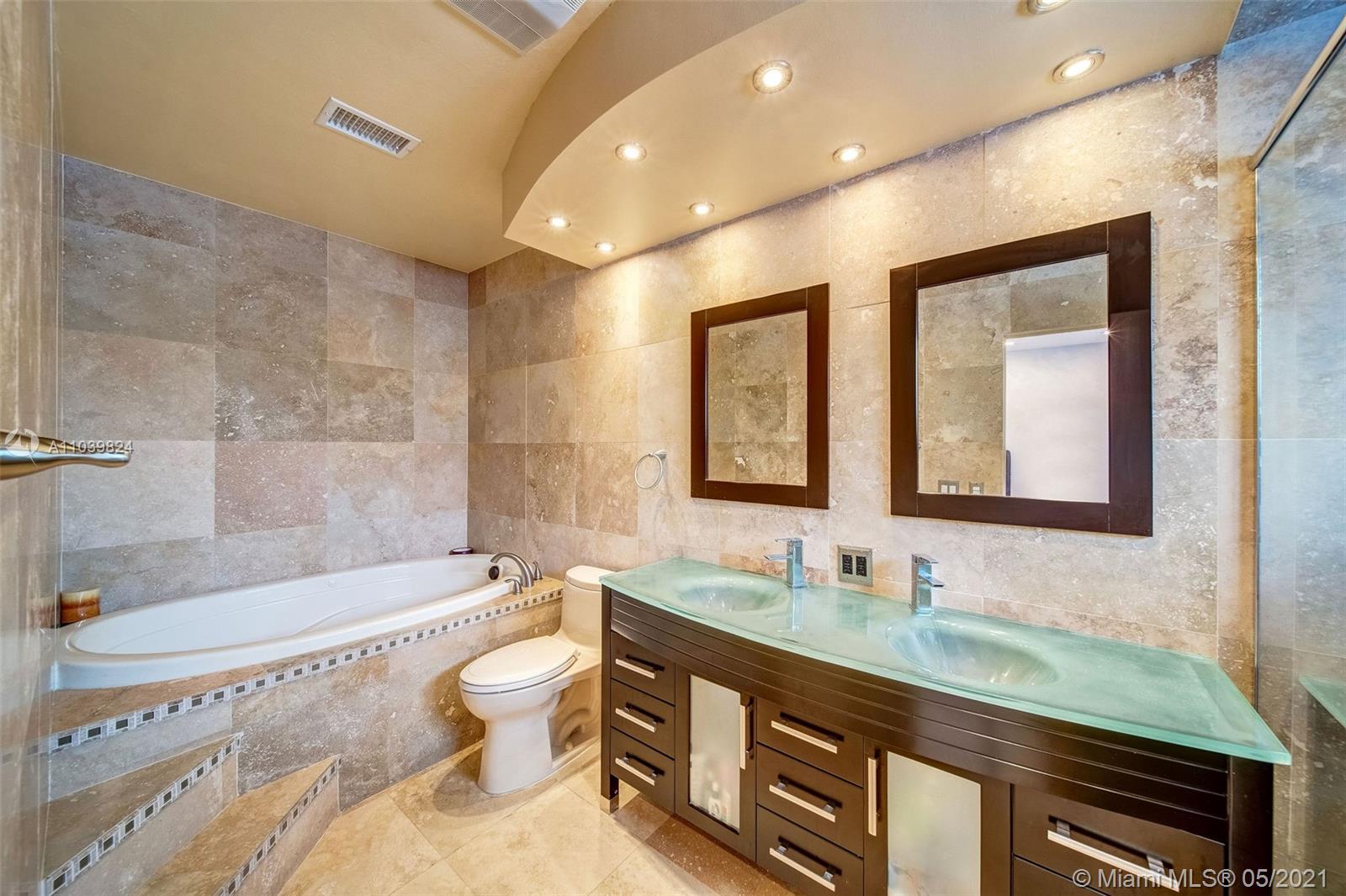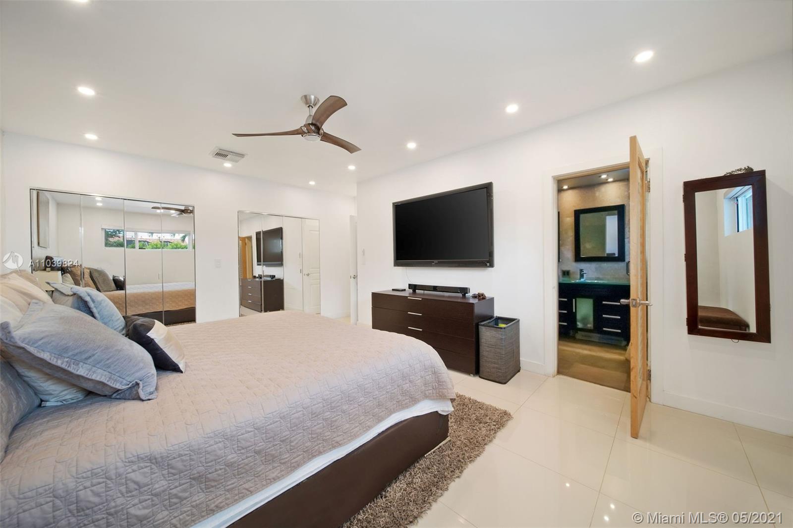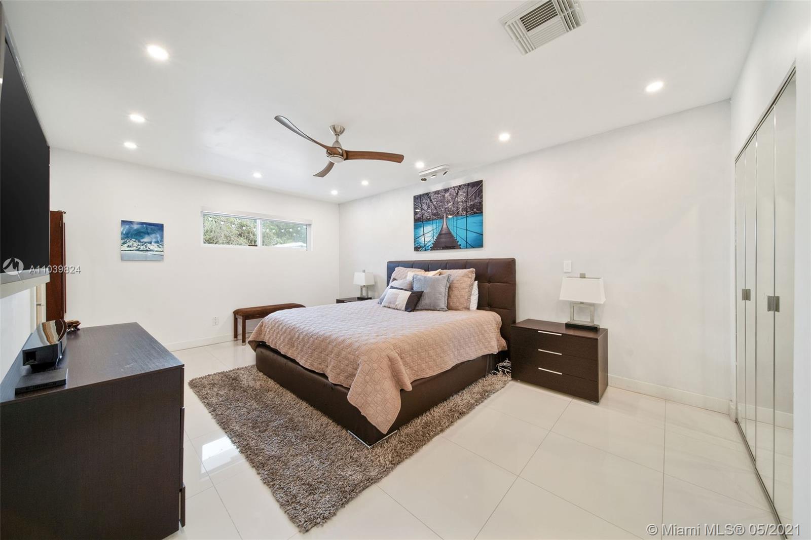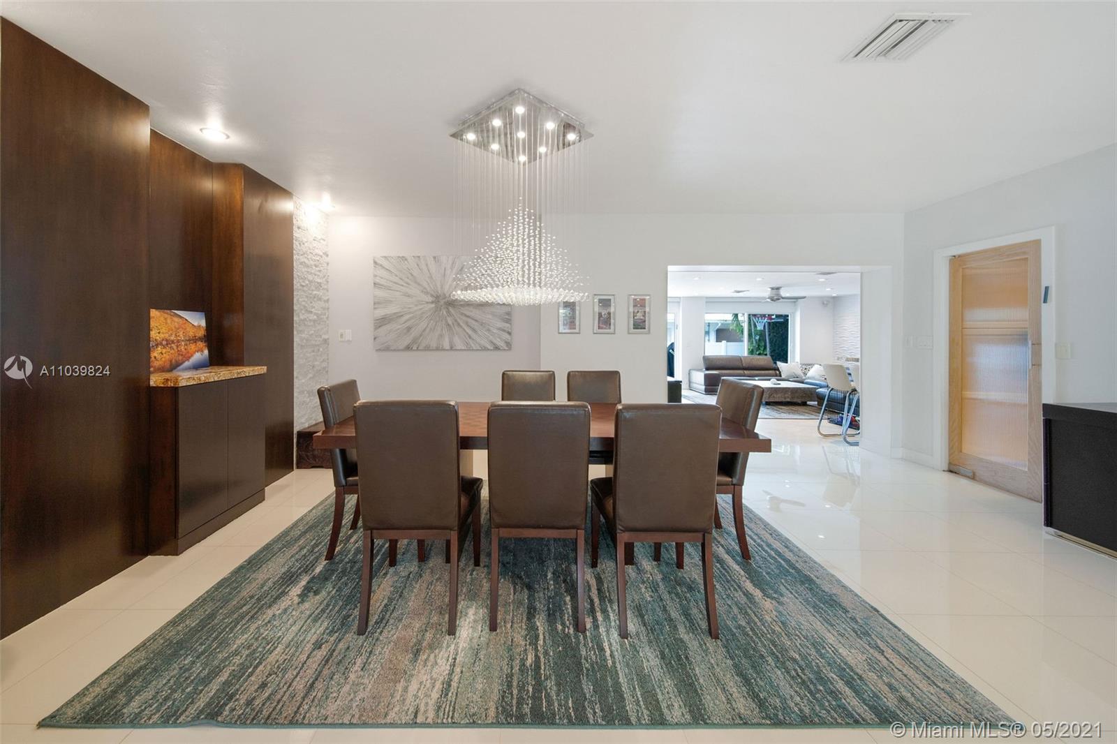Fabulous Single Family Home w/ pool in 24hr guard gated San Souci Estates! Located just across the way from Bay Harbor Islands where you will find the famous Bal Harbour shops and the beach. This home features, an open floor plan, huge family room with a built in bar, perfect for entertaining. The space includes a Formal dining room and living room accented with a beautiful blue glass wall and faux fireplace. It has 3 spacious bedrooms with custom closets, updated bathrooms and a converted garage, currently being used as an office/gym and a nannies room/extra bedroom. This House has new impact windows/doors, and the roof is only 7 years old. The entire property is fenced in and features a heated pool with lush landscaping surrounding it. Open house Sunday May 16, 2021 12pm-4pm