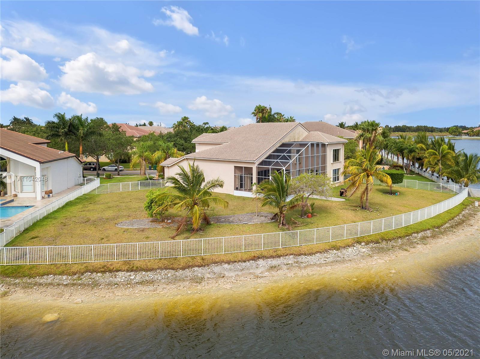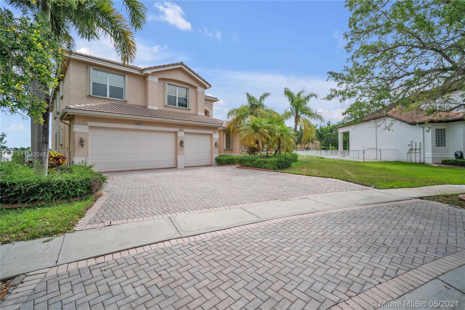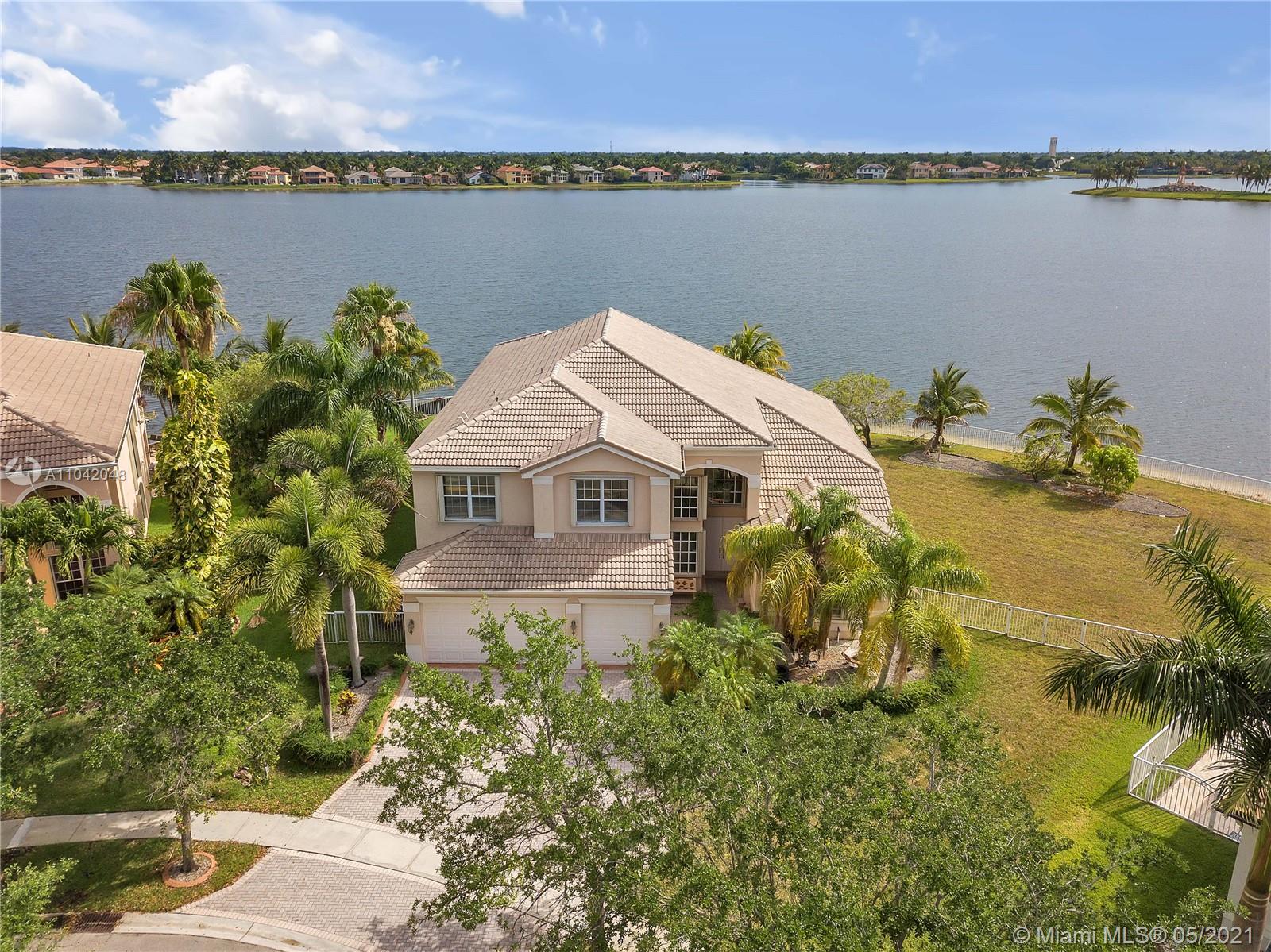The LARGEST CORNER LOT in Miramar, Sunset Lakes! Well kept Gated community and near to top rated schools! Great commuting distance to Miami and close to shopping malls, restaurants, and entertainment. This home features a 5 Bedrooms, 5 Bathrooms with 3 car garage. Master suite and 1 bedroom with 3 full bathrooms downstairs. This home is very spacious with vaulted/volume ceilings, tile flooring, a large kitchen with center island, and wood cabinetry. A large Loft on the second floor; enough space to put an additional indoor gym or office room. Screened in porch with the most amazing, stunning views of the lake! Let this be your next tropical oasis from all the noise! UPCOMING SHOWINGS START OPEN HOUSE SAT 5/22: 12-4PM & SUN 5/23: 1-5PM