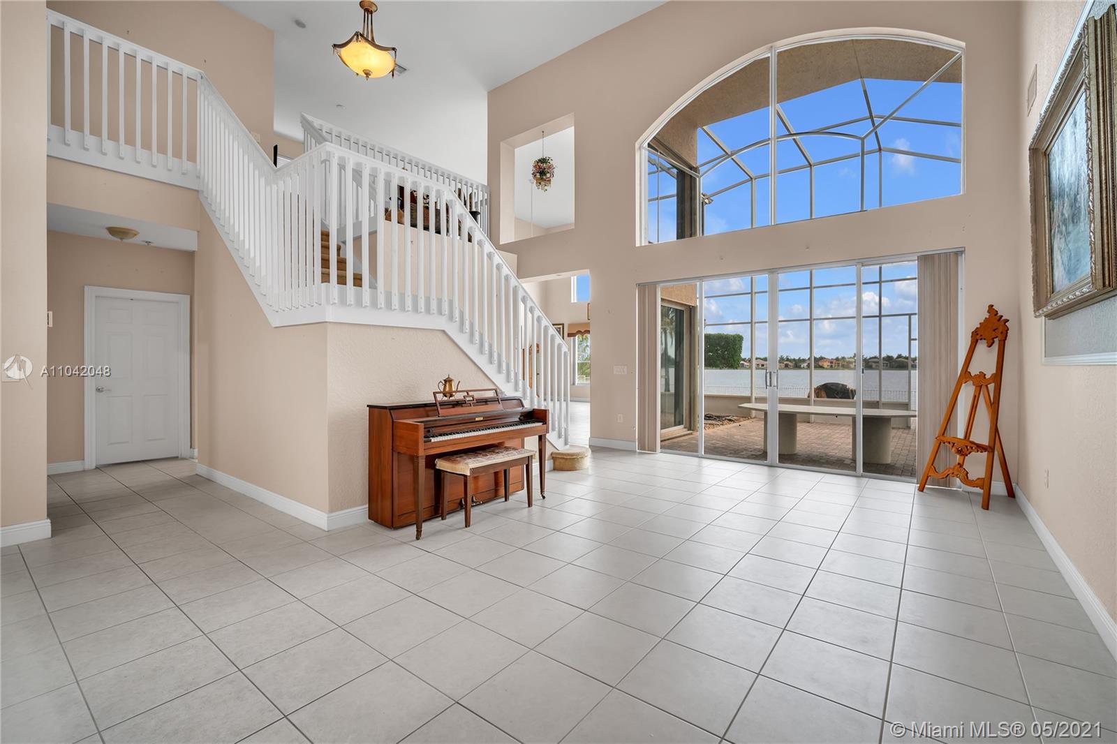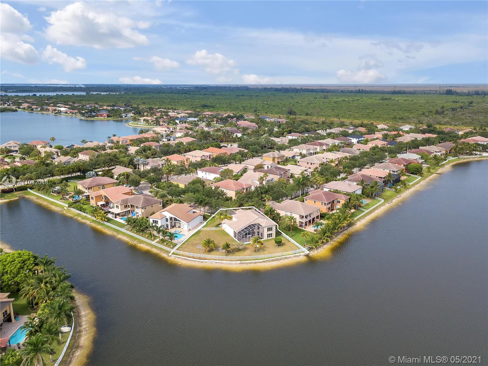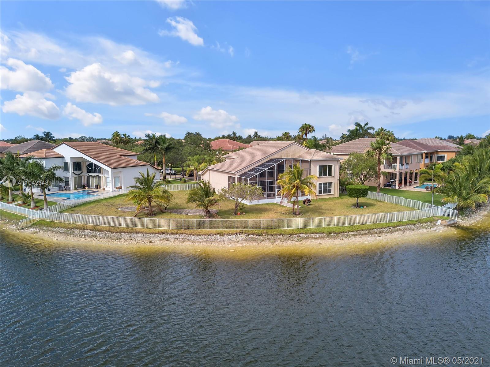 The LARGEST CORNER LOT in Miramar, Sunset Lakes! Well kept Gated community and near to top rated schools! Great commuting distance to Miami and close to shopping malls, restaurants, and entertainment. This home features a 5 Bedrooms, 5 Bathrooms with 3 car garage. Master suite and 1 bedroom with 3 full bathrooms downstairs. This home is very spacious with vaulted/volume ceilings, tile flooring, a large kitchen with center island, and wood cabinetry. A large Loft on the second floor; enough space to put an additional indoor gym or office room. Screened in porch with the most amazing, stunning views of the lake! Let this be your next tropical oasis from all the noise! UPCOMING SHOWINGS START OPEN HOUSE SAT 5/22: 12-4PM & SUN 5/23: 1-5PM