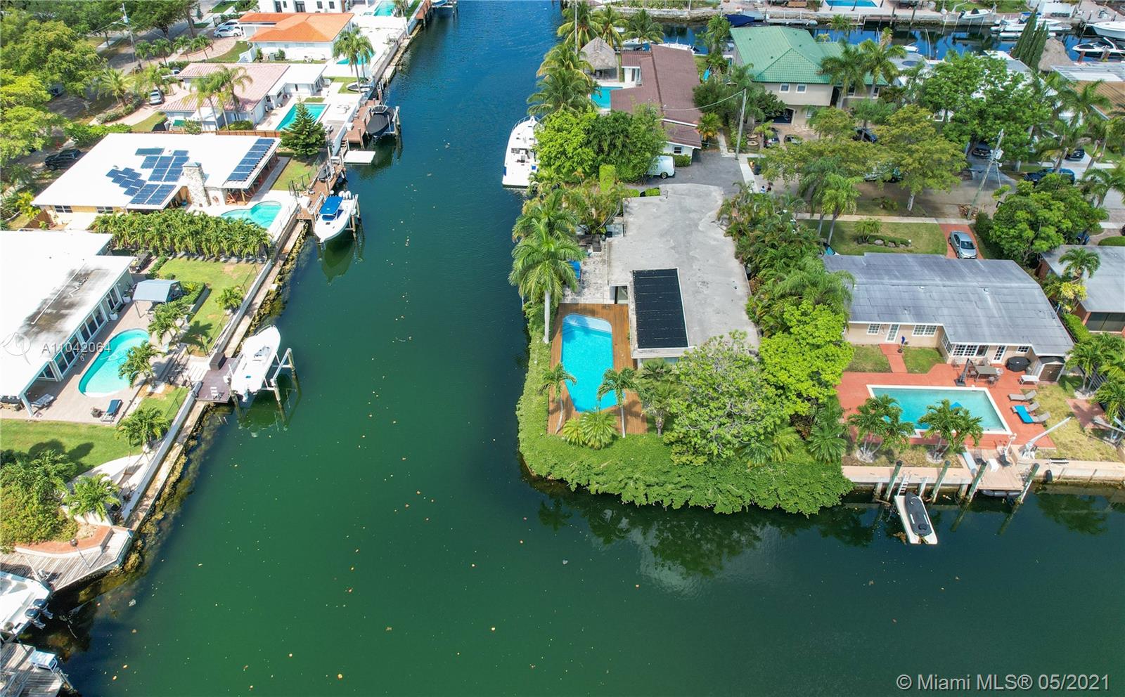 Sought after corner lot with southern (SE) exposure with 205 feet on the water, ocean access, deep water canal and no bridges to bay for under $2m located on the Islands of Keystone Pt, Miami, FL. Quiet at the end of the Cul-de-sac lot with 10,500sq.ft. of land. Build your dream home here. 24 Hour guard gated community located across the Bay from Bay Harbor and Bal Harbor Islands. Existing pool home has 4 beds/3baths and 2500SF of living space. Offered cash only and “as is” inspection welcome! 10 minutes to Miami Beach, walking distance to houses of worship, restaurants, and shopping. 20 mins to downtown Miami and 30 minutes to area Airports. The southeast exposure lends itself to incredible natural light.