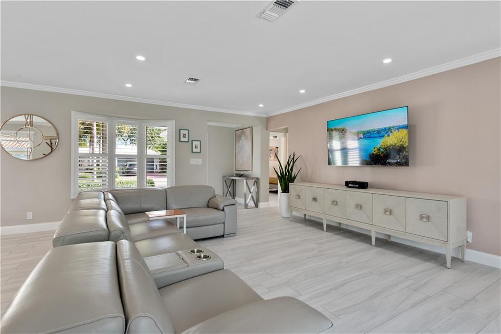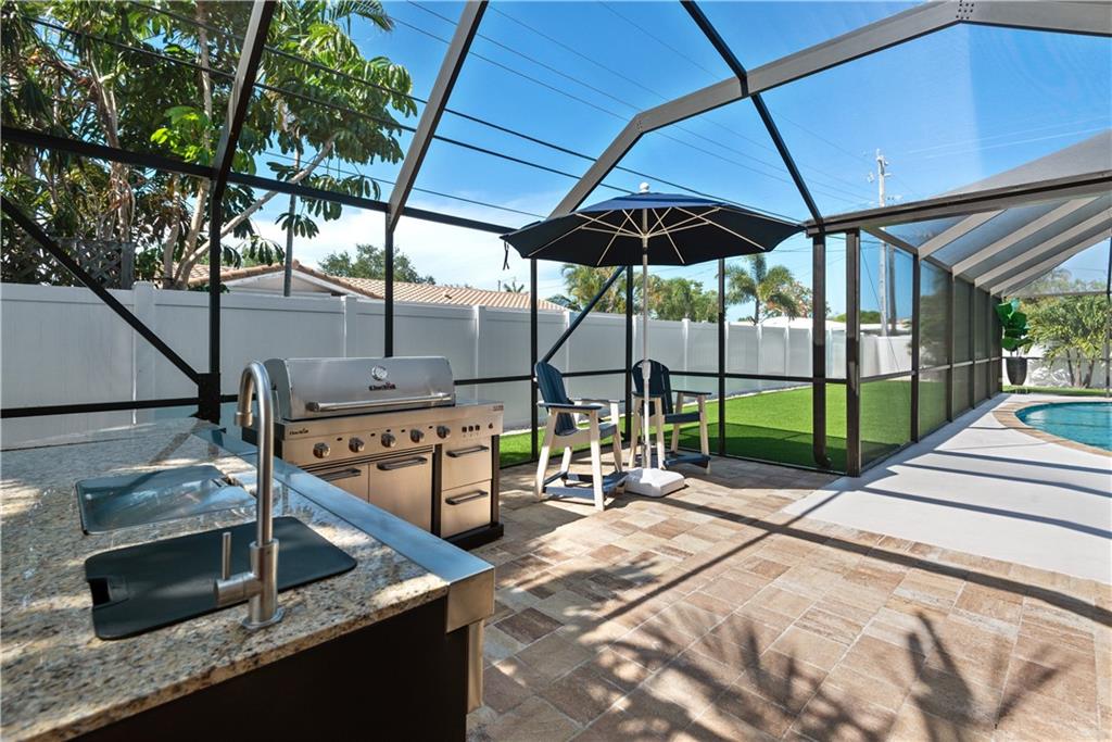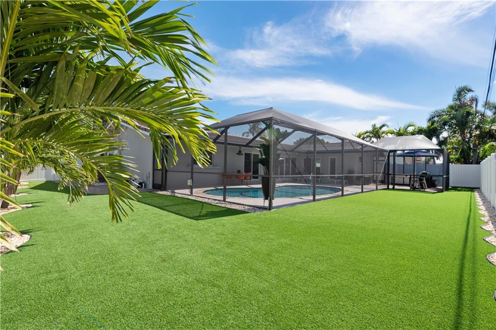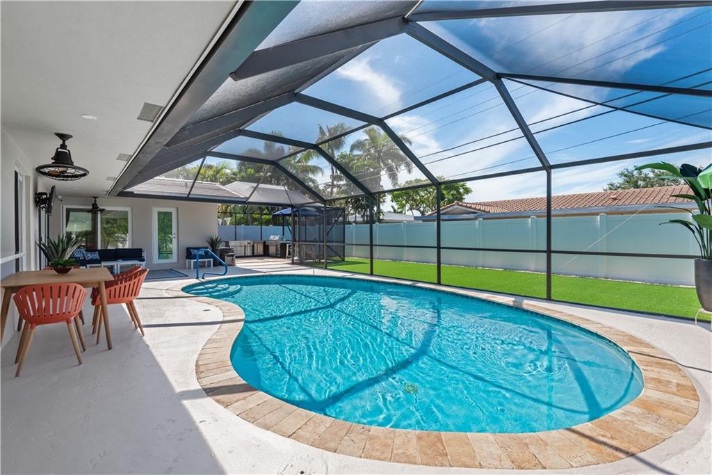 Beautiful Imperial Point pool home on an oversized corner lot! The sellers carefully planned out every detail in this full home renovation. New features include: roof (2020), fascia, seamless gutters, impact windows and doors, flooring, kitchen, baths, hybrid water heater, A/C, motorized shades, central vac, security cameras, garage door, screened enclosure, summer kitchen, synthetic grass and much more. The fresh white kitchen is complete with window over the sink and breakfast bar. Neutral porcelain flooring runs throughout the entire home. This home is in pristine condition and completely move-in ready!