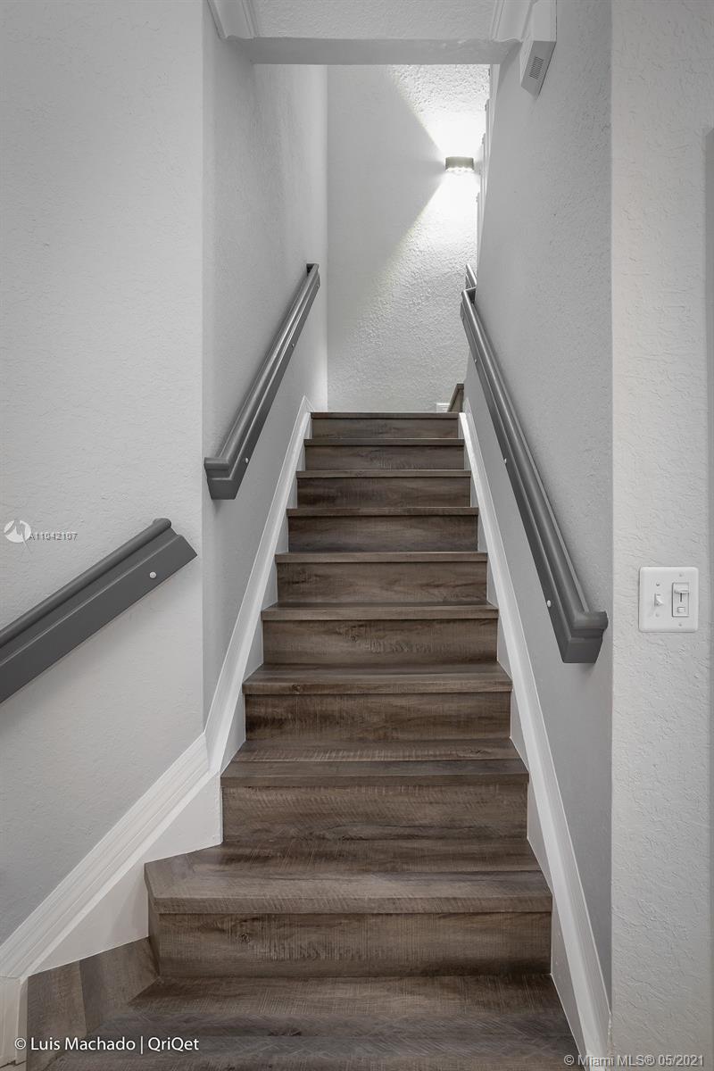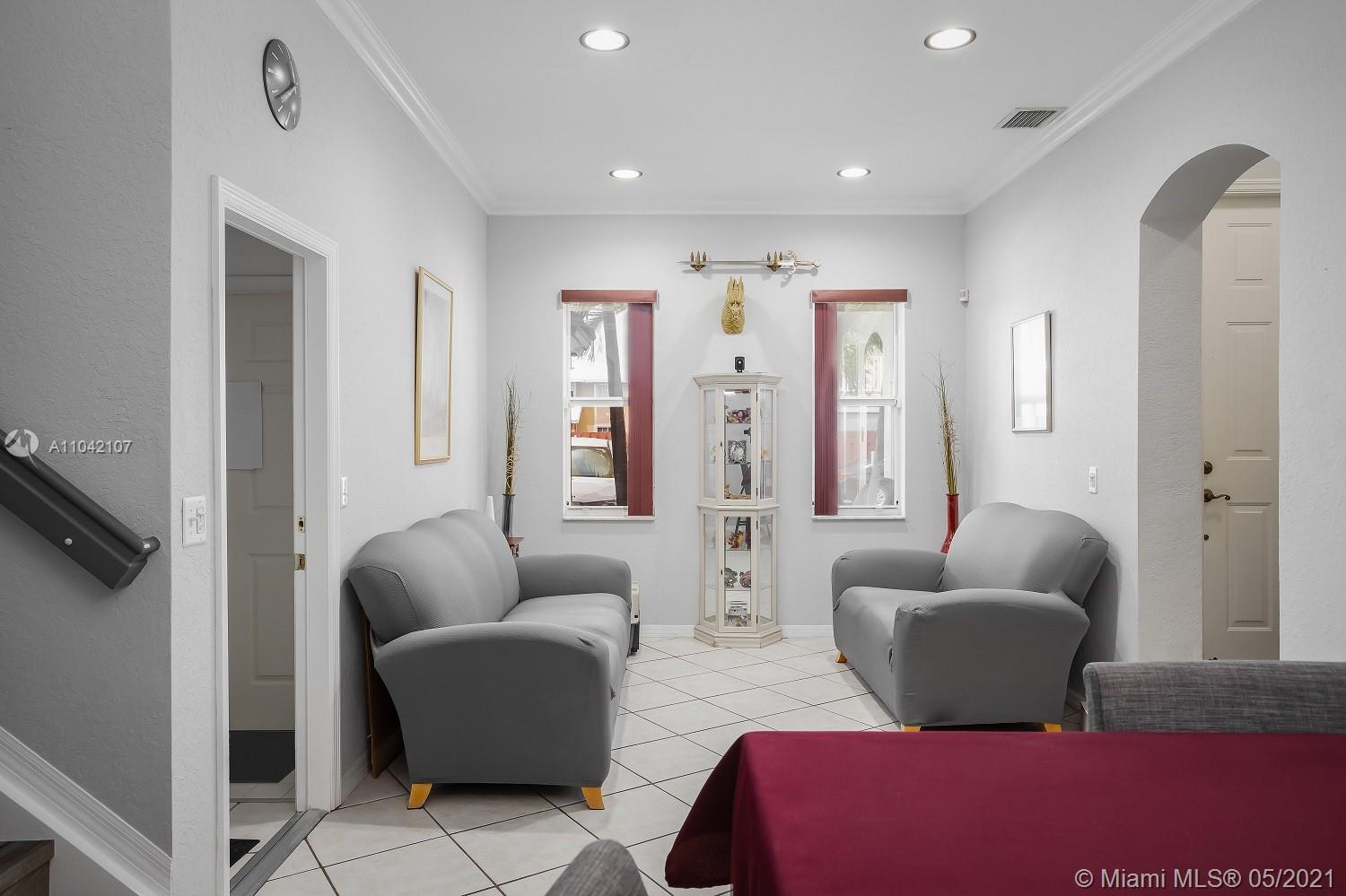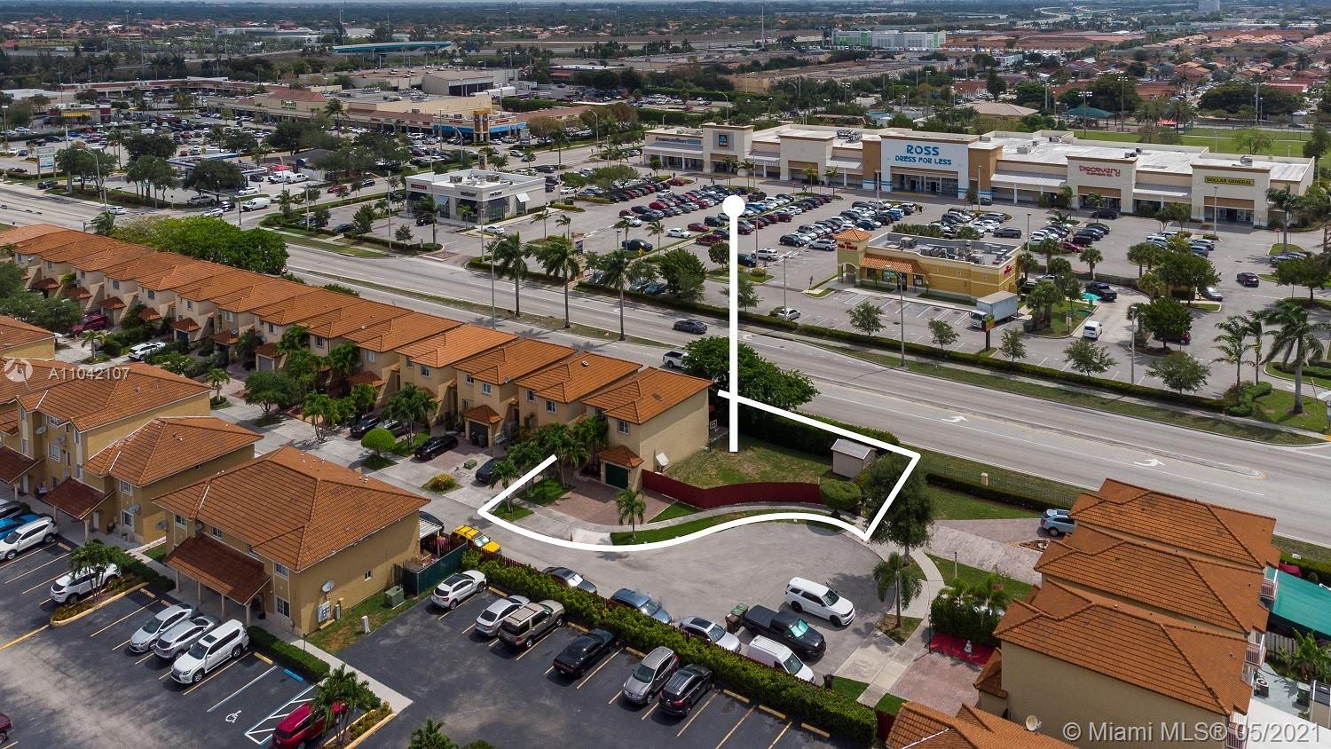 Truly one of a kind, spacious, meticulously maintained 3 bed, 2.5 bath, 1 car garage townhouse situated on oversized, ** 5,235 sf fenced lot with room to park a boat or additional vehicles ** Easy access to the back yard through a wide double gate. Extra wide driveway with room for 3 cars. The property features diagonal laid tile floors throughout the first floor, wood kitchen cabinets, stainless steel appliances, LED energy efficient lighting, crown molding, new wood floors on the stairs as well as the common area upstairs, carpet in the bedrooms, New A/C (May 2020), new rear fence (2020), new washer/dryer (2019), accordion hurricane shutters, sprinkler system. Excellent location close the I-75, Turnpike and 826, close to shopping, dining and entertainment.