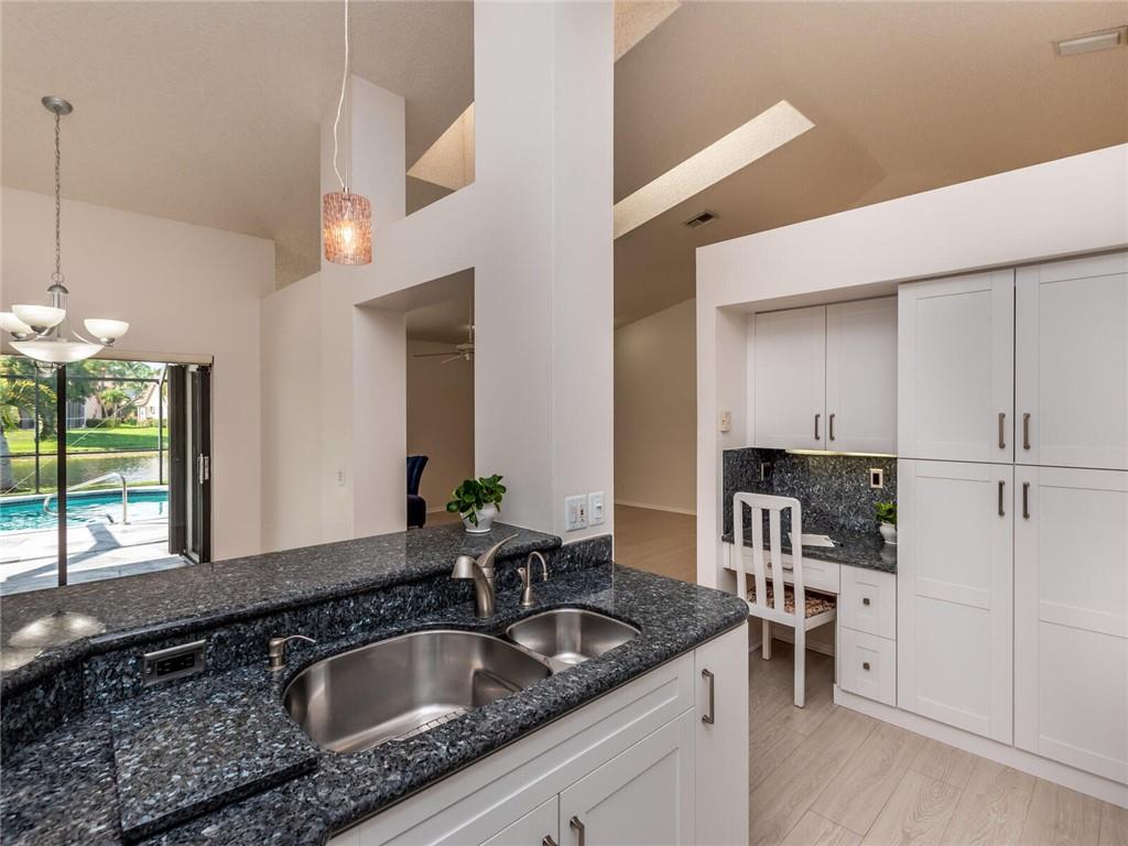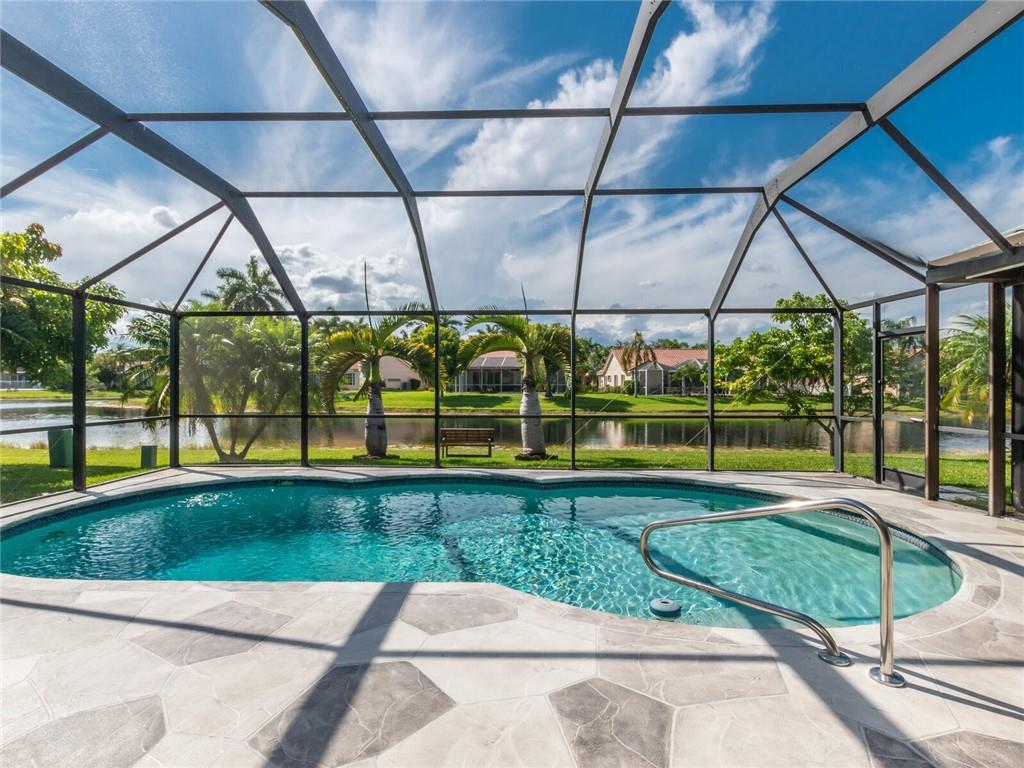 RUN DON'T WALK BECAUSE YOU WON'T WANT TO MISS THIS LOVELY 3 BEDROOM, 2.5 BATH LAKEFRONT POOL HOME THAT HAS BEEN CAREFULLY PREPARED AND READY FOR THE NEW BUYER TO MOVE INTO. NEWLY PAINTED INTERIOR WALLS AND BASE BOARDS IN NEUTRAL TONES, LAMINATE FLOORING THROUGHOUT, 1/2 BATH AND SECONDARY BATH RENOVATED, NEW MODERN WHITE KITCHEN CABINET DOORS & HANDLES, GRANITE COUNTERS, SKYLIGHTS HELP KEEP THE HOUSE LIGHT AND BRIGHT, NEW WATER HEATER. GARAGE CABINETRY WITH FRESHLY PAINTED FLOORS. COME HOME TO THE BOUTIQUE NEIGHBORHOOD OF SUNSET SPRINGS WITH LARGE LOTS & LAKEFRONT LIVING. GUARD GATED, WITH SPACIOUS PARKS AND PICNIC AREA, TENNIS COURT & BASKETBALL AREA. BEAUTIFUL LANDSCAPING AND MAJESTIC ROYAL PALMS LINE THE MAIN STREET. CLOSE TO SCHOOLS, SHOPPING & TOWN CENTER & EASY ACCESS TO HIGHWAYS.