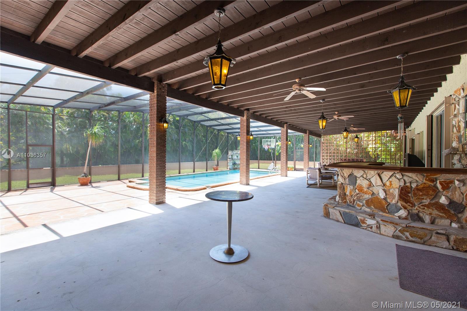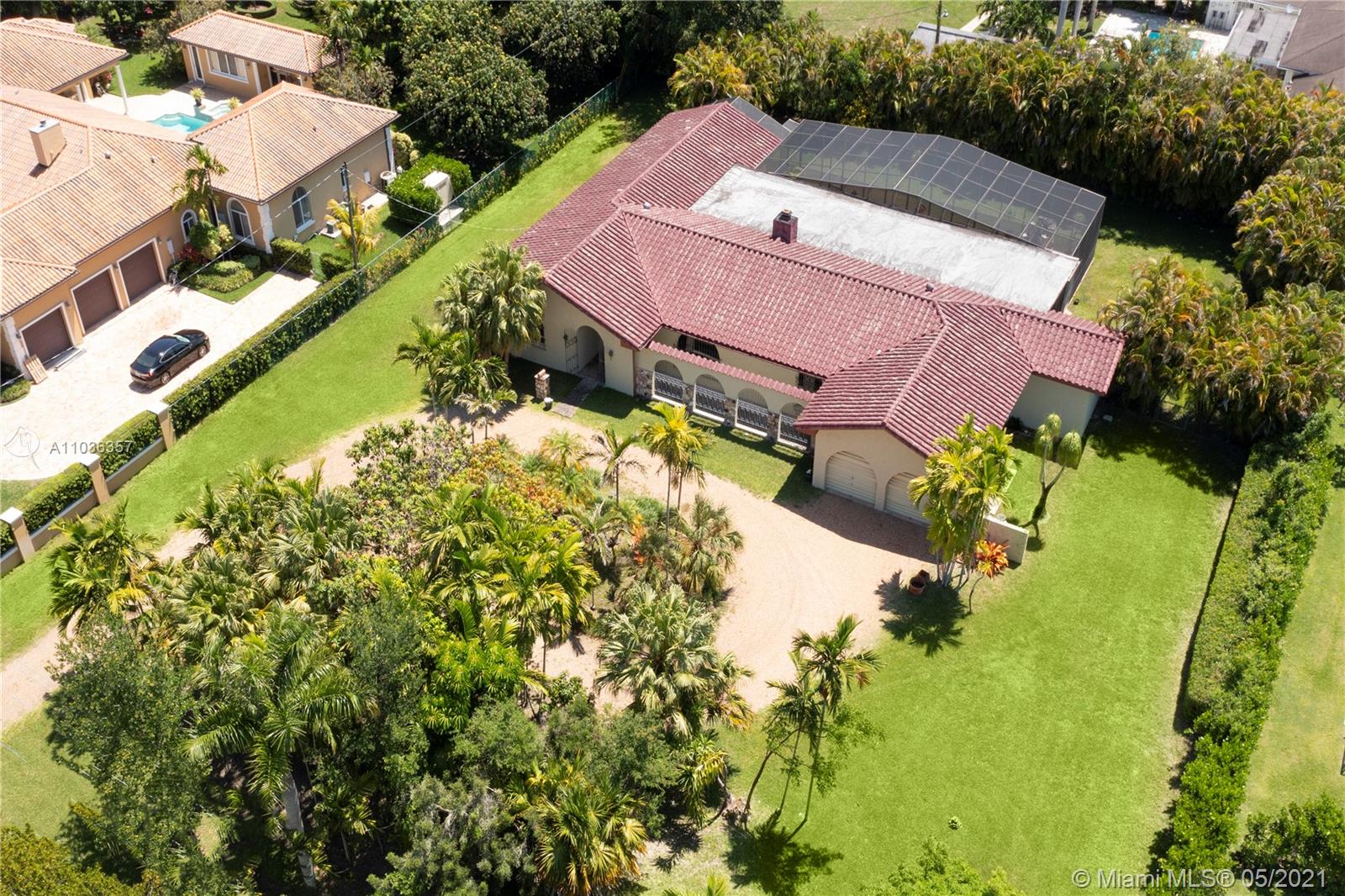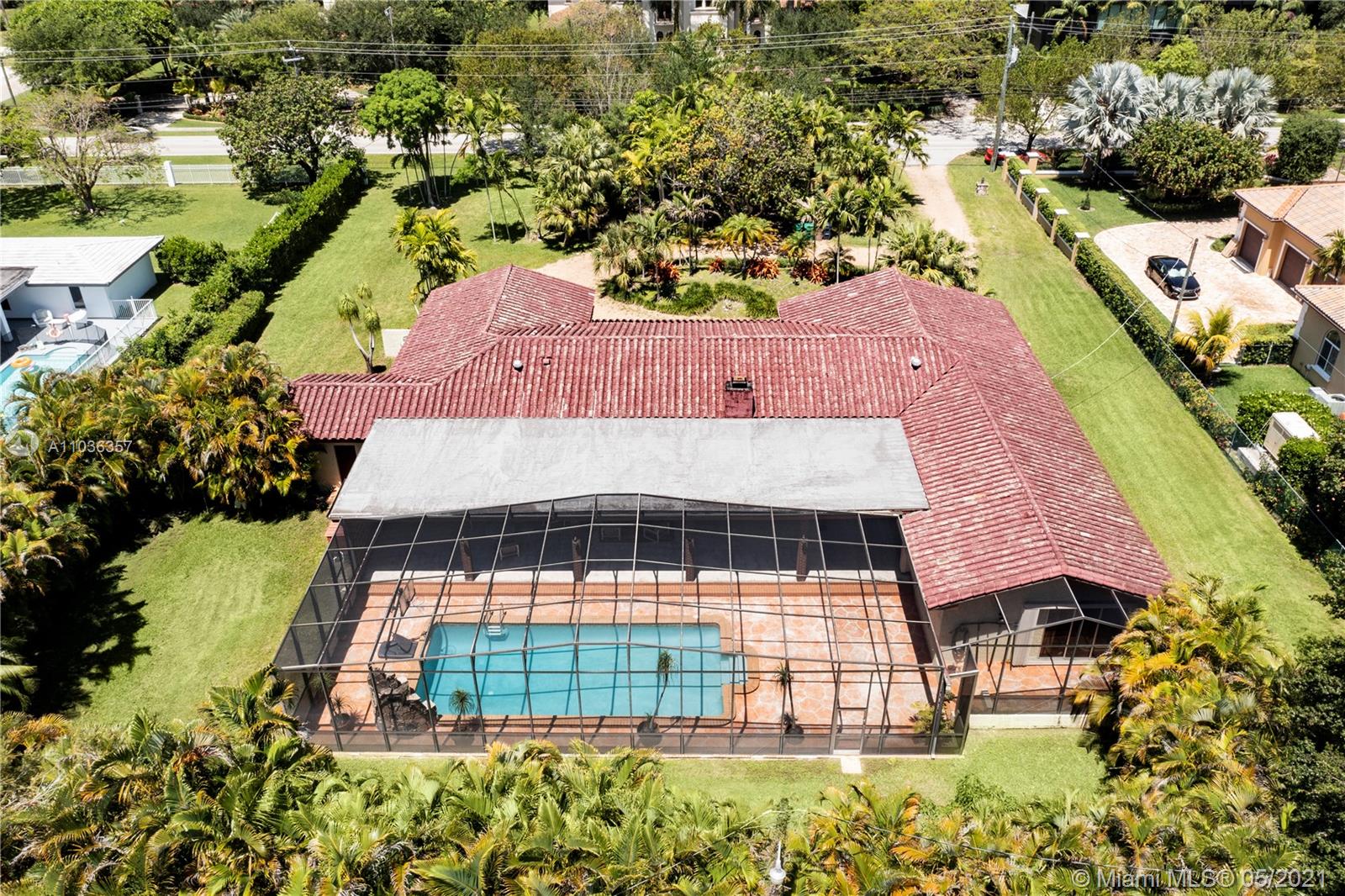 EXCELLENT LOCATION ! This house is built by renowned architect Ken Parker, located in the best area of South Florida, NORTH PINECREST. The 5,815 Actual SF sits on NEARLY AN ACRE LOT, featuring 3 spacious bedrooms, 3 bathrooms, light and airy living and formal dining rooms, stone fireplace, eat-in kitchen with pantry, laundry room, and a 3-car garage. The outdoor area is perfect for entertaining, with a roundabout driveway. The covered gallery houses a bar and ample spaces to accommodate a large number of guests. The pool area is protected by a metal mesh structure, which helps to keep it clean and able use it at any time of the day or night. Do not miss the opportunity to REMODEL it OR make it the home of your dreams..