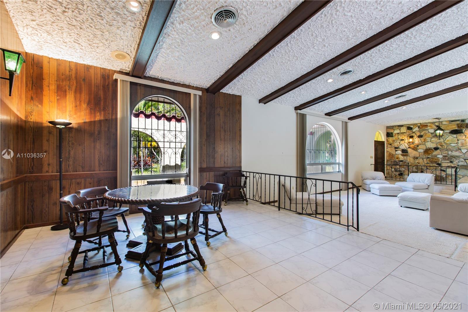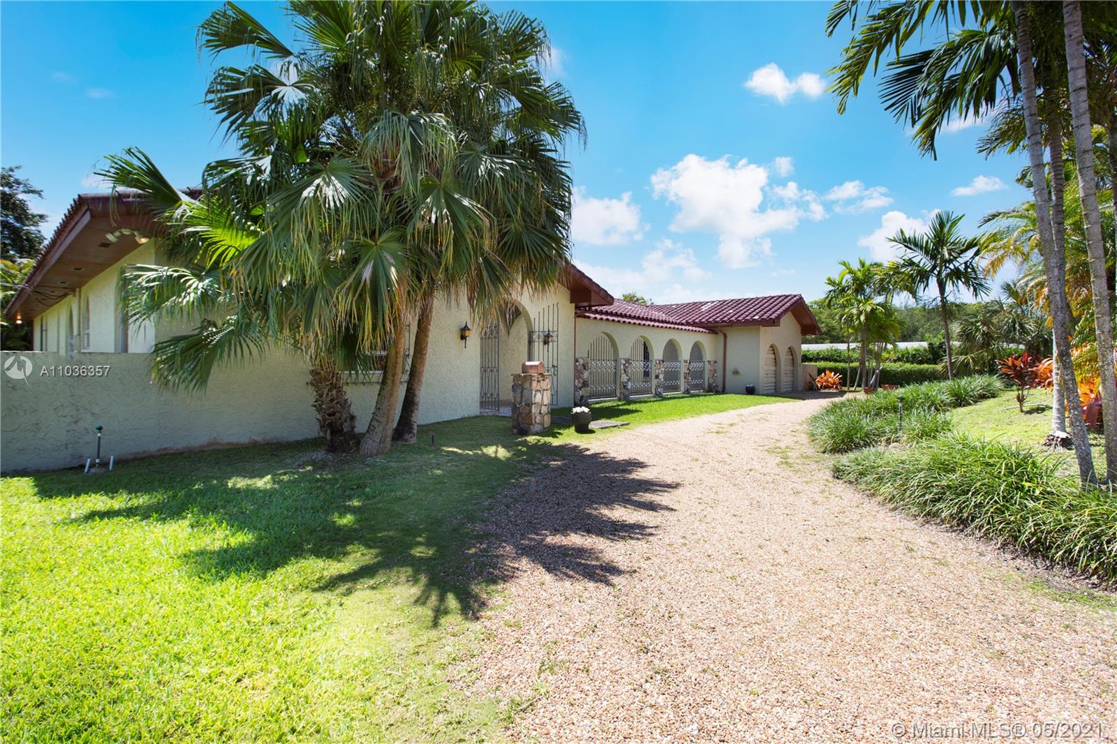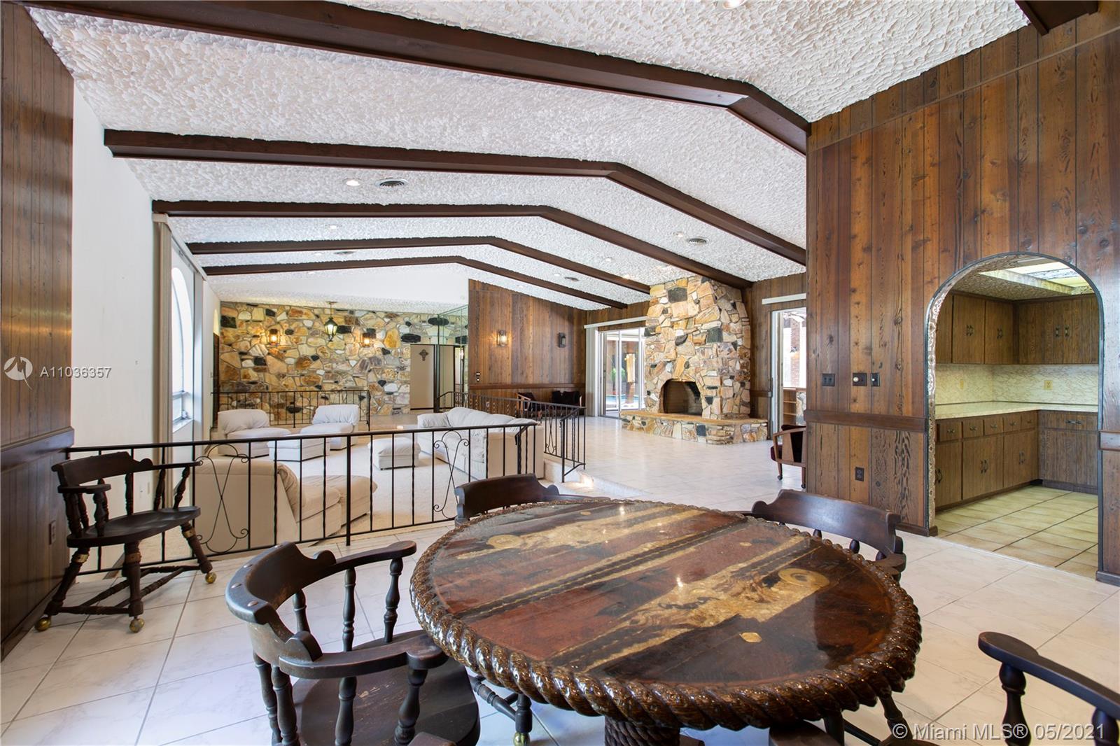 EXCELLENT LOCATION ! This house is built by renowned architect Ken Parker, located in the best area of South Florida, NORTH PINECREST. The 5,815 Actual SF sits on NEARLY AN ACRE LOT, featuring 3 spacious bedrooms, 3 bathrooms, light and airy living and formal dining rooms, stone fireplace, eat-in kitchen with pantry, laundry room, and a 3-car garage. The outdoor area is perfect for entertaining, with a roundabout driveway. The covered gallery houses a bar and ample spaces to accommodate a large number of guests. The pool area is protected by a metal mesh structure, which helps to keep it clean and able use it at any time of the day or night. Do not miss the opportunity to REMODEL it OR make it the home of your dreams..