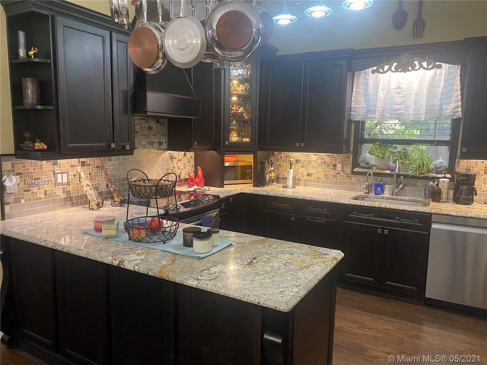 *This house has it all* From the curb appeal of the painted paver driveway to the Thomasville wood kitchen that has been extended to include a wine bar and granite island, every drawer and cabinet has a surprise; pullouts, lazy susan, garage coffee cabinet etc. Both bathrooms have been tastefully renovated including new vanities, whirlpool tub, towel heaters and a waterfall showerhead in the master. Both bedrooms have built in closet systems with drawers and a Murphy bed and 2 desks in the guest/office. A/C, W/D, Water heater and refrigerator all under 3 yrs old. Security cameras throughout the home (recorder not included) Garage is air conditioned and insulated. Fenced backyard has a 44x16 poured concrete deck covered with a pergola (optional) and a gated dog run. Low HOA and gated!