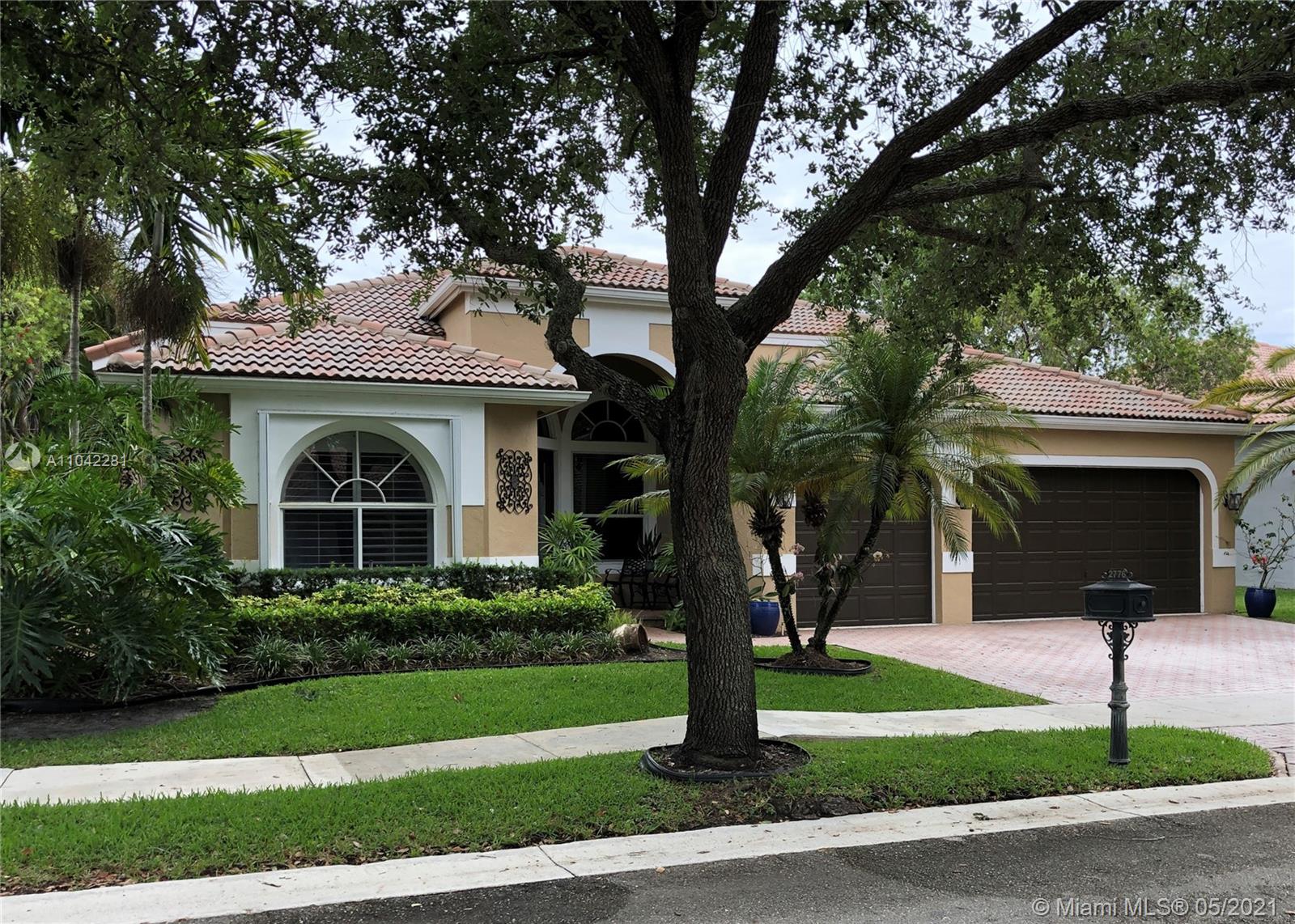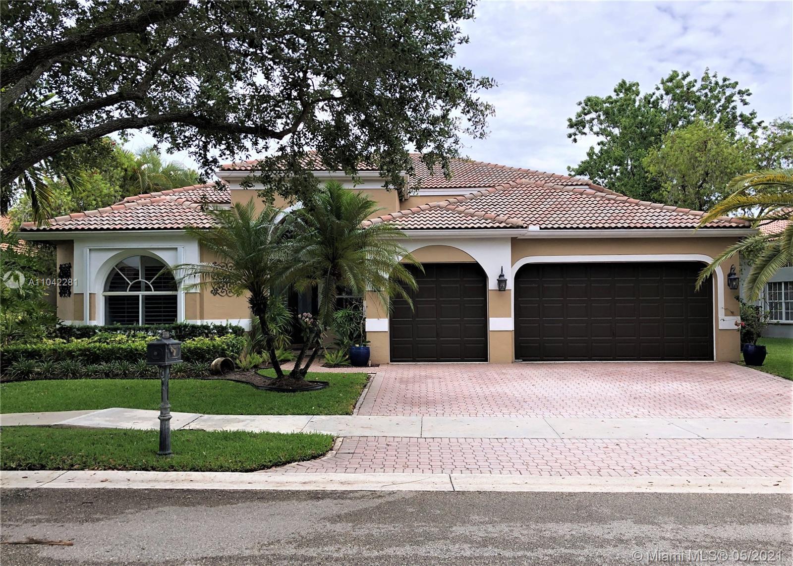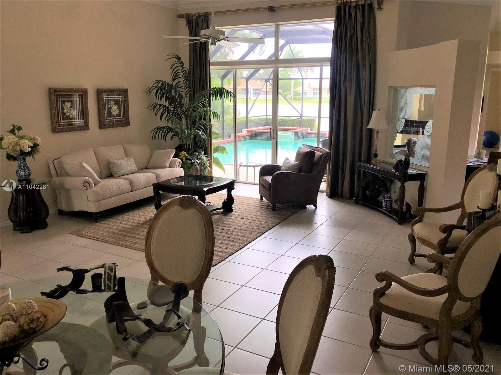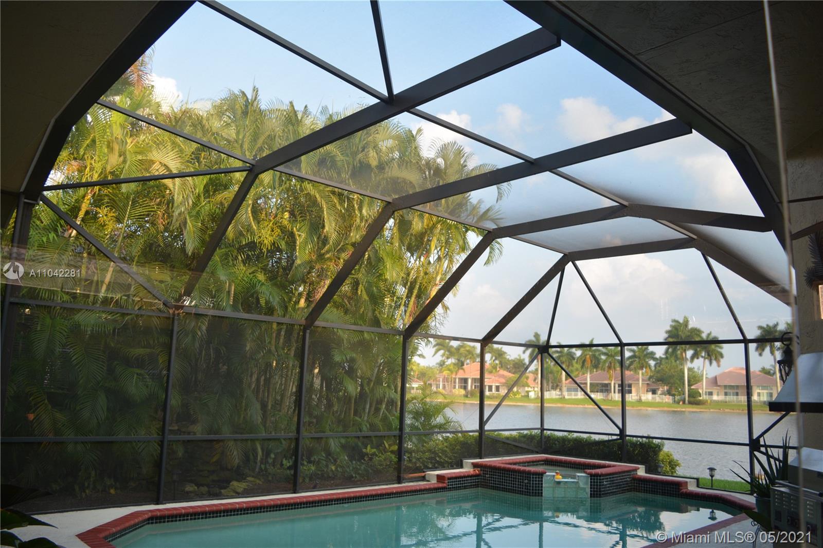 This Weston Hills house has it all! Spacious 4 bedrooms plus and office, 3 baths and 3-car garage. Featuring vaulted ceilings throughout in a three way split model plan. Great lake views from a quiet cul-de-sac street. Remodeled kitchen featuring Kitchen Aid appliances, 42" wood cabinets, granite counters & tile backsplash. Gorgeous landscaping with privacy and spa-like setting with pool and waterfall. Screened patio with summer style kitchen / built-in grill. Separate outdoor seating area, accordion shutters throughout and many more upgrades.