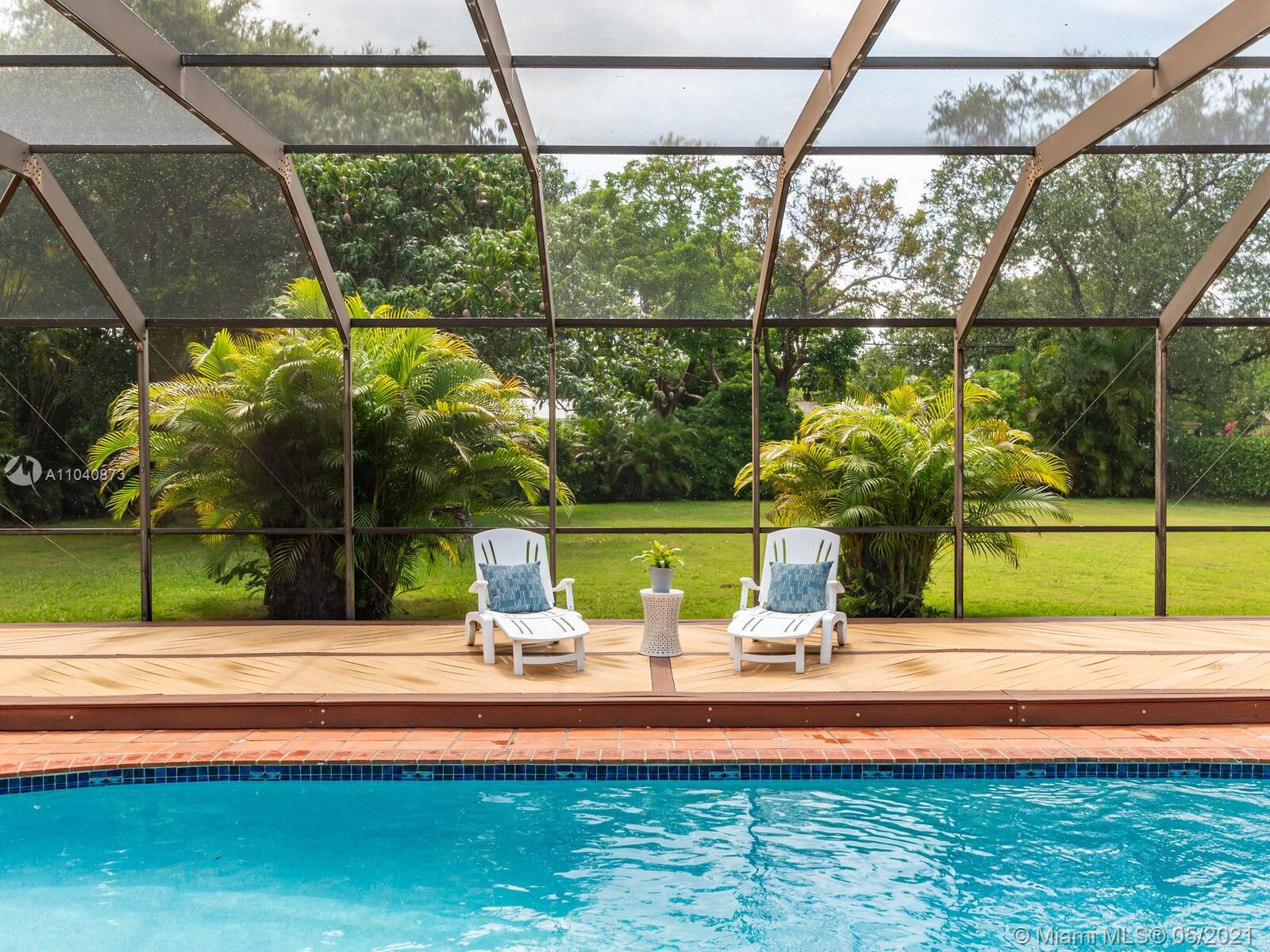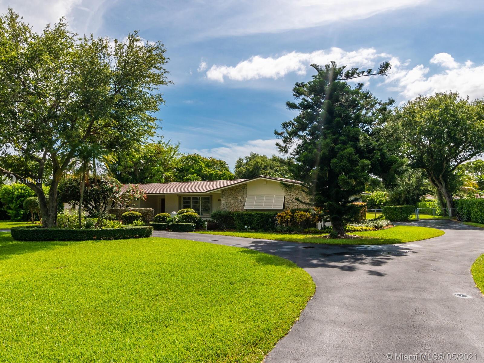 The perfect Pinecrest 4BD 3BA home plus office is set beautifully upon a deep .75 landscaped acre on a peaceful street surrounded by lovely properties. Functional split bedroom floor plan offers 2755 sf liv area with 3272 Adj sf. Light-filled French doors open from family & dining rooms to large, covered patio & dome screened pool offering a wonderful entertaining venue. Aluminum roof, accordian shutters, big circular drive, 2-car gar & separate laundry room. Bright white kitchen & breakfast area with big window views of the sparkling pool & expansive yard, lots of room to play! Within walking distance to the top-rated Palmetto & private schools, groceries, restaurants, cafes & shops. This lovely home has been meticulously maintained for by the same owners since 1987. Not in a flood zone.