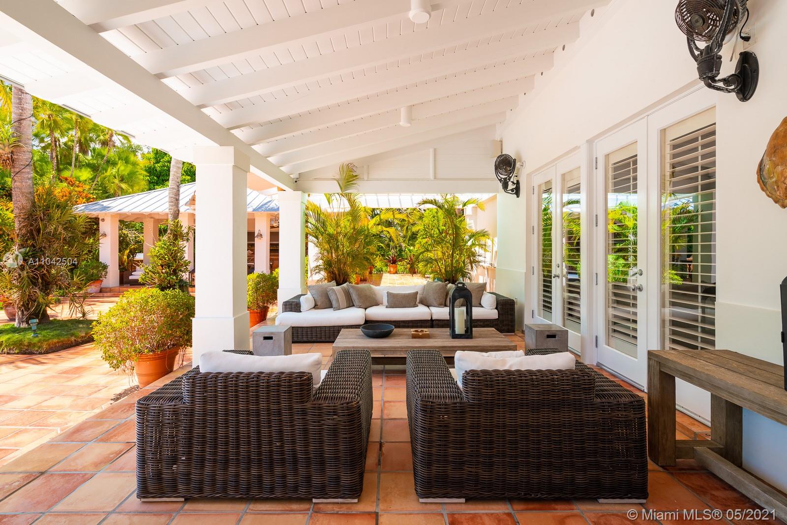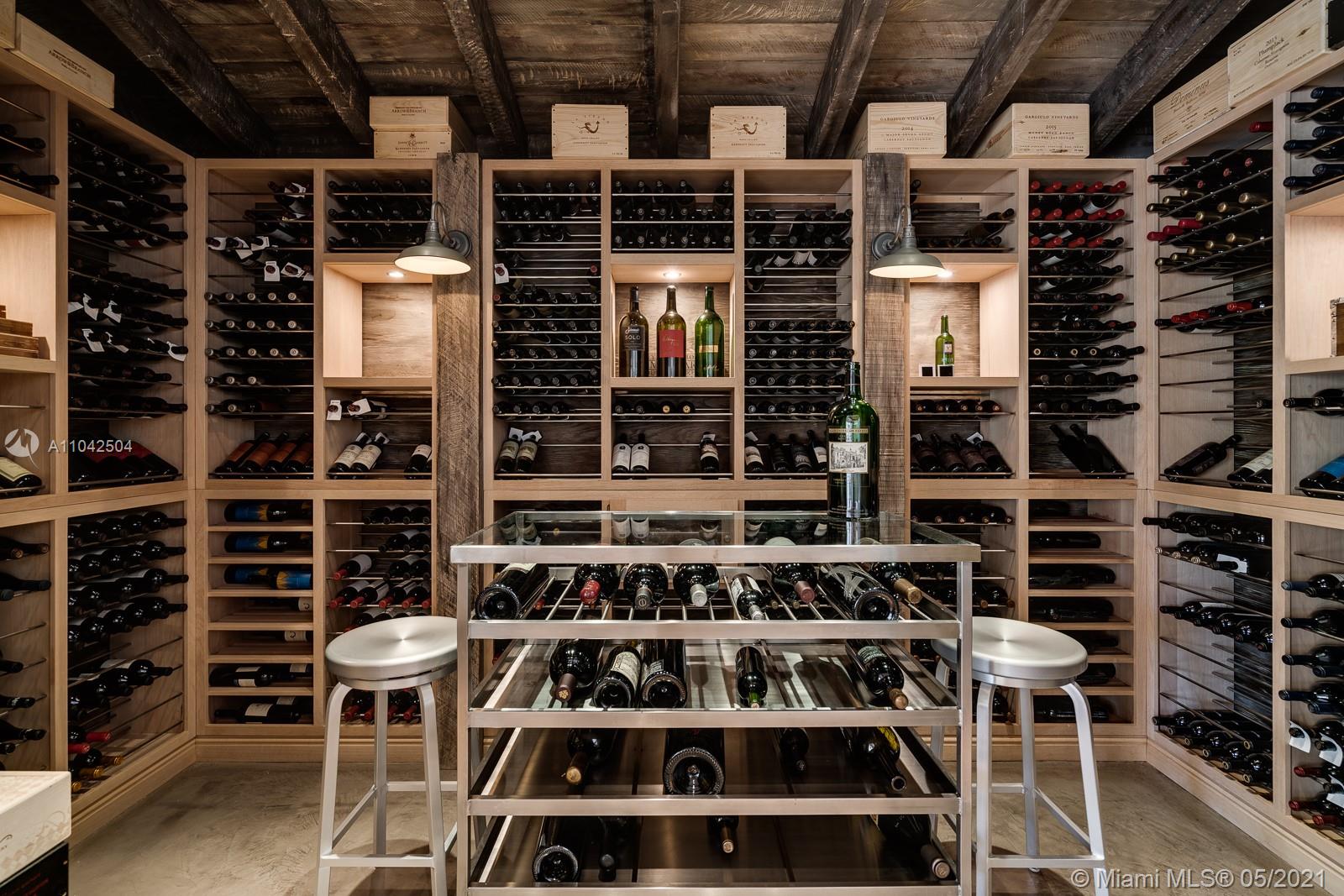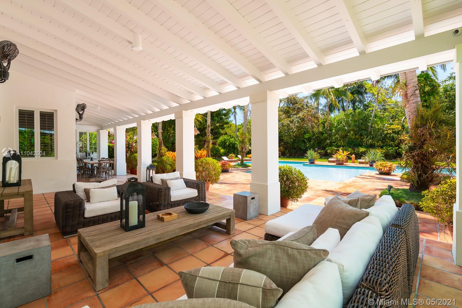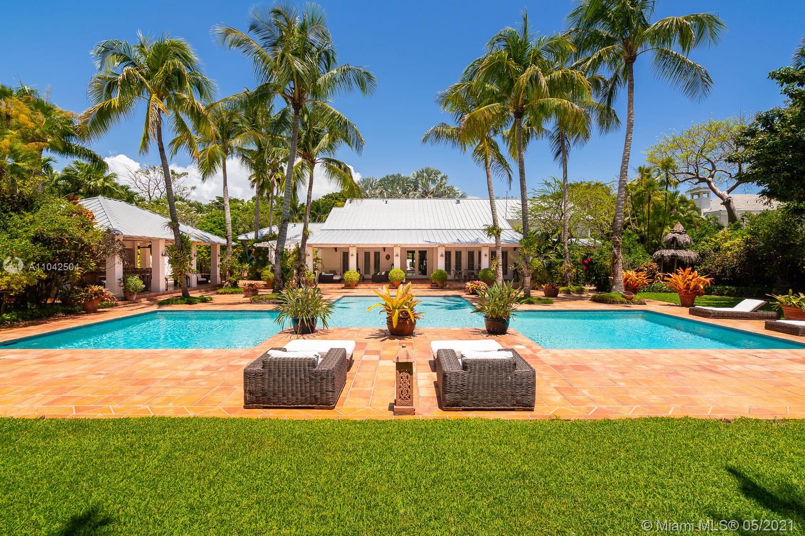 Fall in love with this extraordinary estate that is the essence of South Florida living. Magnificent interiors and splendid al fresco spaces are nestled in a vibrant flora of striking exotics. Volume ceilings, walls of glass, and splendid grass cloth coverings are the backdrop to grand social spaces which include a huge eat-in kitchen, family room w/ 1200+ bottle wine cellar, and fabulous living & dining rms. Bedrooms are glorious; each w/ ensuite bath, and the master suite is a divine spa in itself.The crown jewel of this paradise is the outdoor oasis of covered verandas, resort-style pool, remarkable summer kitchen, and breathtaking canopy of color. One could never imagine what lies beyond these gates, and PS, there is a 3-car garage w/ air-conditioned gym and a full house generator too!