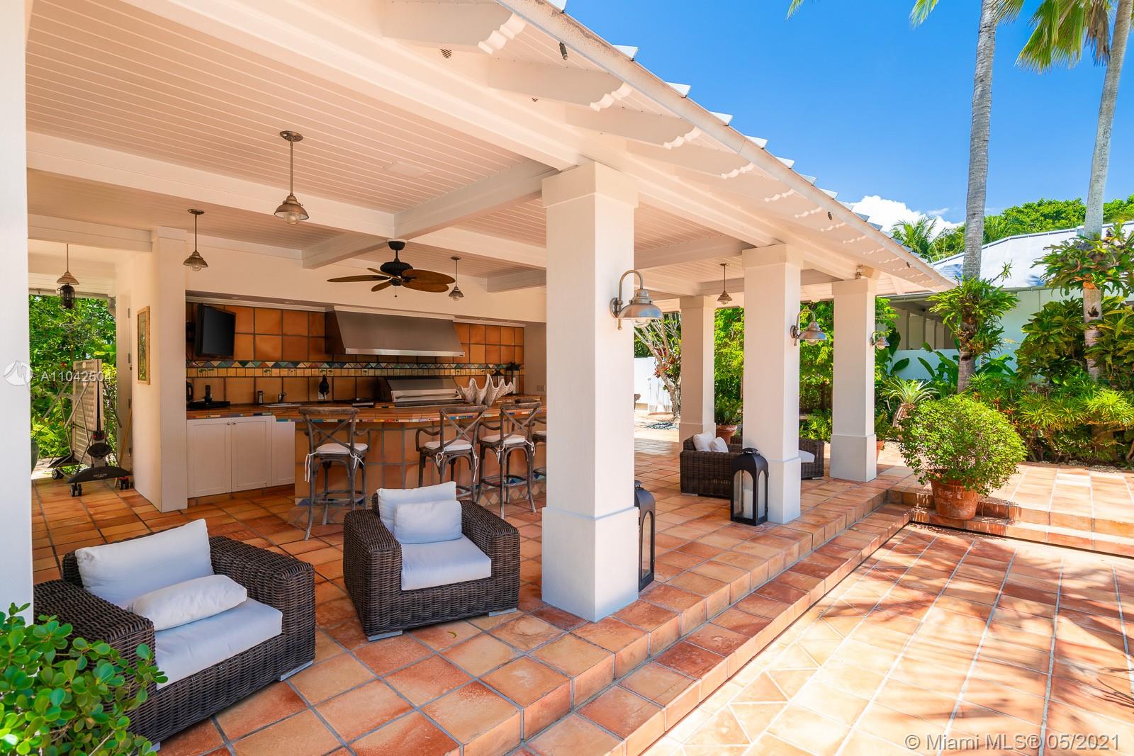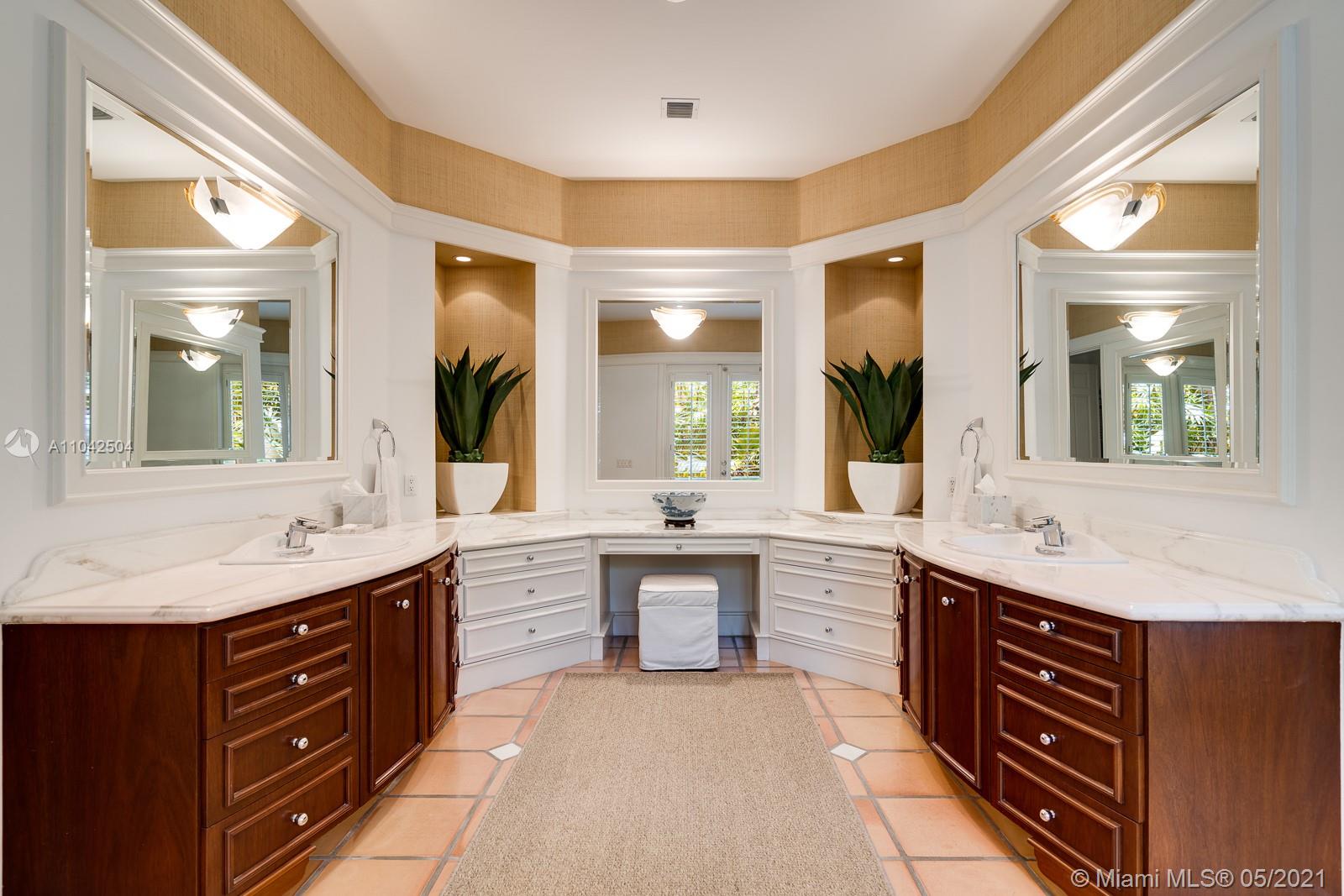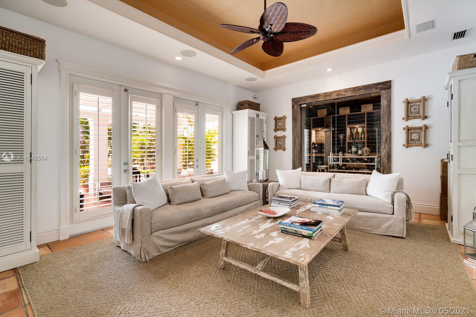 Fall in love with this extraordinary estate that is the essence of South Florida living. Magnificent interiors and splendid al fresco spaces are nestled in a vibrant flora of striking exotics. Volume ceilings, walls of glass, and splendid grass cloth coverings are the backdrop to grand social spaces which include a huge eat-in kitchen, family room w/ 1200+ bottle wine cellar, and fabulous living & dining rms. Bedrooms are glorious; each w/ ensuite bath, and the master suite is a divine spa in itself.The crown jewel of this paradise is the outdoor oasis of covered verandas, resort-style pool, remarkable summer kitchen, and breathtaking canopy of color. One could never imagine what lies beyond these gates, and PS, there is a 3-car garage w/ air-conditioned gym and a full house generator too!
