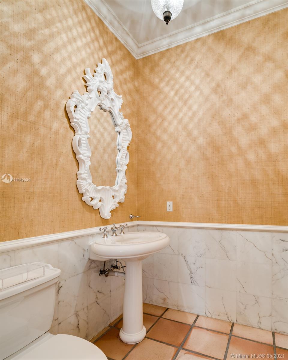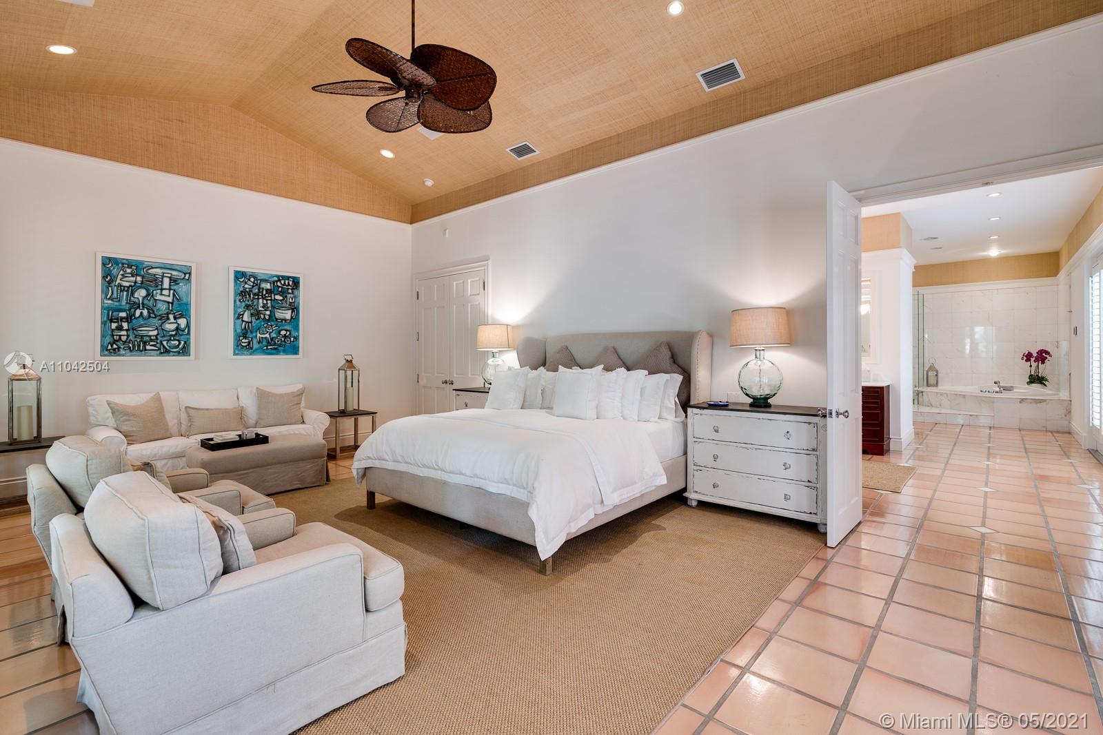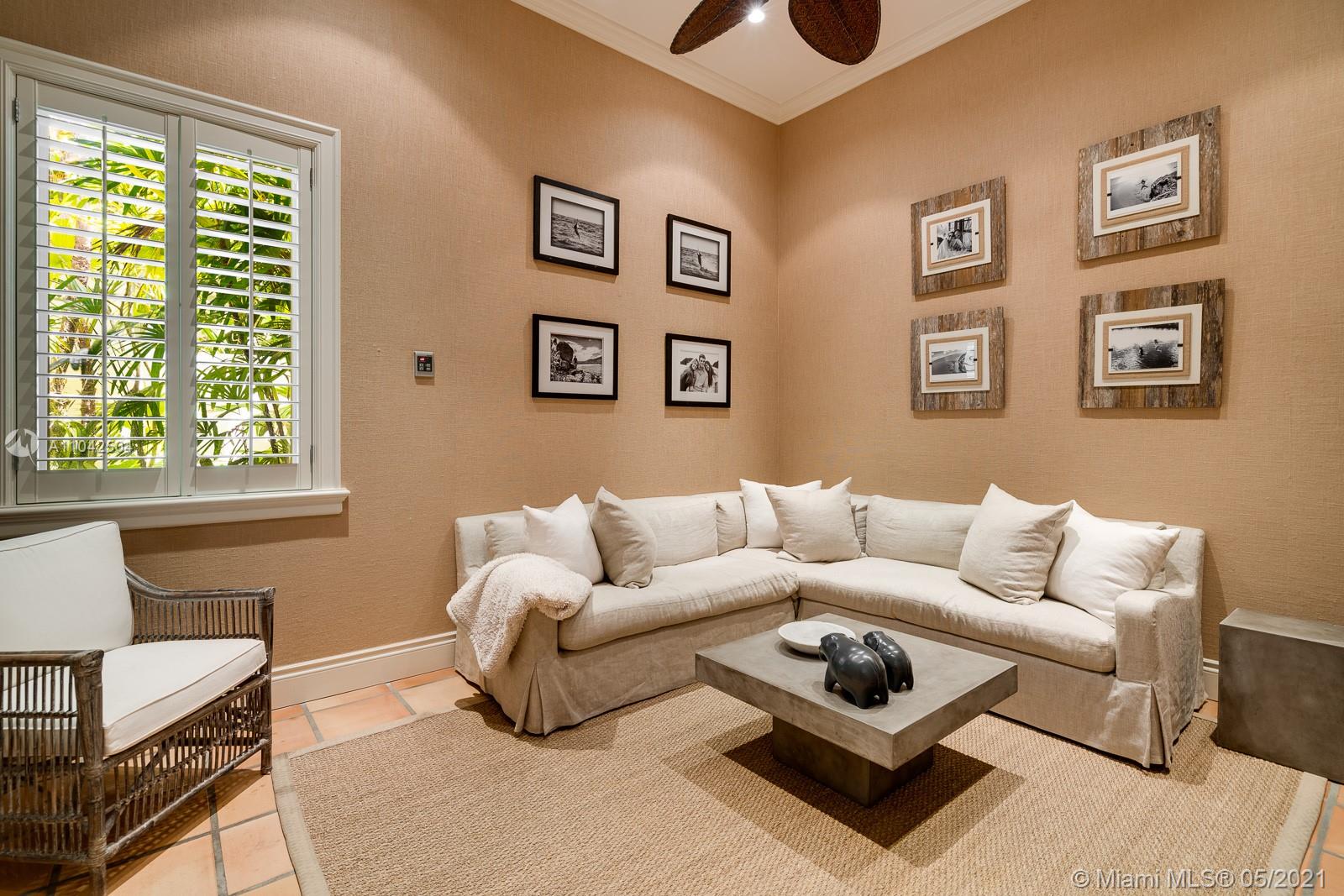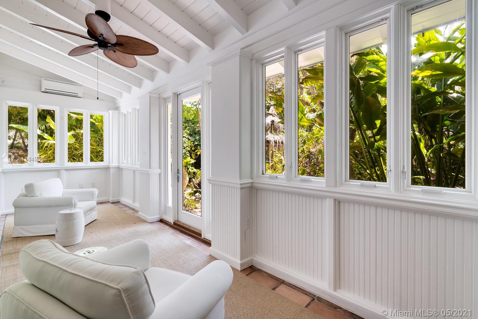 Fall in love with this extraordinary estate that is the essence of South Florida living. Magnificent interiors and splendid al fresco spaces are nestled in a vibrant flora of striking exotics. Volume ceilings, walls of glass, and splendid grass cloth coverings are the backdrop to grand social spaces which include a huge eat-in kitchen, family room w/ 1200+ bottle wine cellar, and fabulous living & dining rms. Bedrooms are glorious; each w/ ensuite bath, and the master suite is a divine spa in itself.The crown jewel of this paradise is the outdoor oasis of covered verandas, resort-style pool, remarkable summer kitchen, and breathtaking canopy of color. One could never imagine what lies beyond these gates, and PS, there is a 3-car garage w/ air-conditioned gym and a full house generator too!
