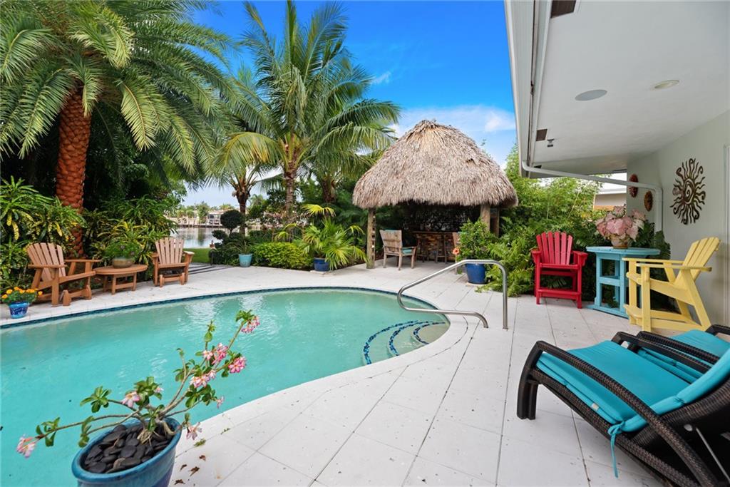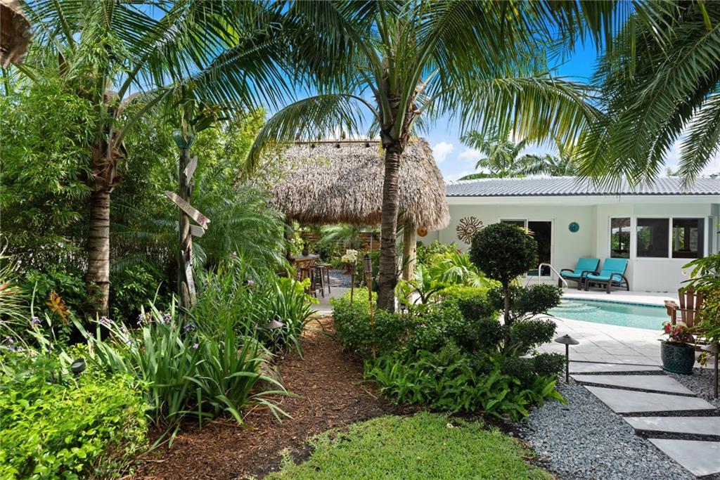 If you want your own private oasis, you must see this totally updated home. 4 bedrooms and 3 bath. Master bedroom has built ins and oversized closet.All new porcelain flooring, new kitchen and baths. Totally fenced in with luxurious landscaping and exterior lighting. You'll enjoy evening in your private back yard with your outside tiki hut with electric and private updated pool with all new pool deck. This lot is over sized, so you have many places to relax in your tranquil gardens. New irrigation for landscaping. 2 car garage. This home at the end of a cul-de-sac so there is very little traffic. You must see what this house has to offer to you. Furniture can be sold separately