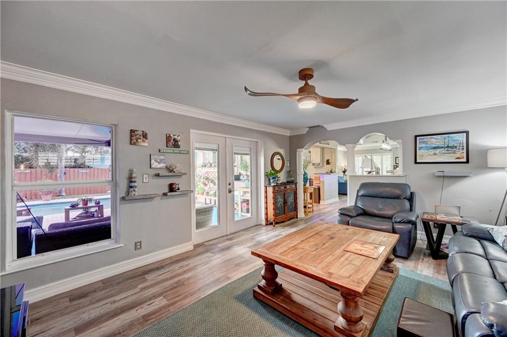 Welcome home to this beautifully updated & lovingly maintained 3 bedroom 2 bath home on an interior street in popular Lyons Park. Not a thing to do here but move in. Just imagine at the end of a long day coming out to relax & enjoy the beautiful covered patio area that overlooks the (heated in the winter) sparkling freeform salt water pool & spa. The extensive yard is fenced & very private with no backyard neighbors. This home has impact windows & doors for maximum hurricane discount on insurance (not to mention your peace of mind). You'll literally fall in love the moment you walk in & see the open floorplan, the beautiful natural light, the fantastic flow of this home, & the creative updates. The backyard is where you'll likely spend most of your time relaxing. This home is fabulous!