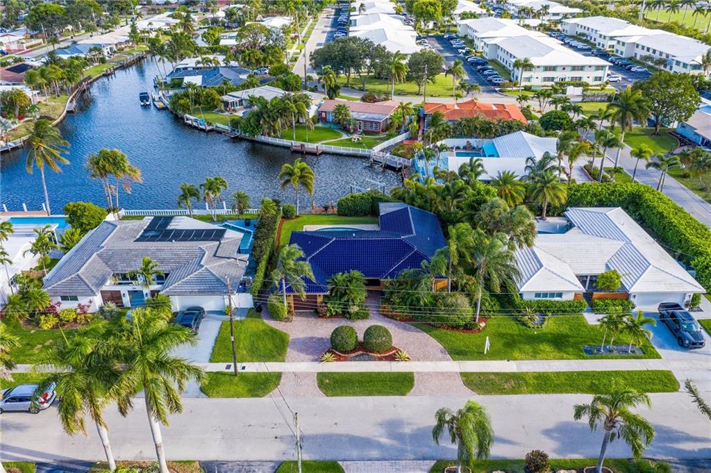 Imperial Point-rarely available, waterfront SFH. Beautifully updated 2 bedroom/2 bath plus office/fitness/den/ nursery/bedroom w/built-ins, large pool & patio, lush landscaping for privacy, Ring doorbell & cameras, storage shed, sprinklers, Plantation shutters, custom closets & 1 car garage! Impact windows/doors, new electrical panel, dock, new fencing, newer AC, new water heater, new washer/dryer, alarm system, unique barrel tile roof, laundry room & large kitchen. Open floorplan creates a great flow to enjoy the views from almost every room. Open kitchen w/bar, seating at counter, SS Kenmore Elite appliances, granite countertops, custom cabinetry/ storage & light accents. Perfect home for entertaining. Close to beach, restaurants, shopping, & more! Quiet neighborhood & great neighbors!
