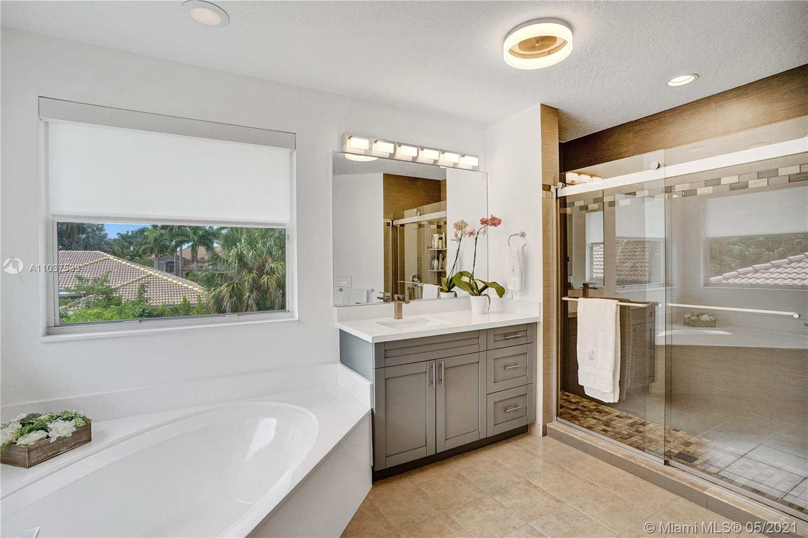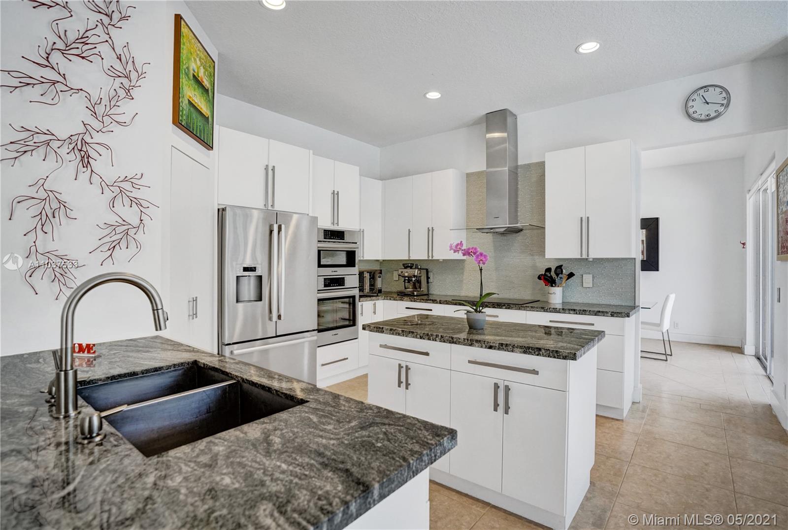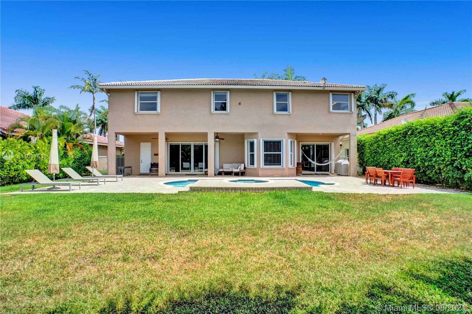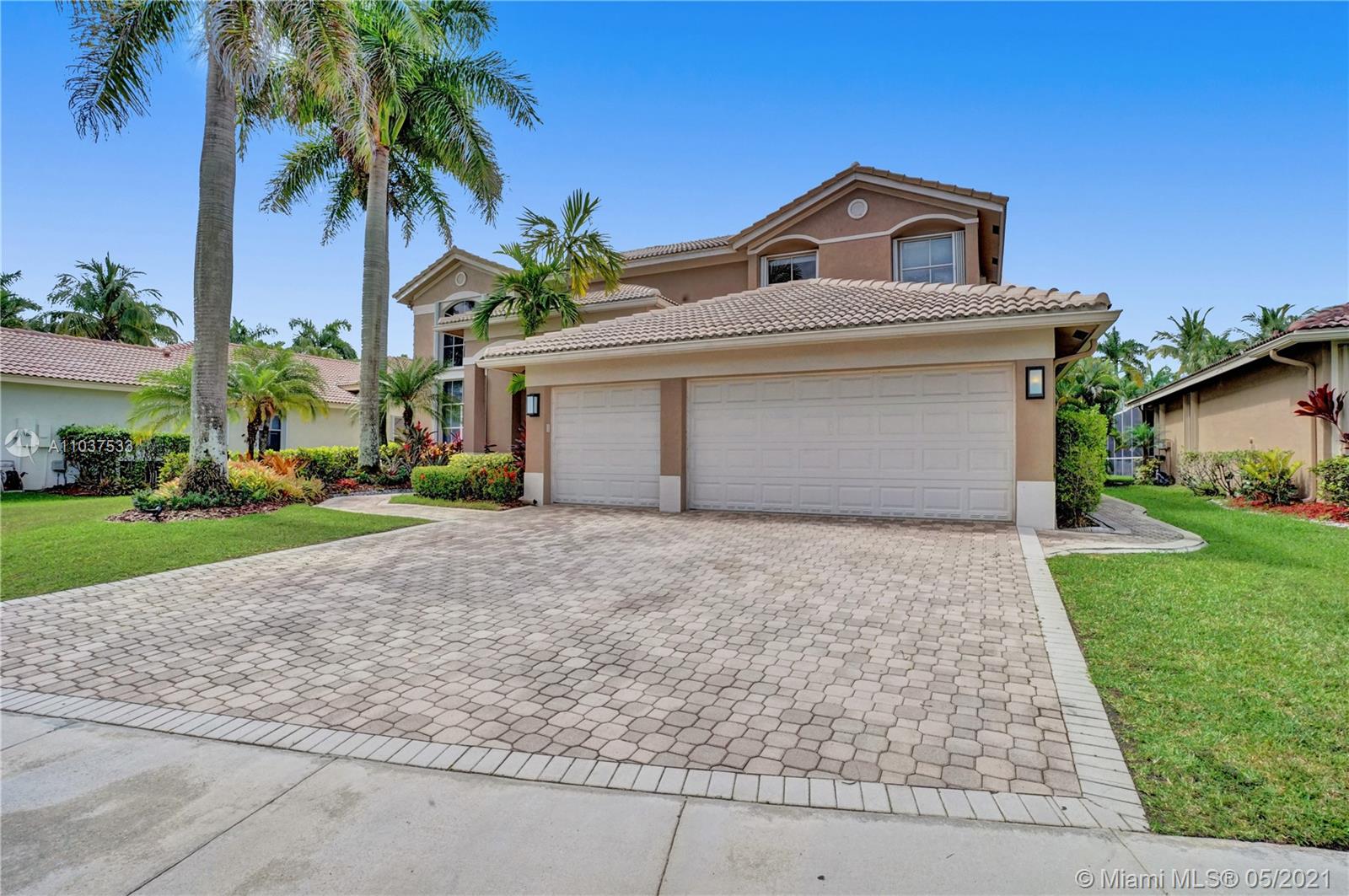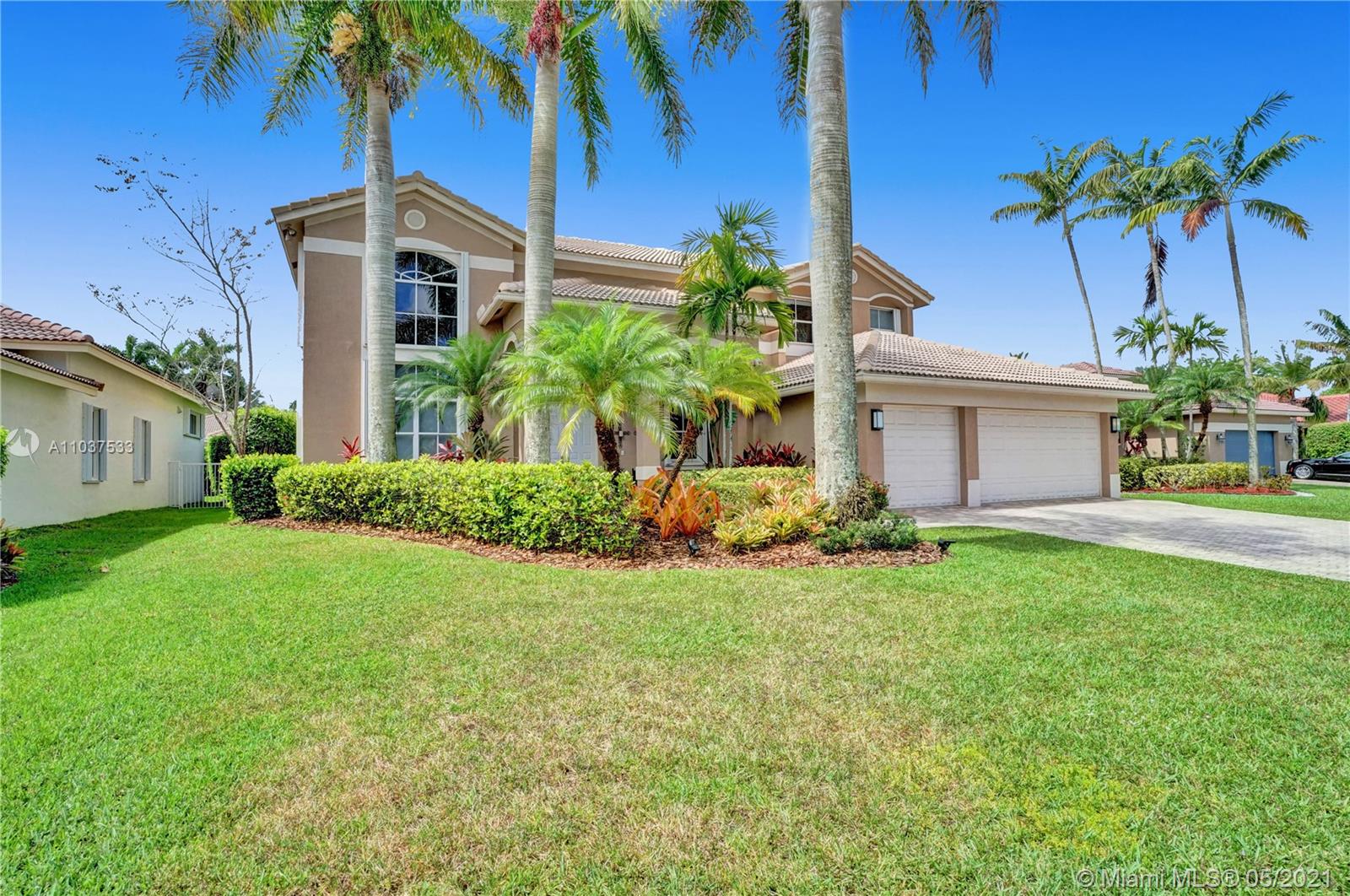 This Immaculate Two-Story modern contemporary home is perfectly set on an 11,204 SF lot. Situated in the prestigious "Victoria" at Weston Hills Country Club. Tastefully remodeled in 2016. Featuring 4BD/4BA/Den-Office/Maid-Bonus Room and 3-Car Garage. Spacious master suite located on the second floor with a walk-in closet and sitting area. Kitchen features a stacked-glass backsplash, SS appliances, granite countertop with a breakfast area that looks out to a retreat-style backyard, and an inviting pool. All bathrooms feature new tiles, glass shower doors, and new vanities. The double-height entryway, well-proportioned 3,979 SF living space and natural light makes this home unique. Other features include central Vacuum, custom window treatments, outdoor automation lighting, closet/cabinetry.