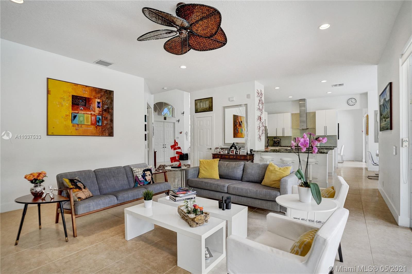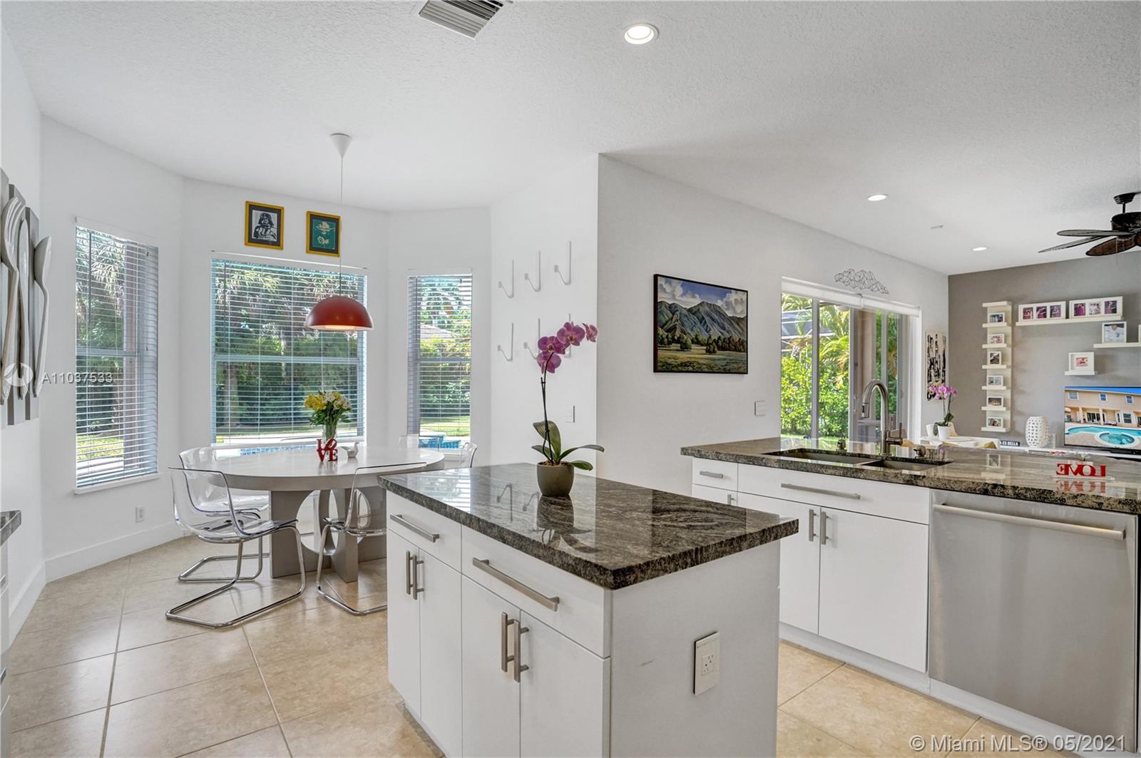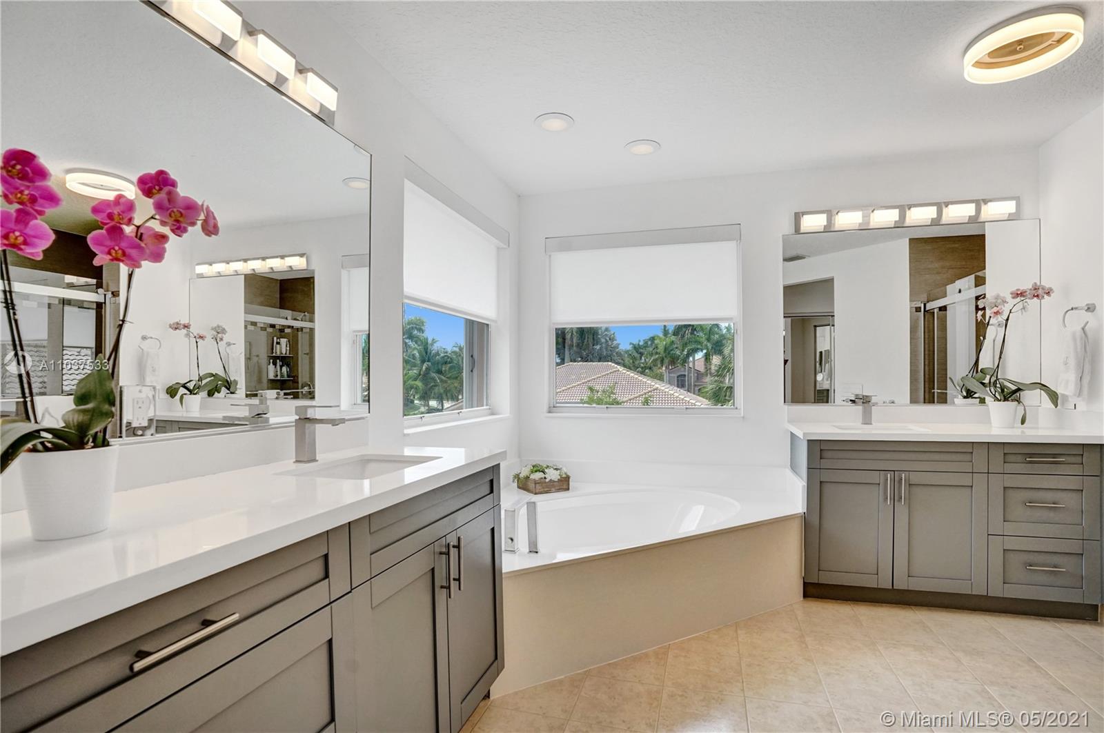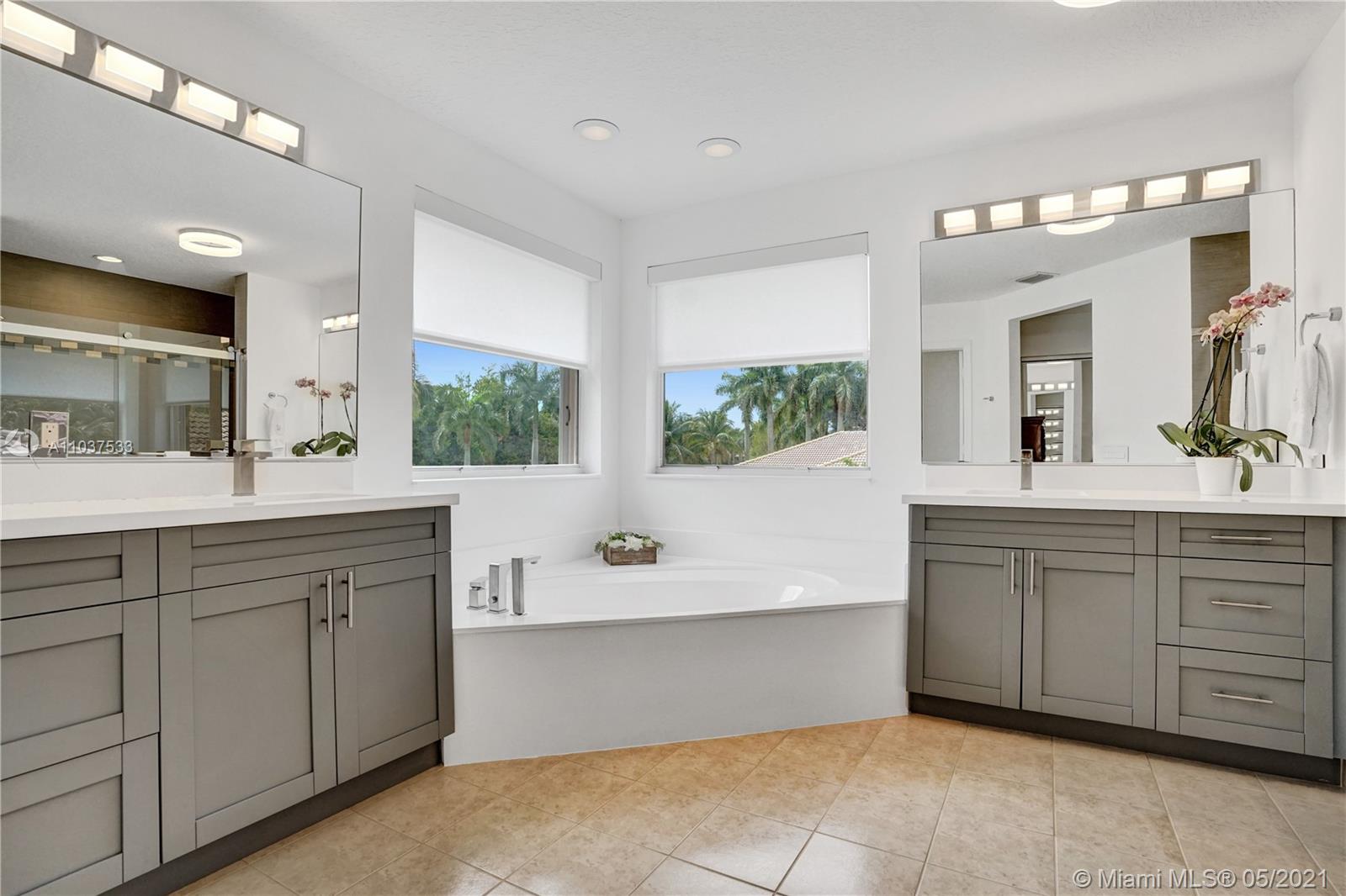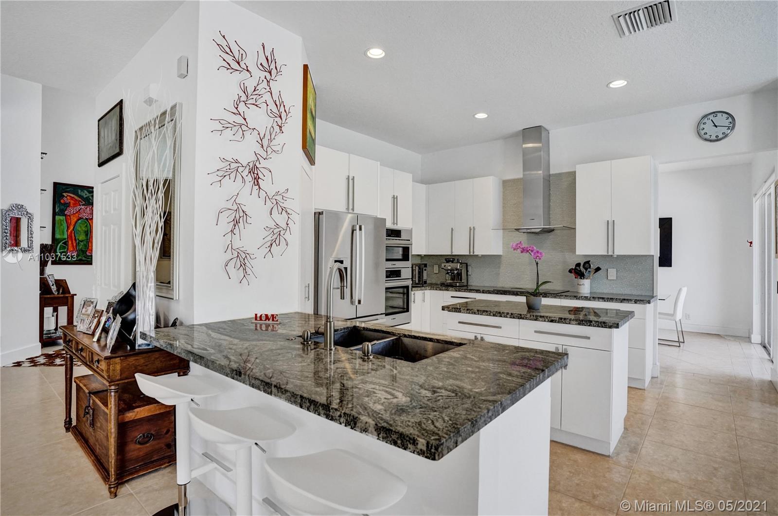 This Immaculate Two-Story modern contemporary home is perfectly set on an 11,204 SF lot. Situated in the prestigious "Victoria" at Weston Hills Country Club. Tastefully remodeled in 2016. Featuring 4BD/4BA/Den-Office/Maid-Bonus Room and 3-Car Garage. Spacious master suite located on the second floor with a walk-in closet and sitting area. Kitchen features a stacked-glass backsplash, SS appliances, granite countertop with a breakfast area that looks out to a retreat-style backyard, and an inviting pool. All bathrooms feature new tiles, glass shower doors, and new vanities. The double-height entryway, well-proportioned 3,979 SF living space and natural light makes this home unique. Other features include central Vacuum, custom window treatments, outdoor automation lighting, closet/cabinetry.