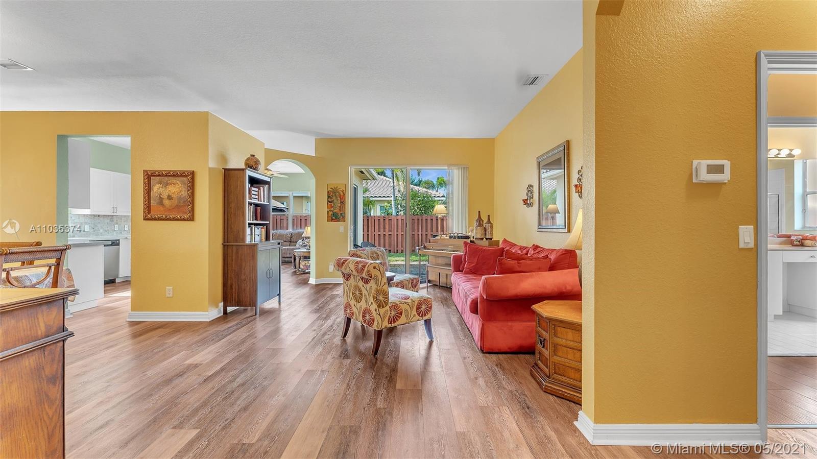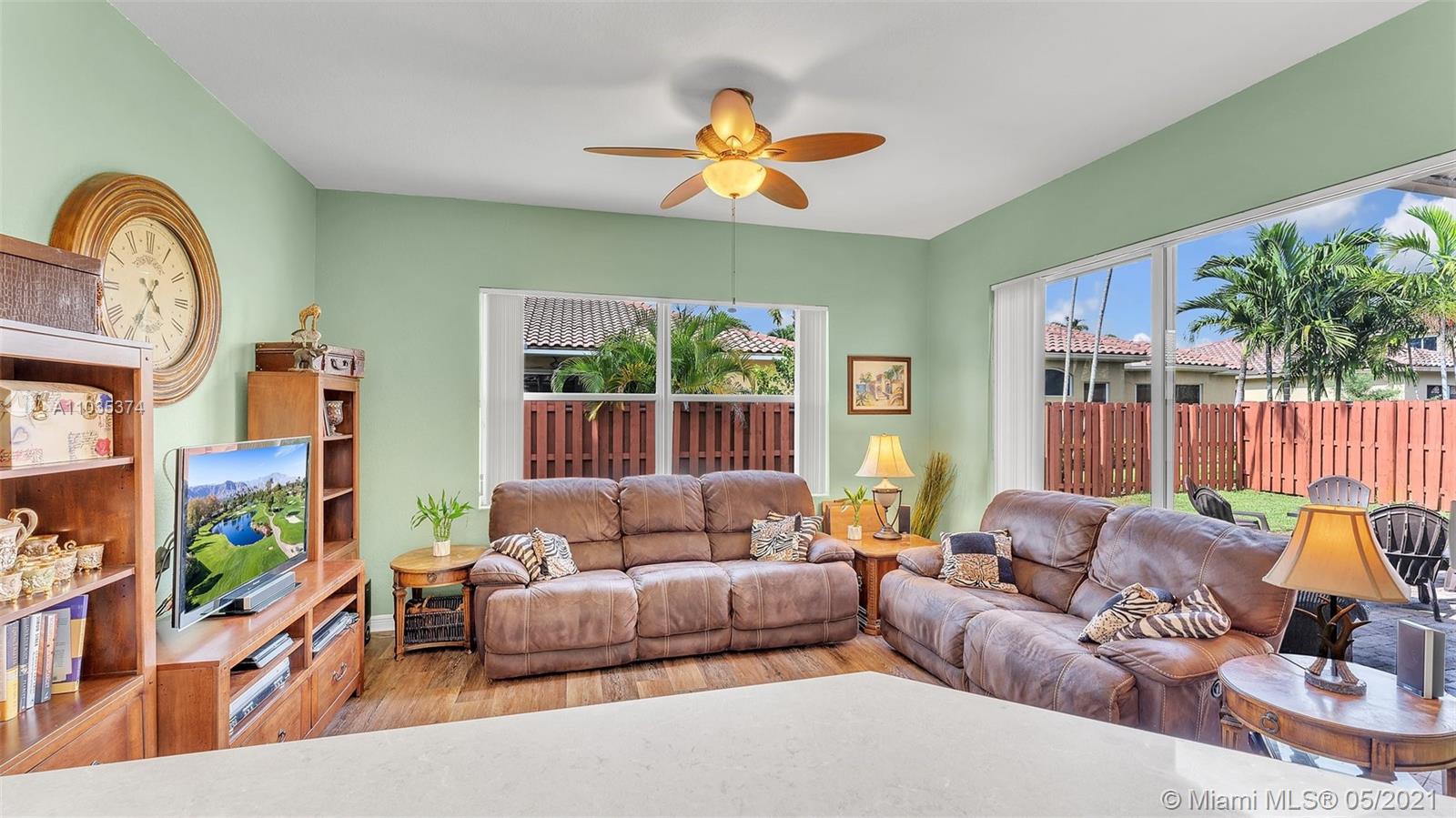 OPEN HOUSE Saturday-May 29, 11-3pm. Fabulous One story home with 3 bedrooms/ 2 baths ready to move in. Kitchen and floors have been updated with spacious family room, living room and dining area. Large backyard for Great entertainment activities! Beautiful Gated Community with Security. HOA Includes Home Alarm Security Monitoring, Common Area Landscaping, Pool, Gym & Clubhouse. **Please note, Taxes DO NOT reflect Homestead Tax Exemption.