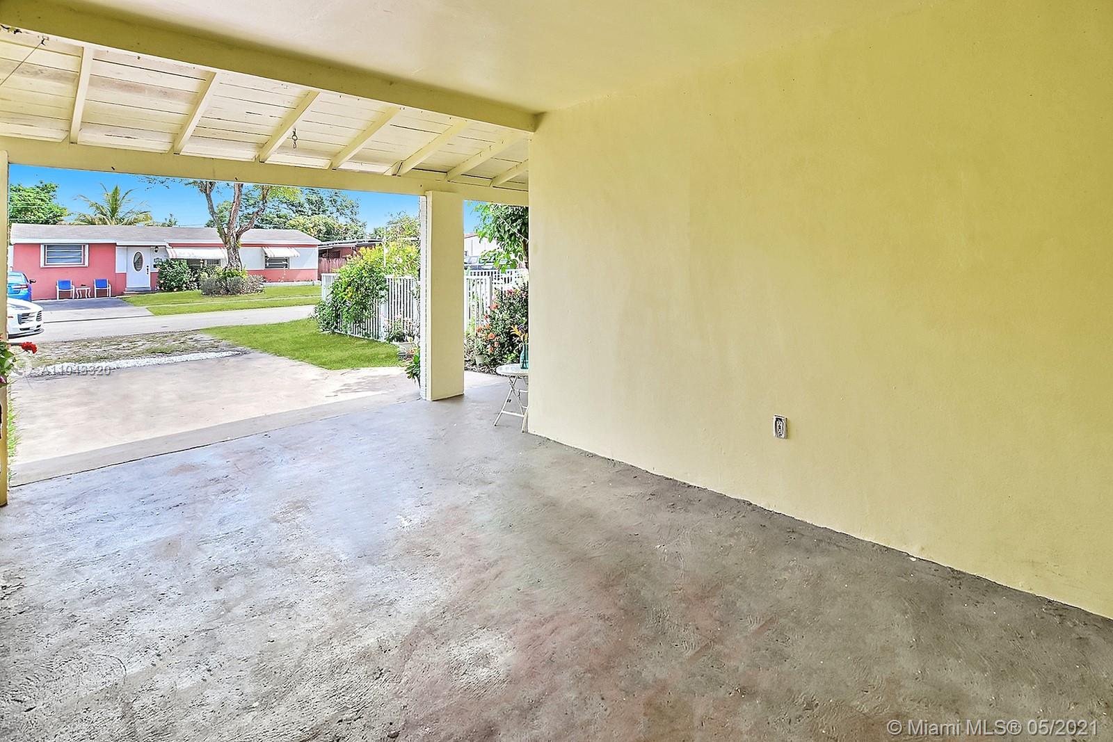 ABSOLUTELY CHARMING 3 BEDROOM 2 BATHROOM HOME EXUDES CURB APPEAL. A WELCOMING FRONT ENTRY IS LINED BY A SPECTACULAR FENCED GARDEN OF COLORFUL FLOWERS AND MATURE TREES. LIGHT AND BRIGHT INTERIOR OFFERS TILE THROUGHOUT AND NEUTRAL DECOR. KITCHEN FEATURES STYLISH WHITE CABINETS, GRANITE COUNTERS, AND STAINLESS STEEL APPLIANCES.THE LARGE FULLY FENCED YARD IS PERFECT FOR ENTERTAINING AND ALLOWS ROOM FOR A POOL. FOR CONVENIENCE THE HOME ALSO FEATURES A CARPORT FOR PARKING AND A DEDICATED LAUNDRY ROOM. THE SPACIOUS PRIMARY SUITE HAS AN ENSUITE BATH AND A PRIVATE ENTRY. FANTASTIC CENTRAL LOCATION IS MINUTES FROM THE TURNPIKE, SHOPS, RESTAURANTS AND THE HARD ROCK HOTEL.