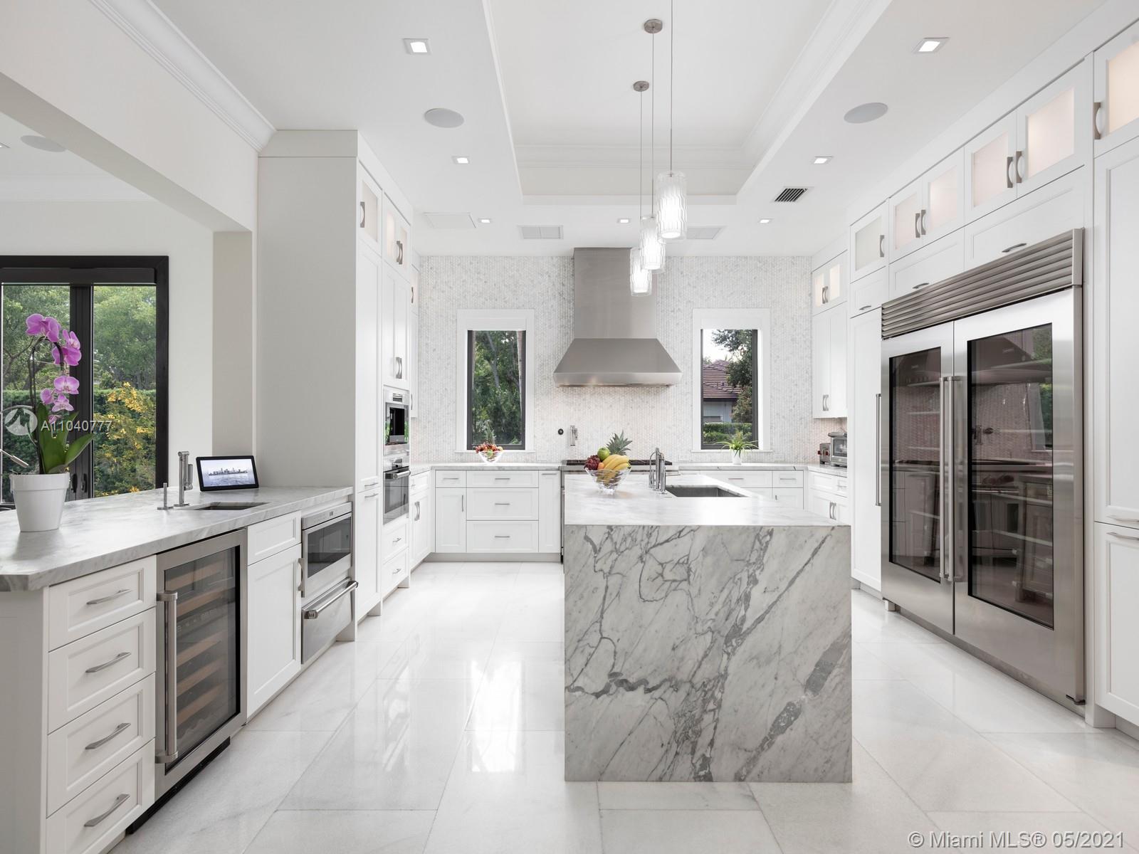 Located in the prestigious sought-after neighborhood of N. PINECREST this 6 Bed/8.5 BA “Transitional” 4-year new home on a 1.12 professionally landscaped acre boasts verdant views of the gardens w/ Majestic King Palms that grace the resort style dual swim-out heated saline pool w/ adjacent outdoor shower. Featuring a plethora of top-of-the-line features & finishes this Smart Home offers the Elan Home system which puts command of your house at your fingertips, the Jandy Pool/Spa automation system, organic mosquito repellent system, media room, playroom, gym, two offices, a guest suite w/liv. rm & private entrance, staff quarters, 500+ bottle wine cellar & butler’s pantry. A true spacious chef’s kitchen w/WOLF, Miele, stainless steel & glass Sub Zero refrigerator & 6 burner WOLF gas stove.