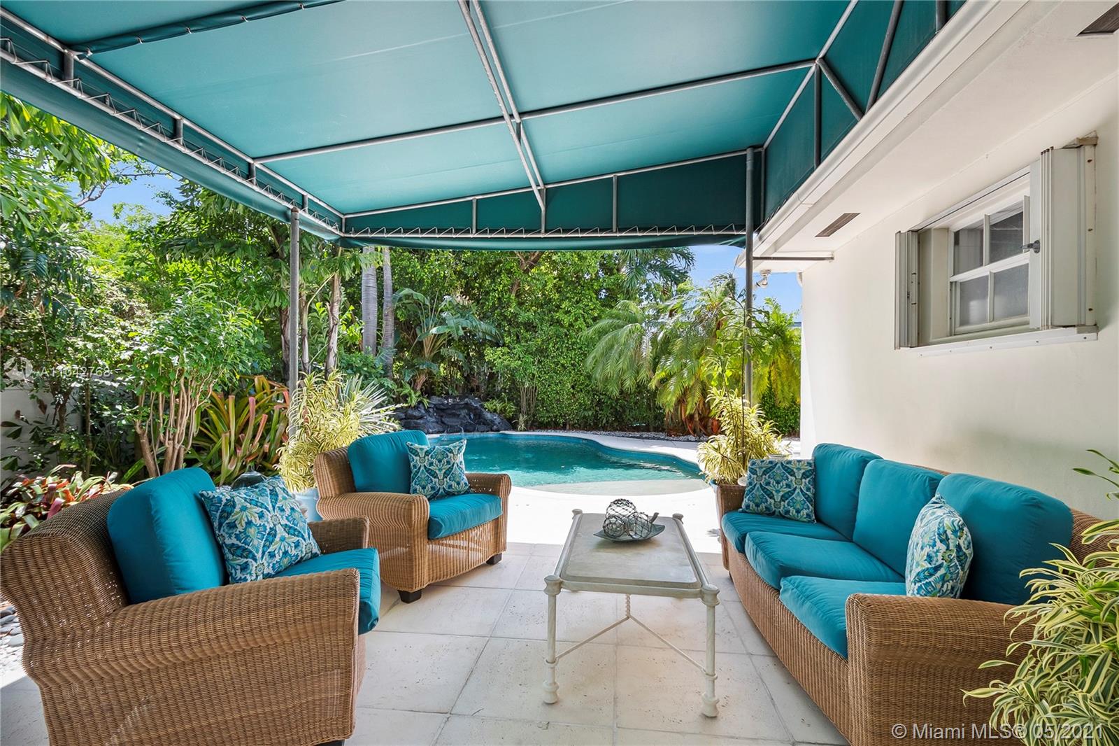 Super CORNER Lot 3 blocks from the Village Green Park....4 bedrooms/3 baths, all tile floors, New Open Kitchen leading directly to Dining and pool area. Preferred South exposure. Walled back yard with lush landscaping and very large covered entertainment area. Heated pool with Lava fountain. Accordion Hurricane Shutters/Sewer/Alarm . Most Furniture may be included. Bright & Light. Elevation 7.1 ft. A pleasure to show anytime.