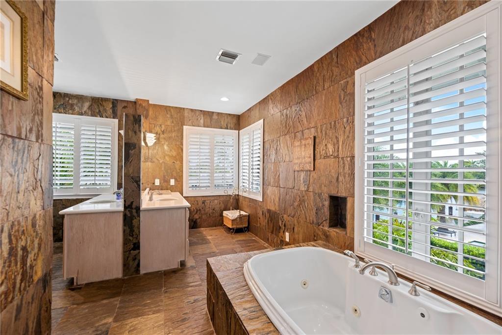 65' Seawall Accommodates 45' Boat on 145' Wide Canal. Caribbean Style Home with Recent Renovations. Approx. 11.5 Ft Ceiling Height First Level. Separate Entry Guest Suite off Staircase with Private Terrace. Quiet Neighborhood Connects 6 Blocks with Intracoastal Drive. Slate Floors in Living Areas. Charming Entry Courtyard w/Fountain & Outdoor Full Cabana Bath Master BR: Gas Fireplace, Wood Floors, Spa Tub, Two Closets, Terrace, Wood Shutters. Iron & Stone Staircase. Office/Gym/5th BR has No Bath but nearby access to Powder Rm. Great Rm: Stack stone Fireplace, Walls of Glass w/Transom Windows. Matterport Tour: https://my.matterport.com/show/?m=fe3MvwJE4uS