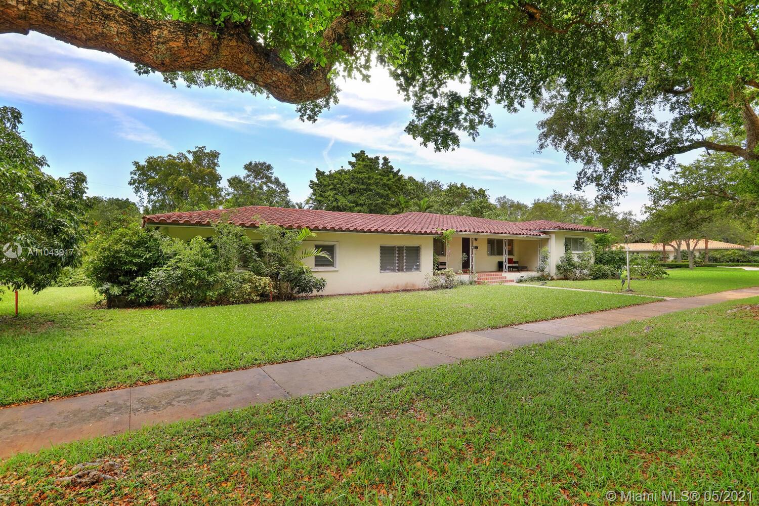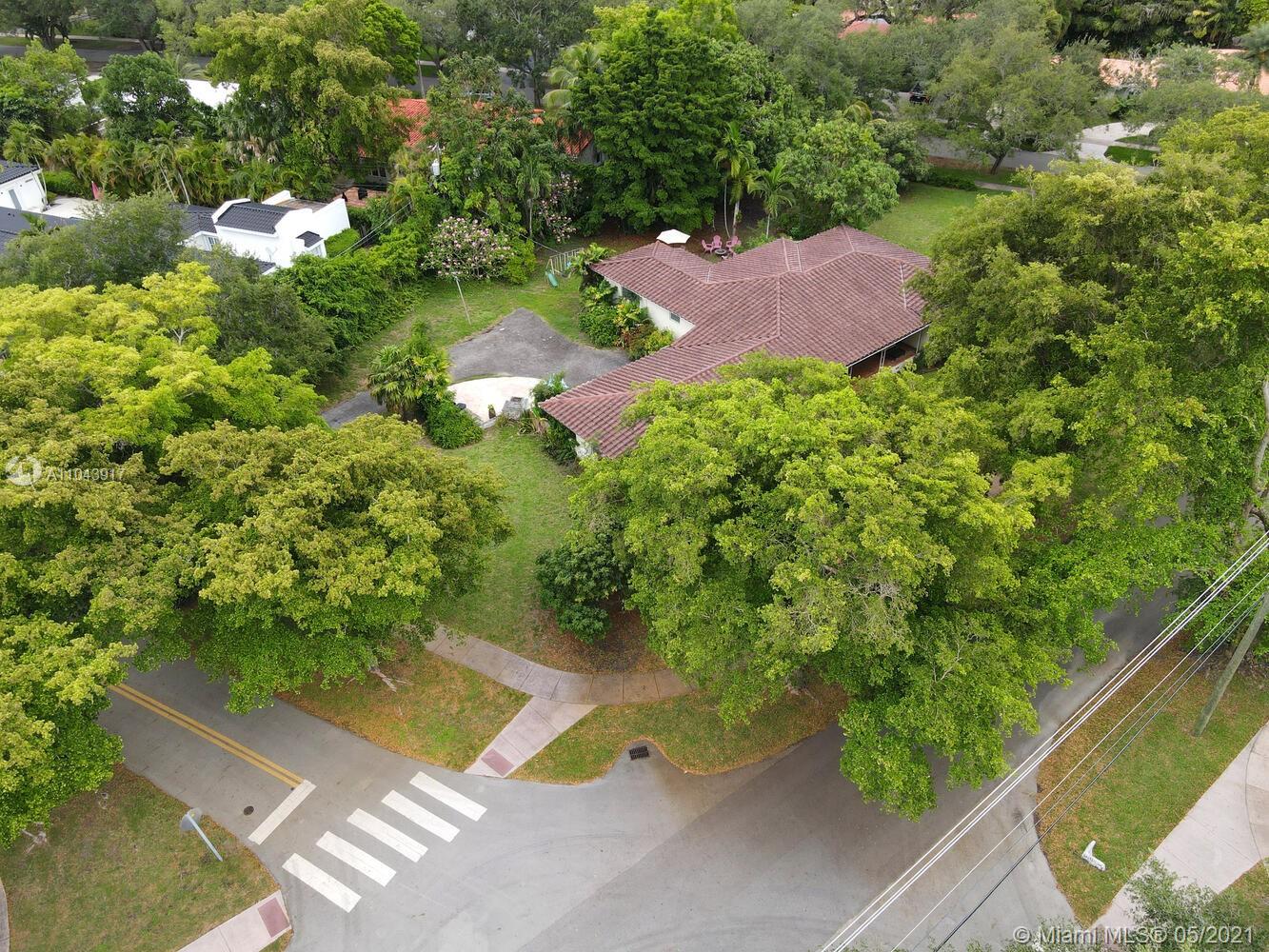 Rare opportunity to build a new construction home on an idyllic 25,000 SF lot in a quiet, tree-canopied South Gables neighborhood. The existing home has 3 BR / 2 BA + a separate 1 BR / 1 BA in-law’s quarters with private entrance. (Potential to rent the home during the permitting process). Mature oaks, black olive, palms, lychee, avocado, sapodilla, carambola, mango, frangipani and other trees surround the perimeter of this lush, park-like property. Complete set of architectural plans by world renowned architect, Jorge L. Hernandez are available. Close to Miami’s most prestigious schools and to shopping & dining in downtown Coral Gables, South Miami and Coconut Grove.