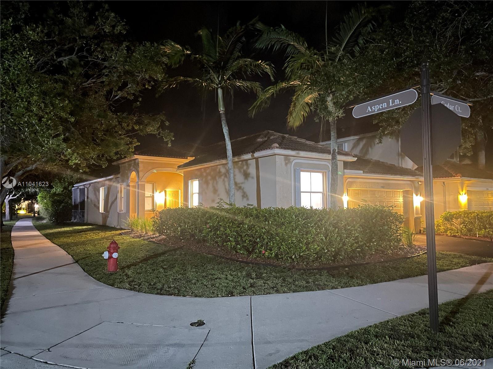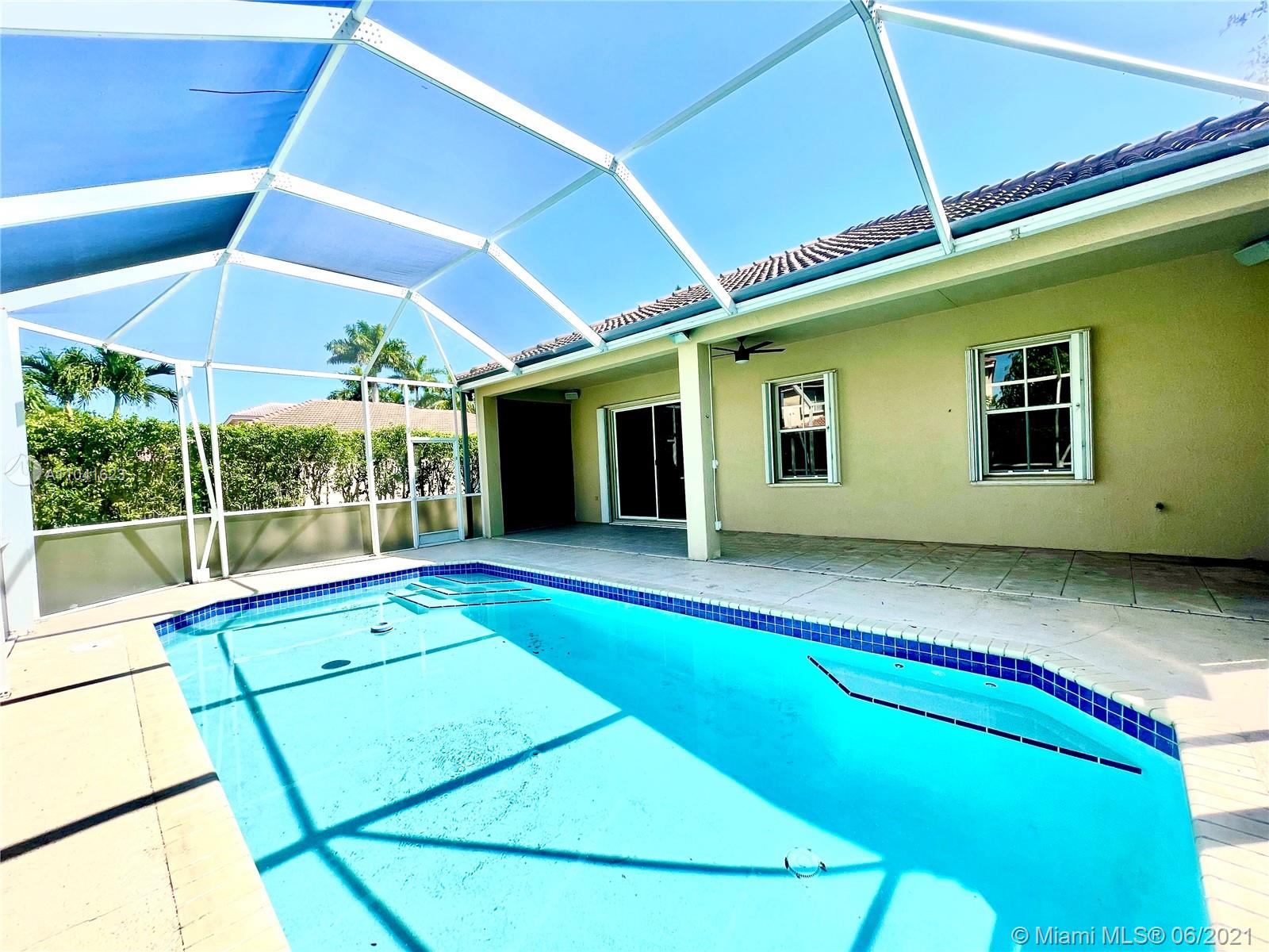 SAVANNA Beautiful 4 beds 2 1/2 baths ONE STORY Home with SCREENED SALINE POOL in the amazing community of Savanna in Weston. CORNER UNIT. 2-Car Garage. Master Bath with jacuzzi. Fans in each room. NEW vinyl floor, remodeled bathrooms, and kitchen with NEW SS APPLIANCES. NEW LED lights. NEW WASHER and DRYER. Accordion shutters. A + Rated Schools. Amenities: pool, playground, open field for soccer or baseball, water slides, mini golf and more.