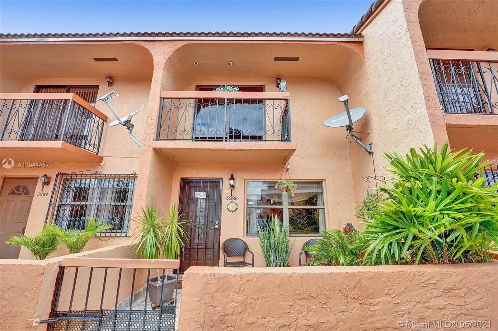 Welcome to this gorgeous townhouse with lots of upgrades. Updated kitchen with granite counter-top and wood cabinets, All SS appliances throughout, Samsung stainless steel washer and dryer, front porch with iron fenced door and sitting area. Enclosed patio features an outdoor cooking section and entertainment area. Trane A/C unit, tankless water tank 2nd floor features two large bedrooms, master with walk-in closet, a balcony overlooking the patio area. Two Assigned parking space, gated community and so much more! A Must See..