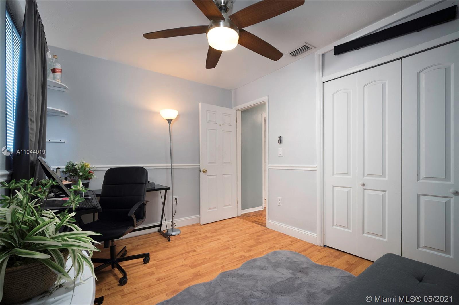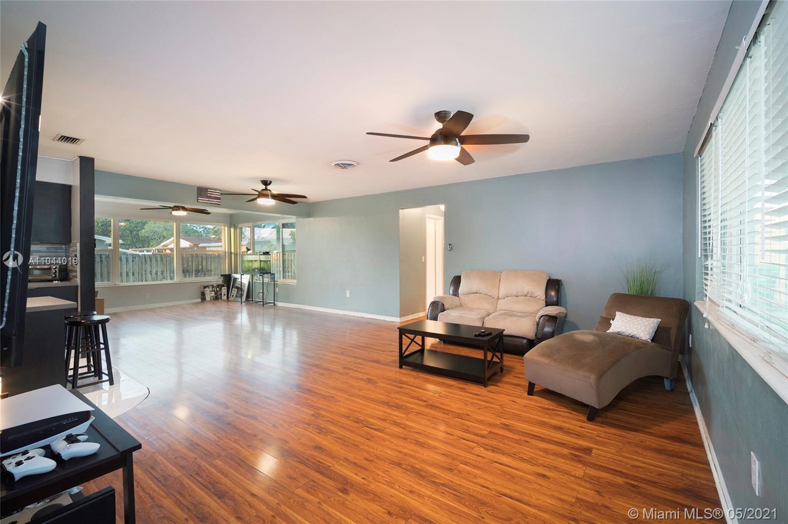 This move-in ready home is the perfect starter home, with an open floor plan and lots of natural light! Home features 2 bedrooms and 1 bathroom, an updated kitchen, laminate flooring throughout, impact windows and door, and more. Step outside to your large yard with plenty of room for a pool. No HOA! Centrally located near highways, shopping centers and restaurants. Don't miss out on this beautiful home!