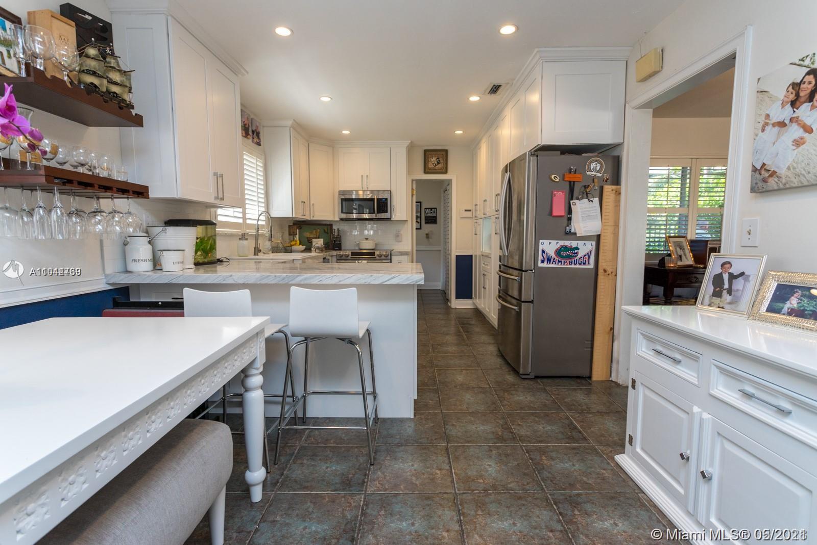 Lovely home on a quiet tree-lined North Gables street. Close to world-class shopping & dining on Miracle Mile and minutes to downtown, MIA, Coconut Grove, Key Biscayne & the Beaches. Light-filled living spaces include formal living, dining & family room and 4 BR’s/2BA’s + office. New custom kitchen features classic white wood cabinetry, quartz countertops, stainless appliances & dining bar. French doors from the dining & family room overlook the private terrace, pool & tropical garden. Walk to the Granada Golf Course and neighborhood parks.
