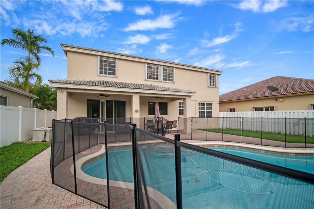 This Beautiful Mediterranean Style Home Features a Spacious Backyard with a Large Lagoon Shaped Pool, Tropical Landscaping, Fully Fenced Yard, Covered Lanai, Pavers and Grass Area Perfect for Your Family & Pets! Light & Bright Remodeled Kitchen Includes Granite Countertops and Backsplash, Stainless Steel Appliances, Lots of Cabinetry Space. Master Bedroom Has Two Huge Walk-in Closet & An Attached Den Used as an Office. First Floor 5th Bedroom Is Perfect for In-Laws & Guests. The Meadows is a beautiful 24 hour gated community in Weston, FL. It is located off Glades Parkway, directly across from Gator Run Elementary School. The Community is Easily Accessible to Grocery Stores, Banks, Hair Salons, Weston's All A-Rated Schools and all Other Entertainment Near I-75 and Interstate 595.