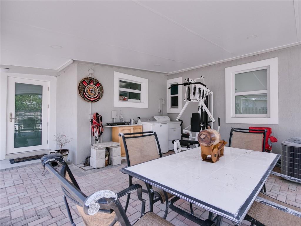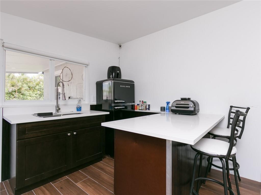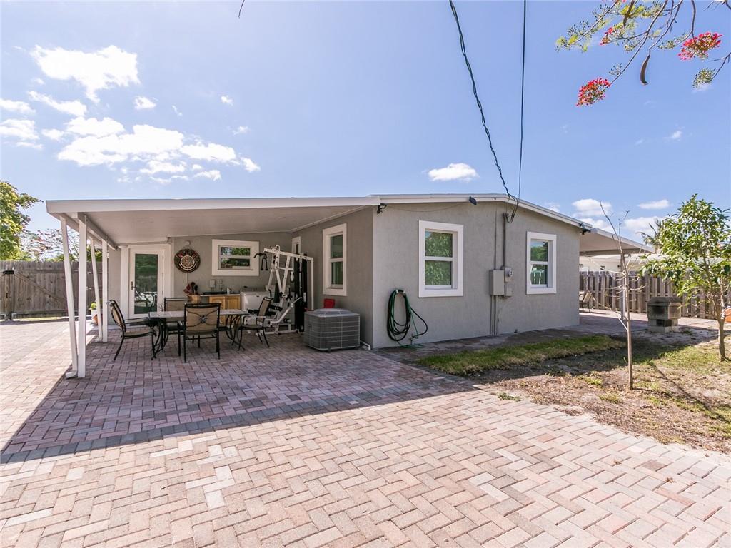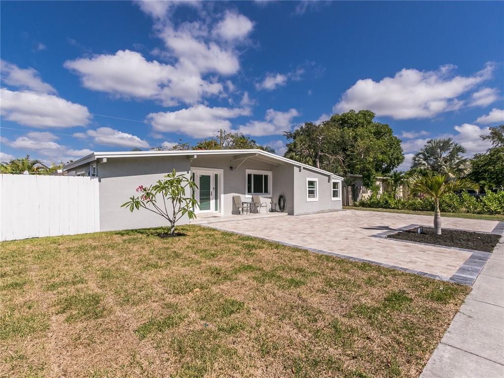 Nice Home Not a Drive By. Can be income producer with the current 1-1 studio Apartment currently rented low at ($700). or easily converted back to 3rd bedrooms with bath. The main house boasts 2 bedrooms and a bath with Newer floors, bathrooms, kitchen all tastefully done. Then there is the outside kitchen den totally enclosed with AC, or open the impact sliding doors and windows and make it an outside dining area with the covered back porch. Very Private fenced back yard. .All Impact windows and doors. front drive with guest parking. Paved area behind fence for a Boat if desired and still has room for a pool. Walk to the Park. Close to Shopping, Transportation, Beach. Conventional Finance Buyers, Please Ask your lender for a DU ( Desktop Underwriter) Approval for strongest consideration.