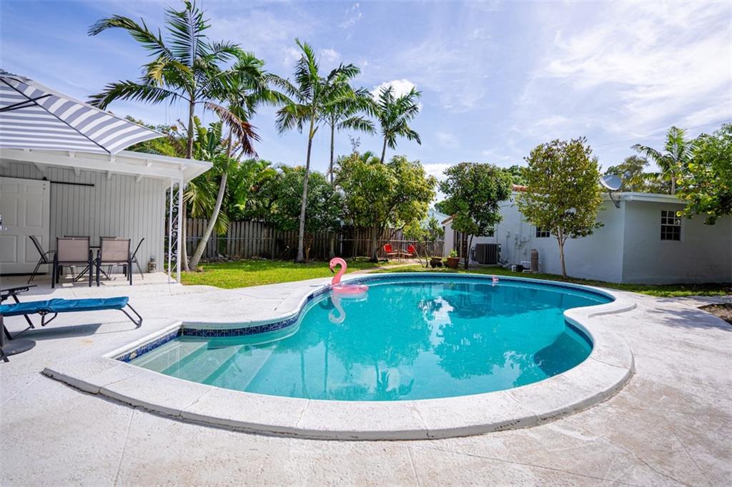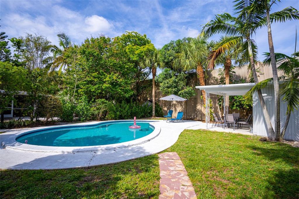 Charming 3/1 POOL home on a quiet cul-de-sac, in the highly desirable neighborhood of Shady Banks. This home features updated kitchen w/ butcher's block counters, 3 spacious bedrooms, brand new renovated bathroom & large Florida room, making an additional living area. Home is fully hurricane protected. Huge, fully fenced backyard w/ lush foliage, several trees, beautiful S-shaped pool, & detached cabana room w/ plumbing for addt'l bathroom. Shady Banks is a historical, hidden gem of a neighborhood, that has only one way in & one way out; consisting of approx. 500 homes, 2 parks, butterfly garden & a Nature Park on the New River. Shady Banks has an all-volunteer Civic Association that organizes variety of community events, although no association fees to live here. Barrel Tile Roof is 2004